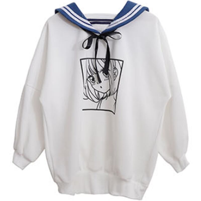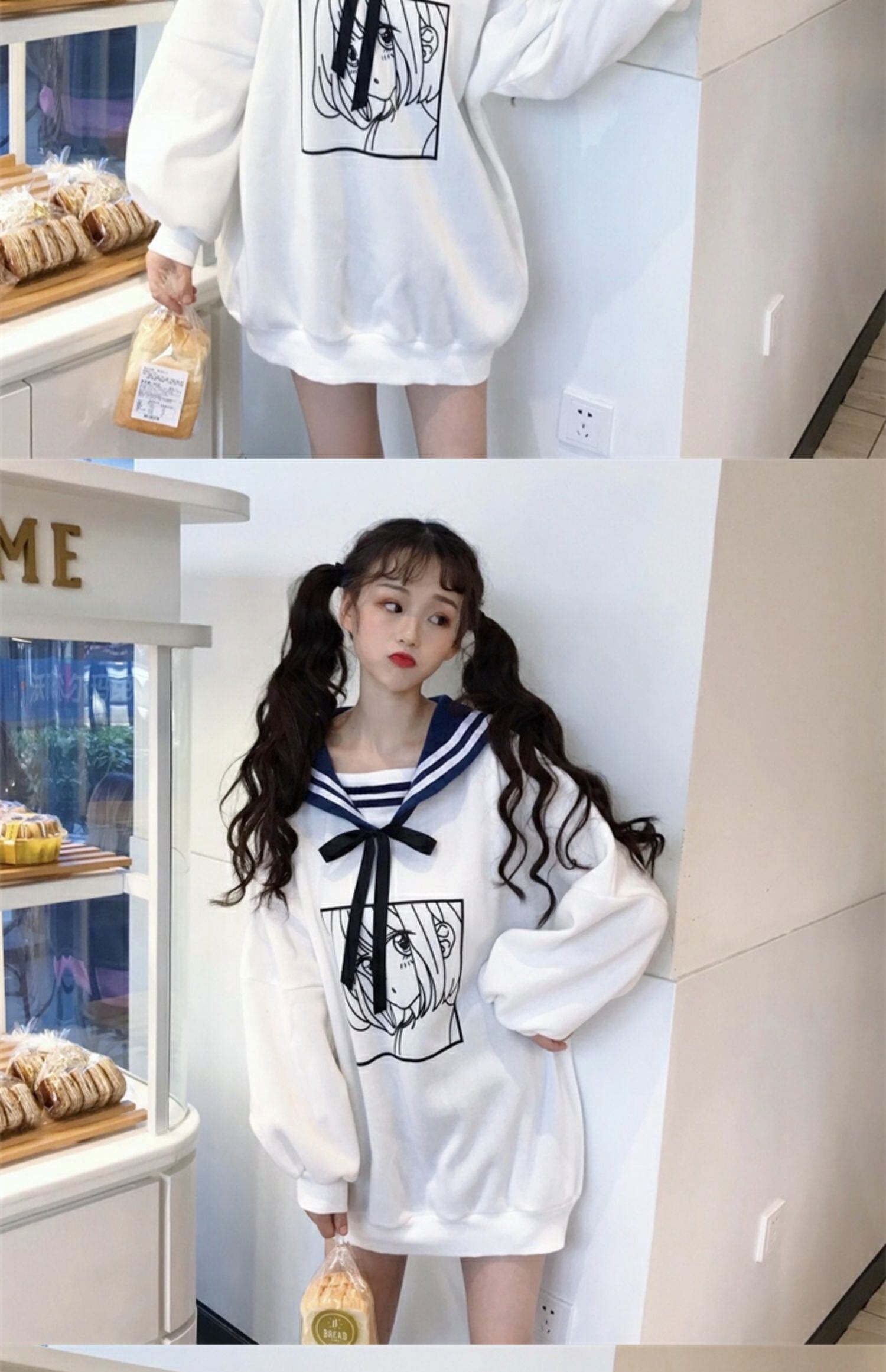 オータムルーズスタイルハートネイビーカラートップス ロング長袖スリーブウィンタージャケット 秋物 冬物 萌量不足77836694257