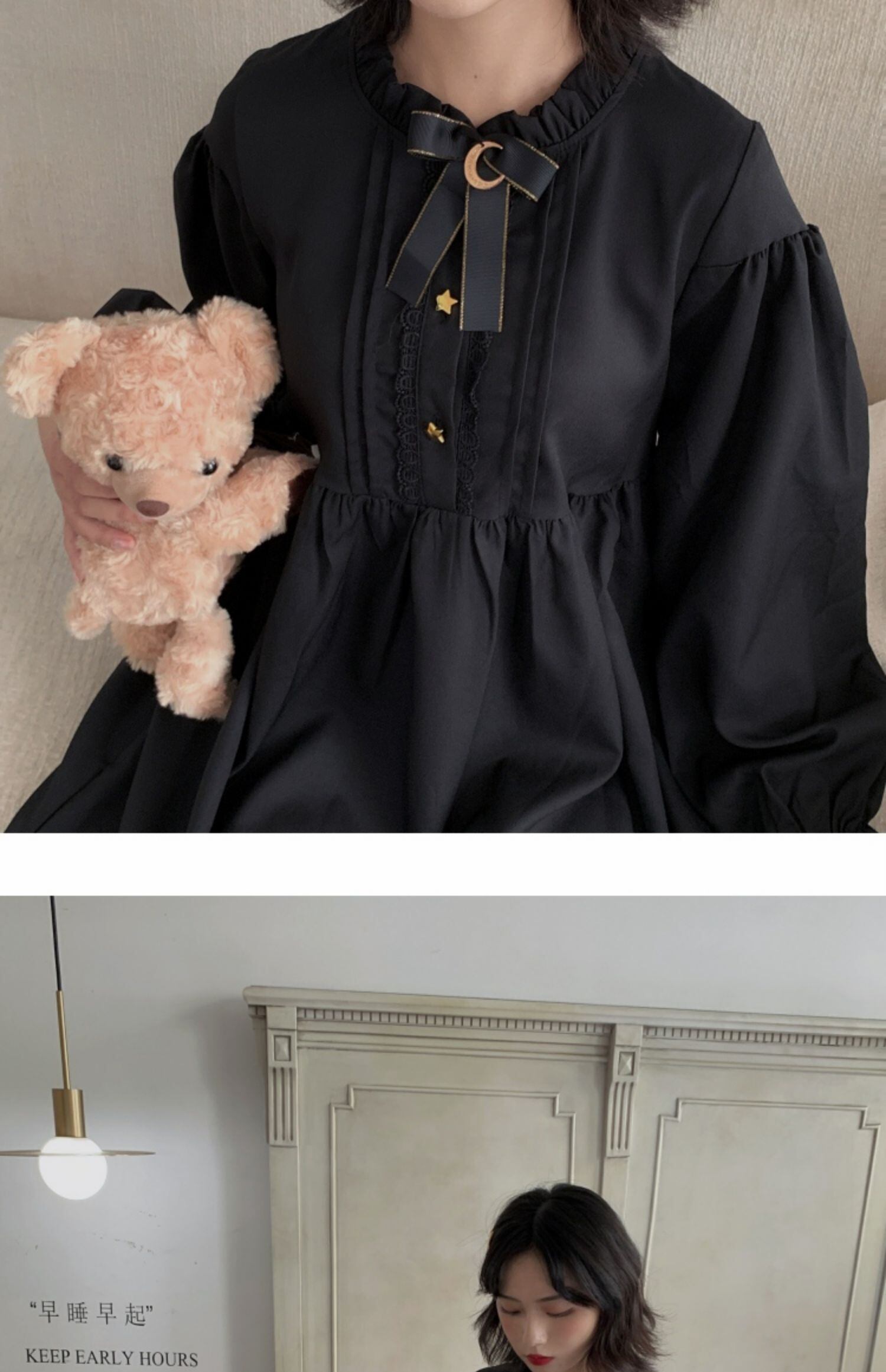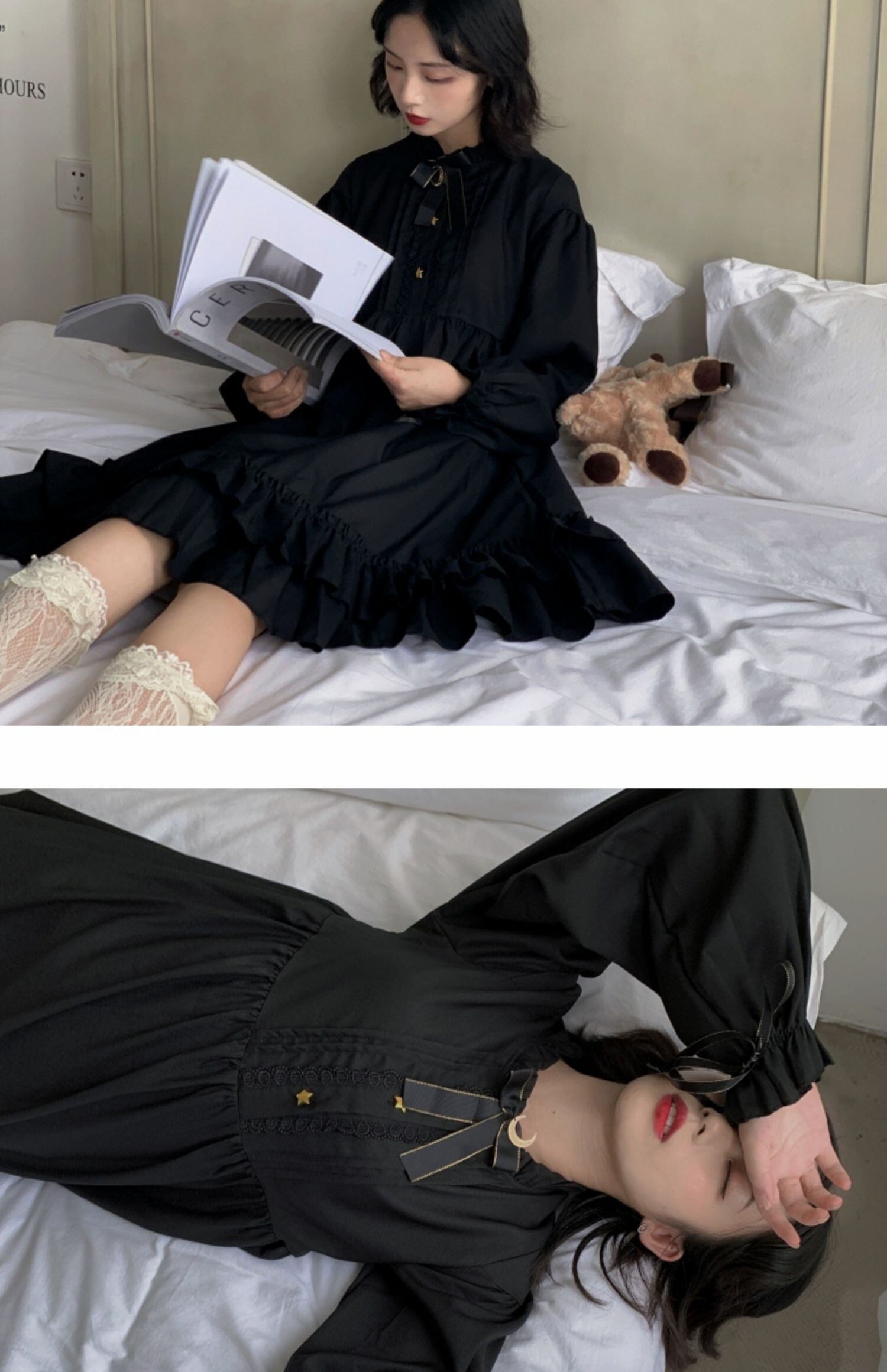 ドレス秋2020新しいeseレトロダークブラックフリルスモールスカート夏婦人服涼しい春と秋 萌量不足11379584514