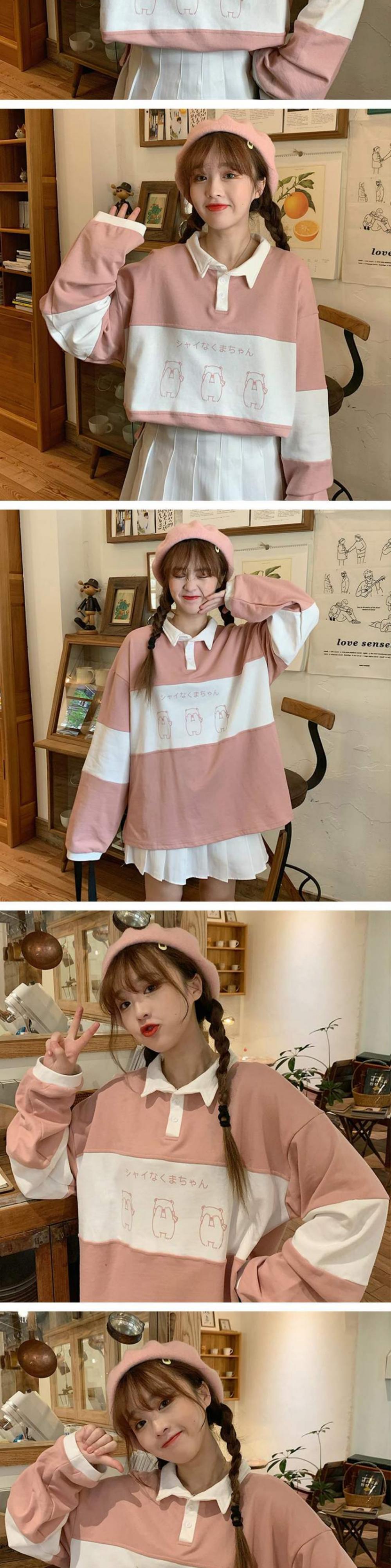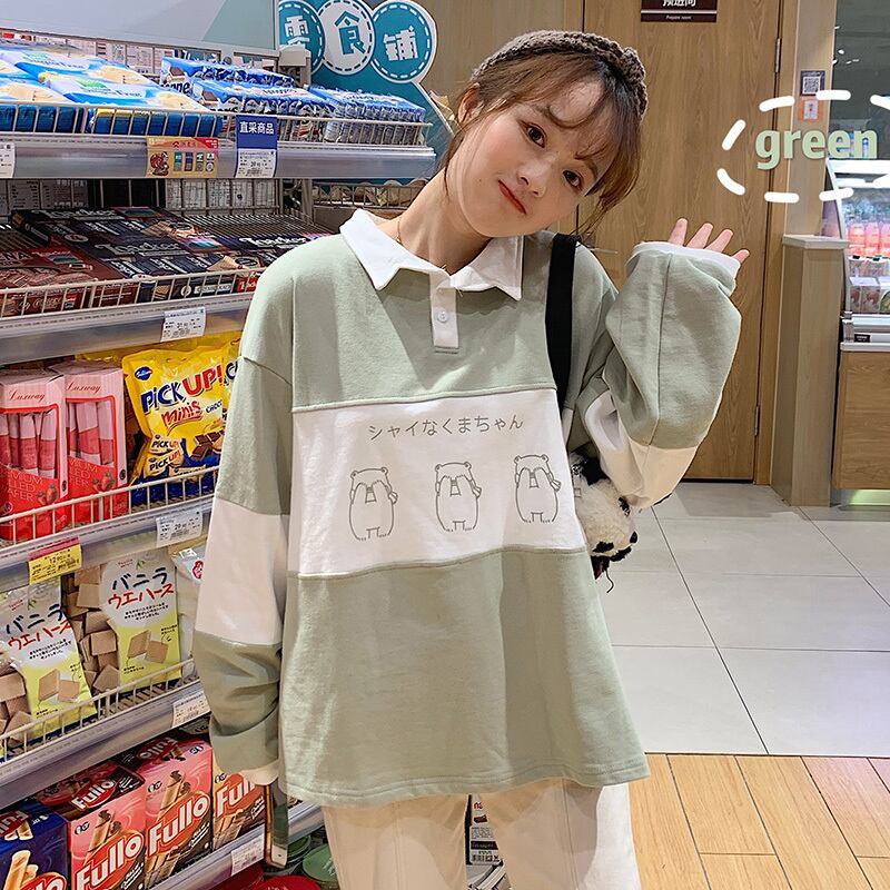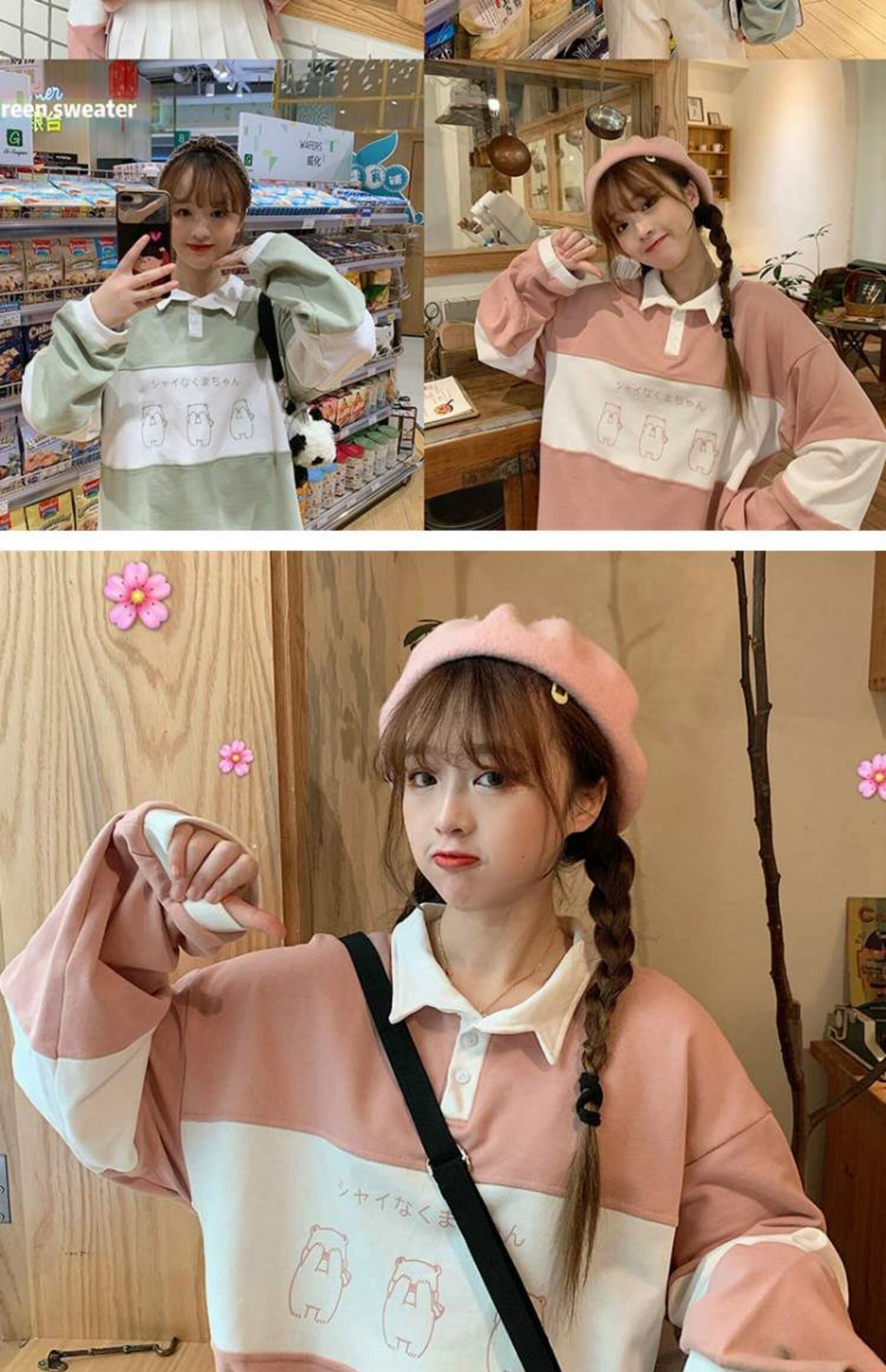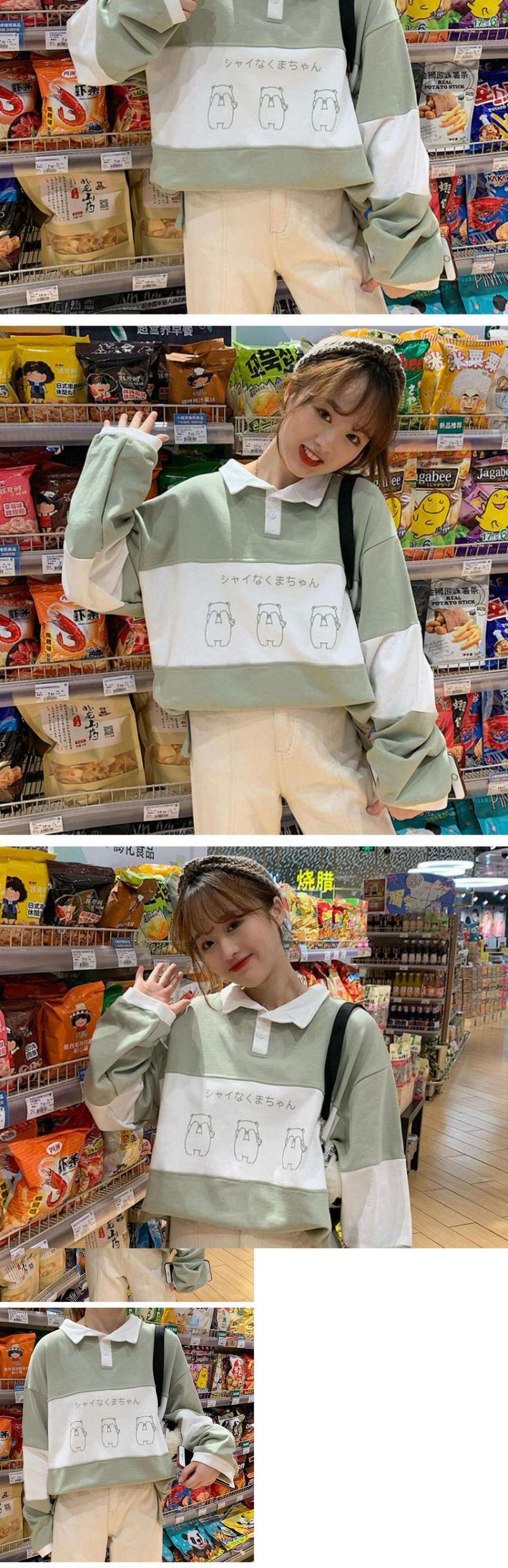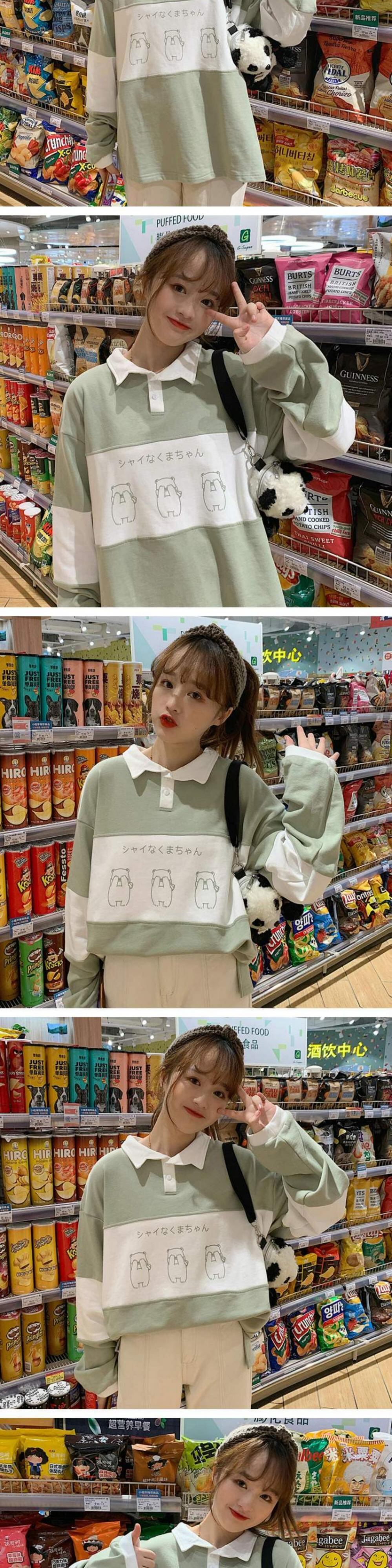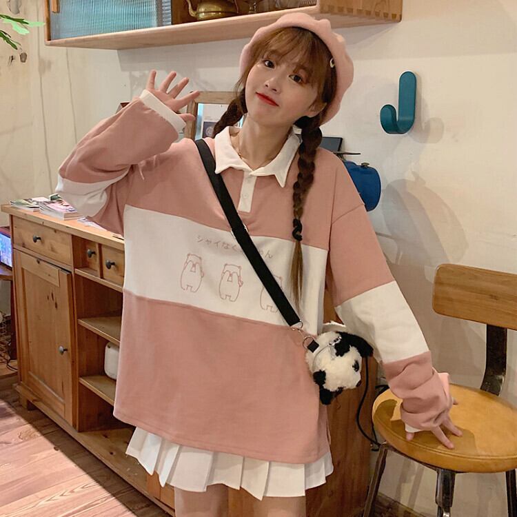 スタイルの小さな新鮮な女性のカラーマッチングセーター女性春と秋の薄いポロカラールーズプルオーバー長袖トップ 萌量不足24123614361