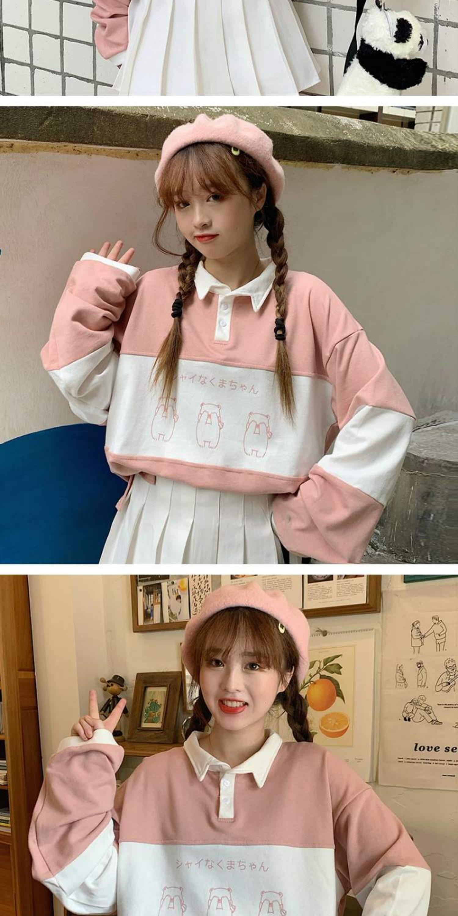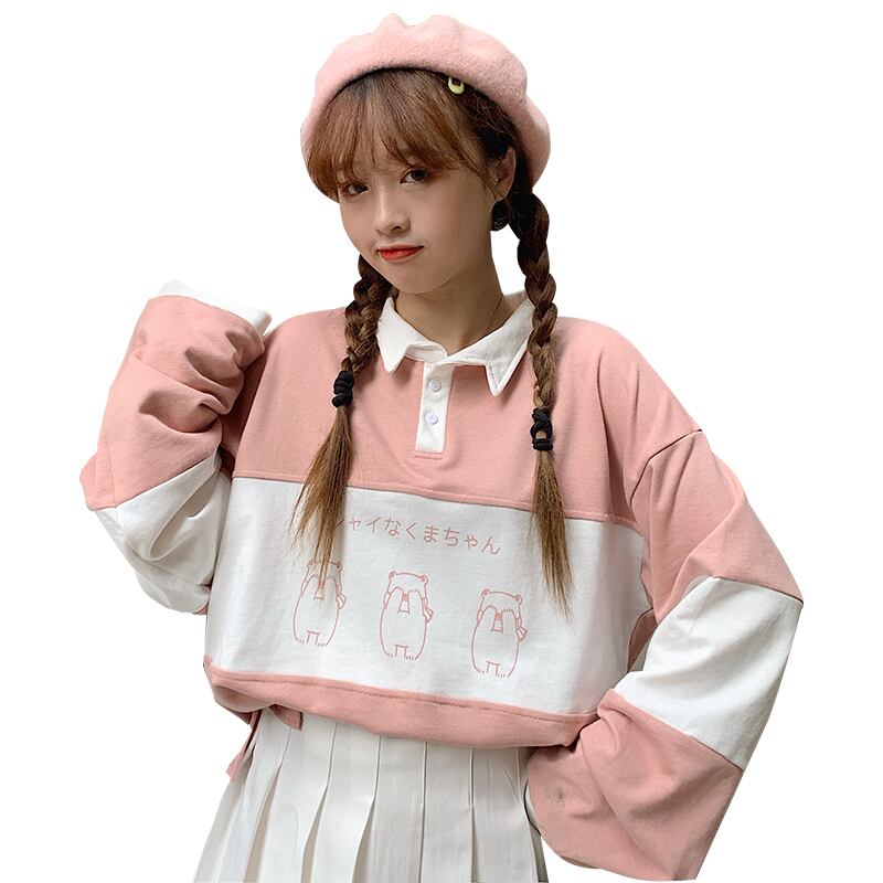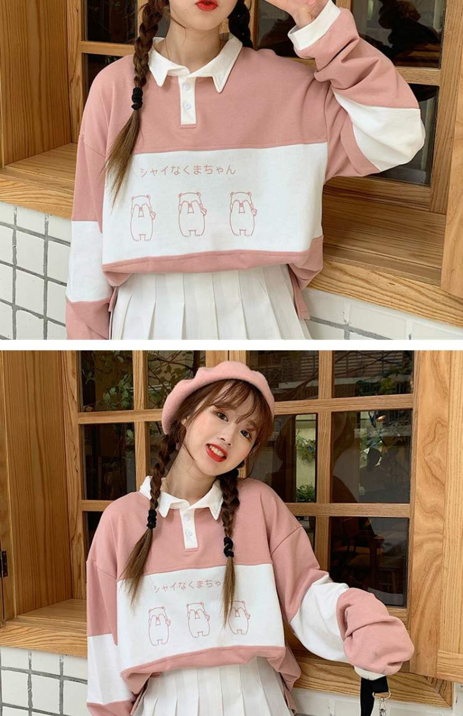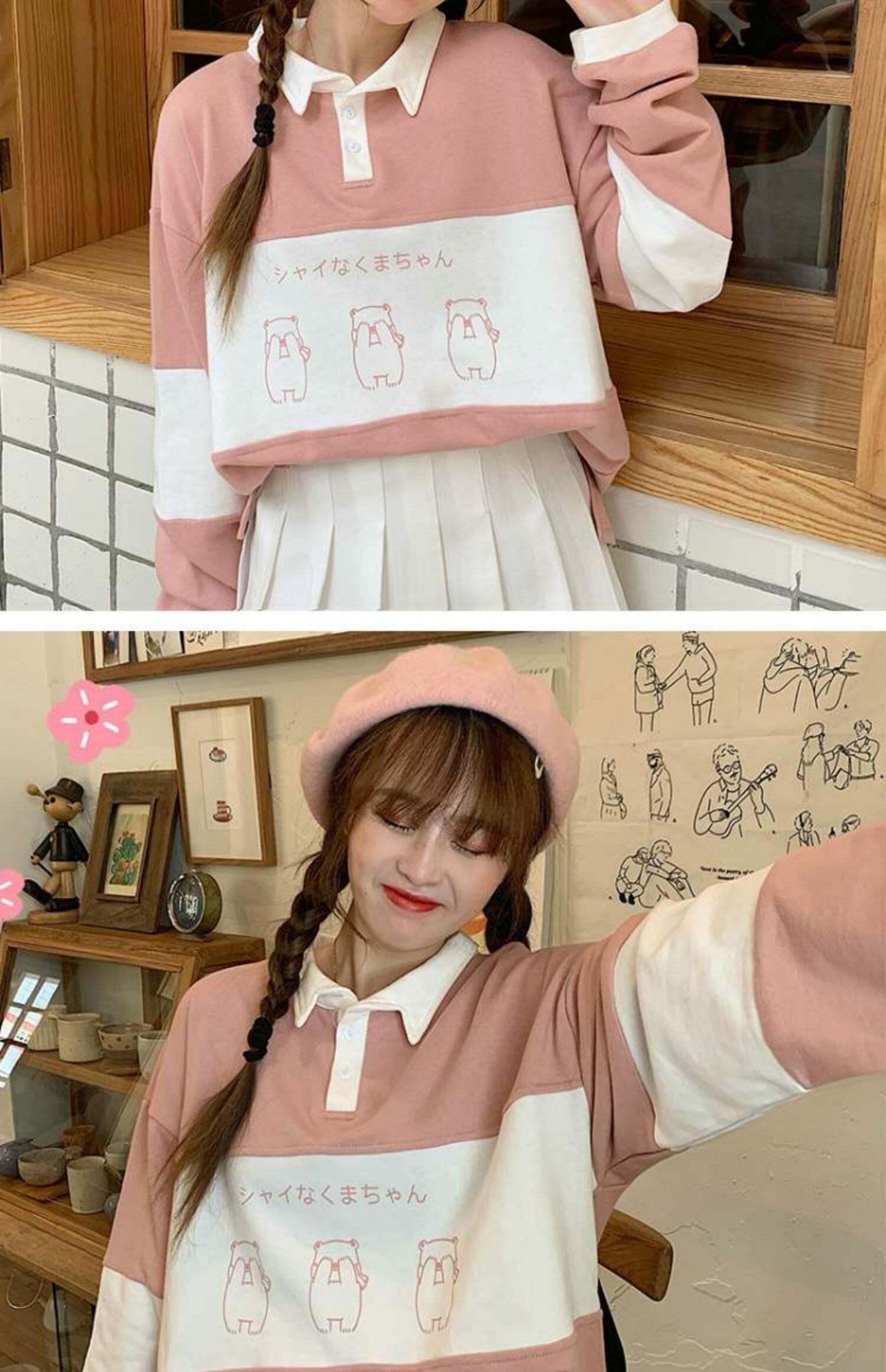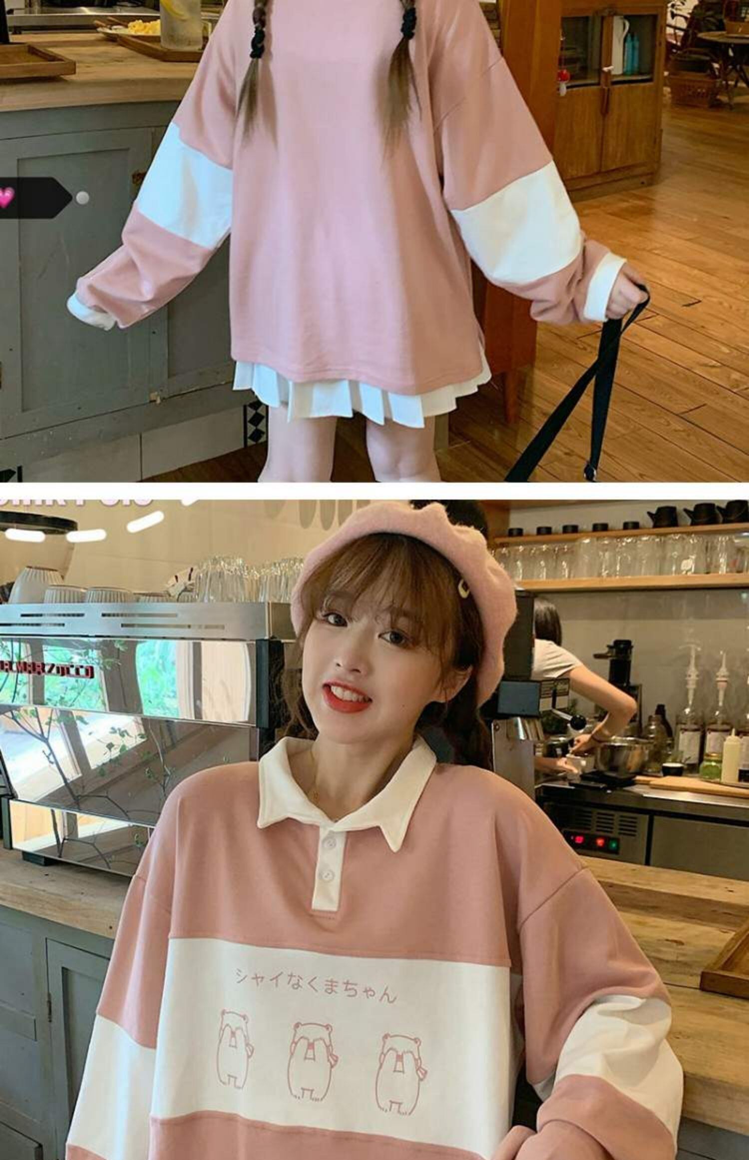 スタイルの小さな新鮮な女性のカラーマッチングセーター女性春と秋の薄いポロカラールーズプルオーバー長袖トップ 萌量不足24123614361