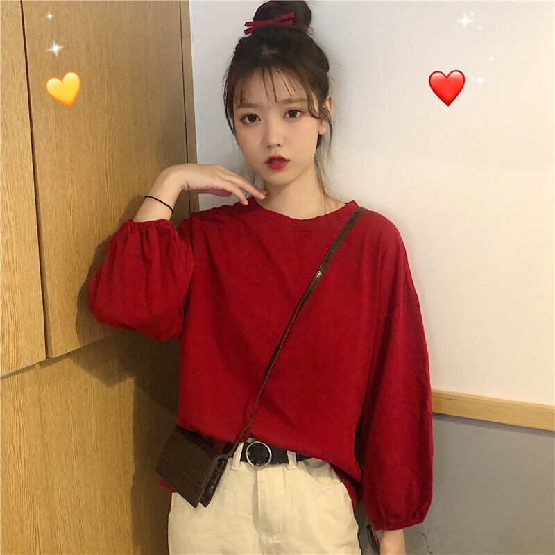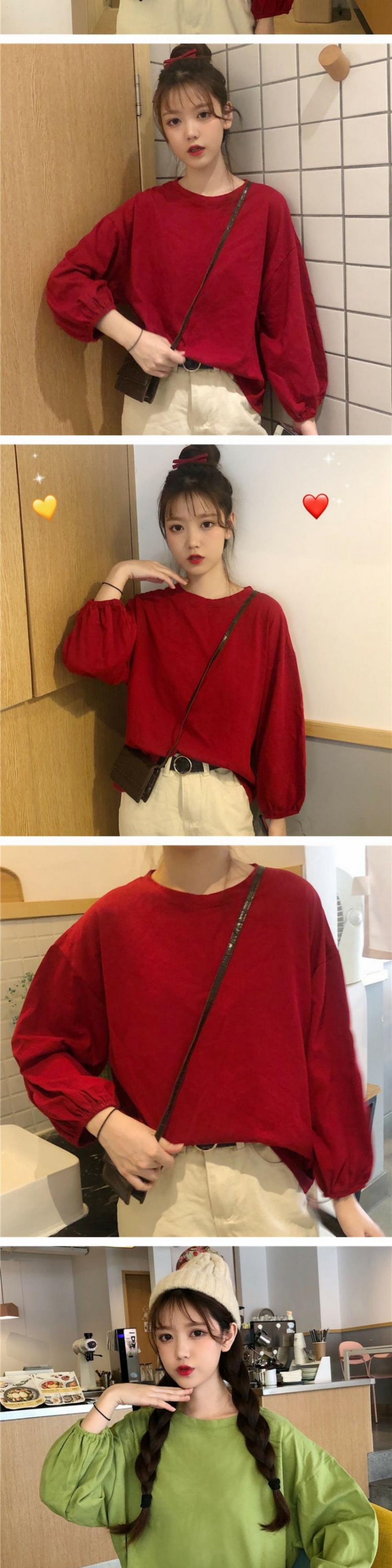 スタイルワイルドルーズヘッジラウンドネックランタンスリーブ長袖ブラウス2020年春秋新作Tシャツトレンド 萌量不足92582828975
