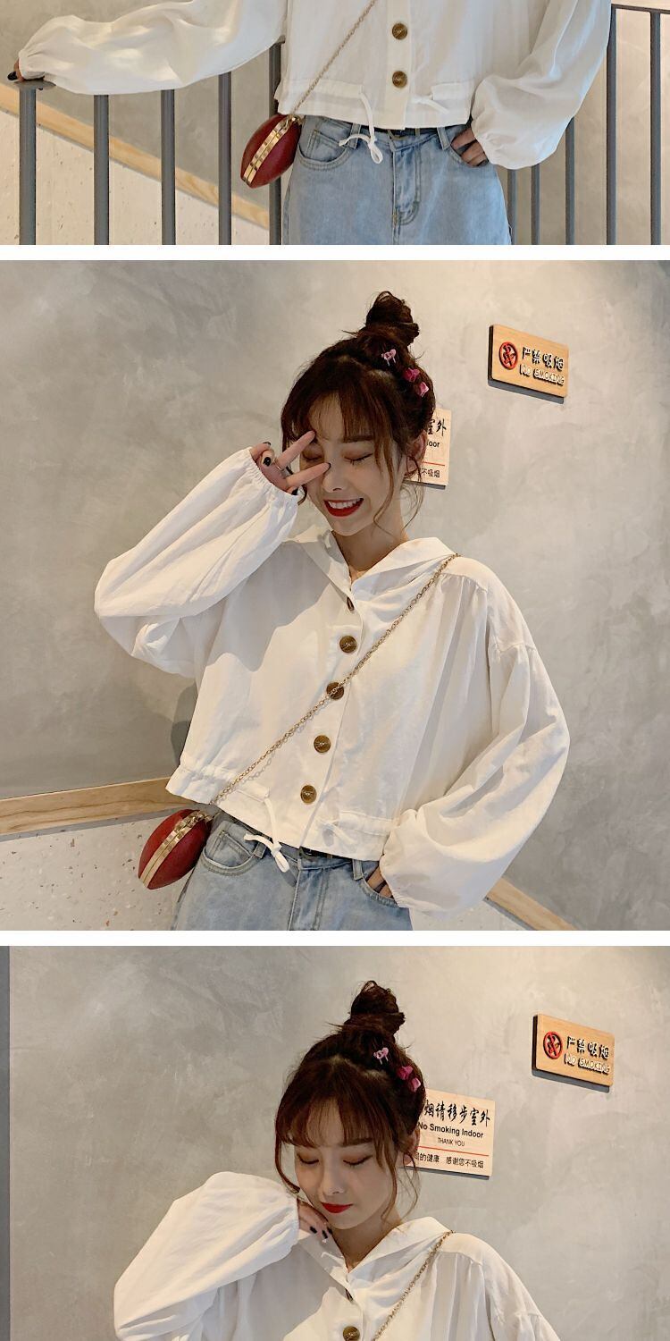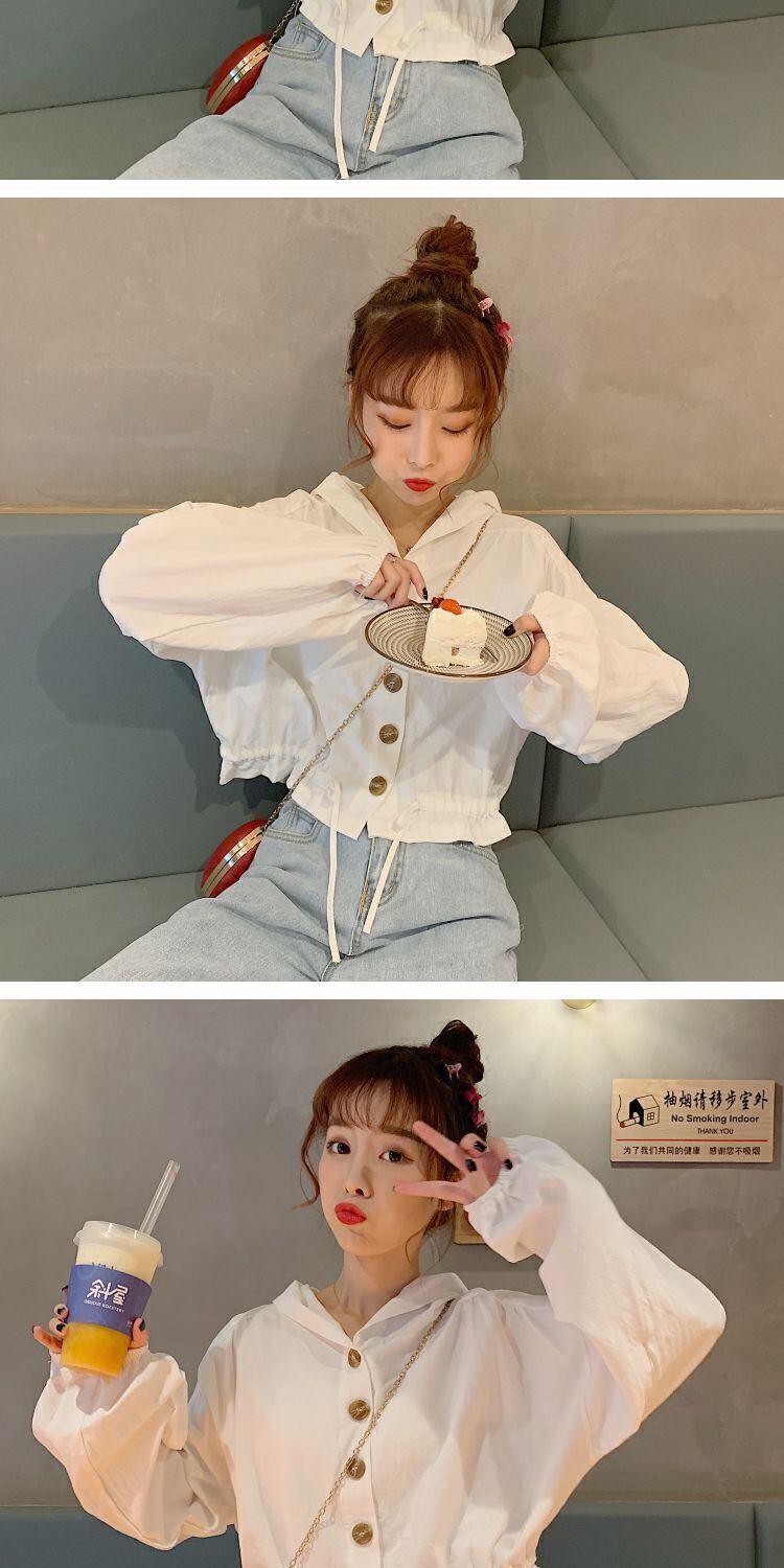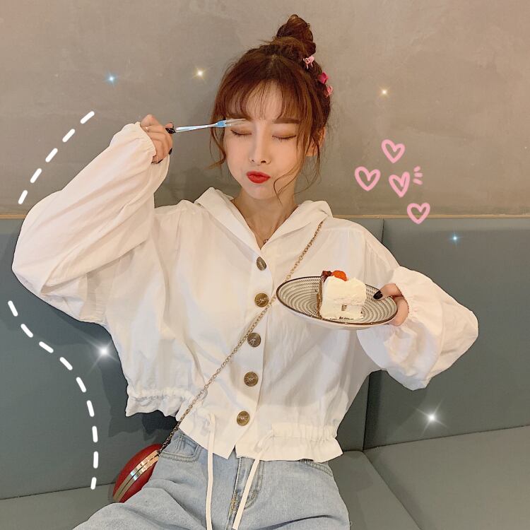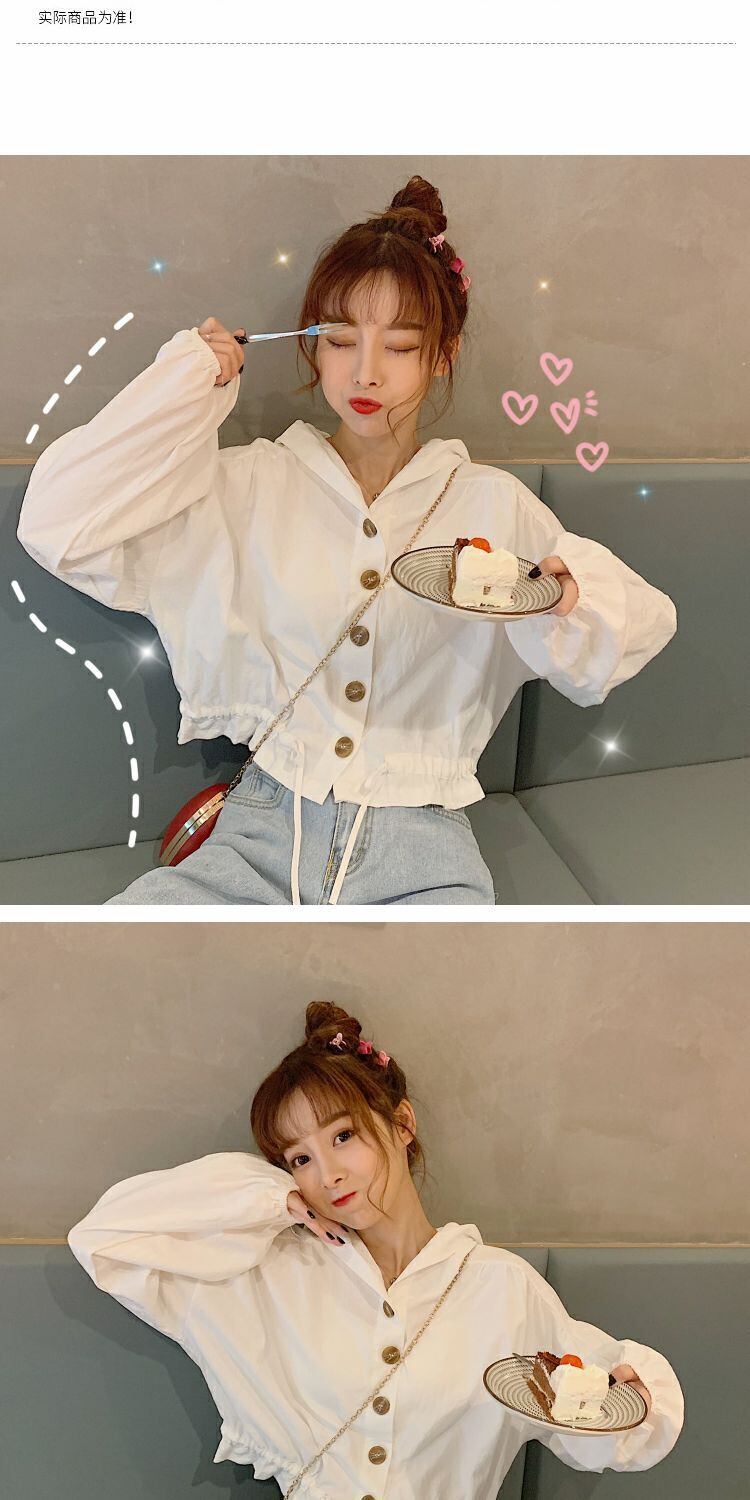 2020年初秋新秋バージョンルーズショートシックジャケットブラウスオールマッチフード付き小潮 萌量不足18869530728