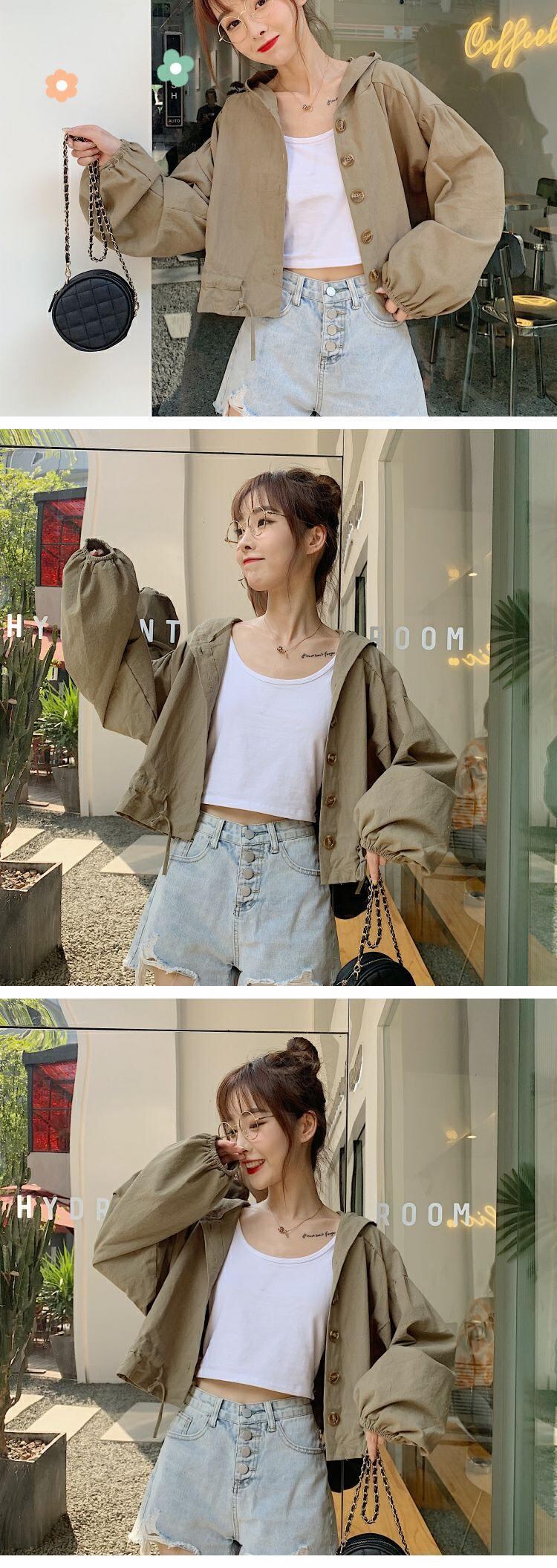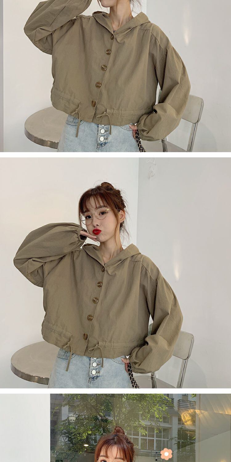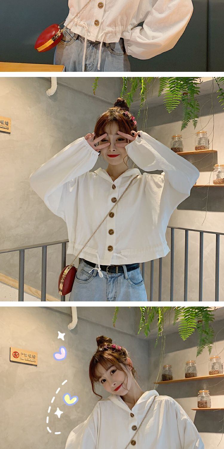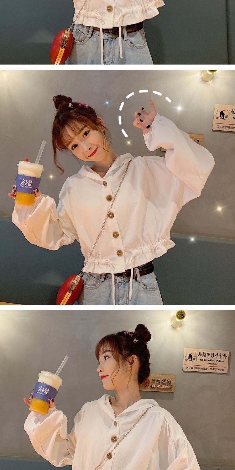 2020年初秋新秋バージョンルーズショートシックジャケットブラウスオールマッチフード付き小潮 萌量不足18869530728