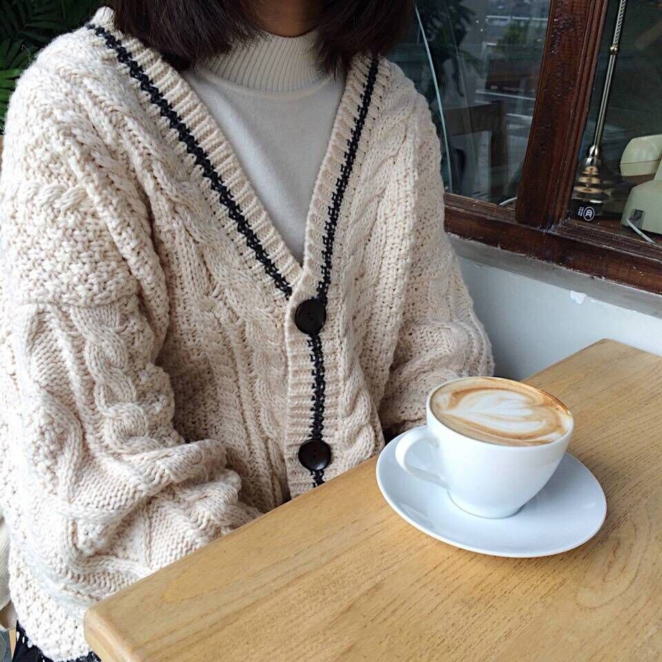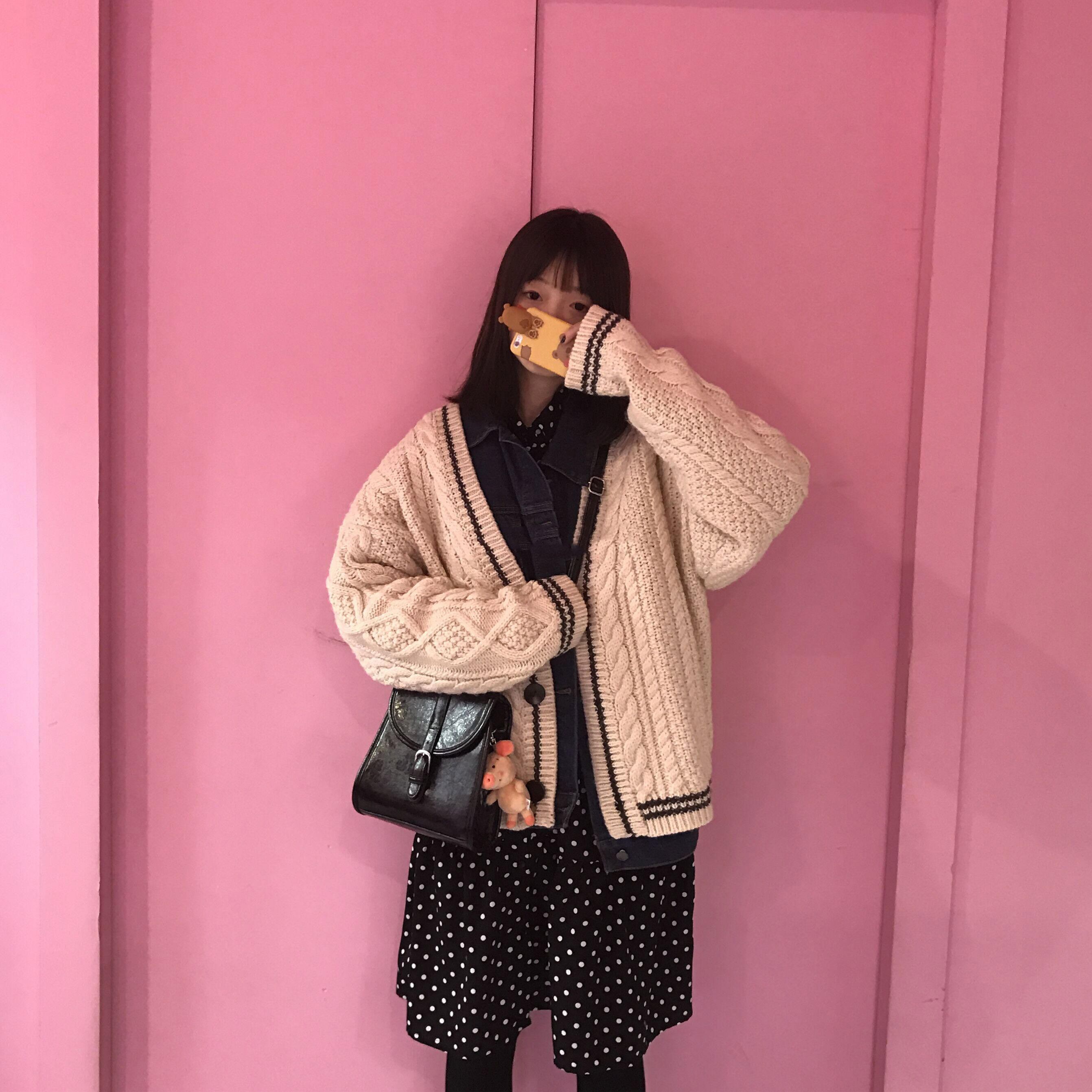 ネットレッドルーズセーター女子大学スタイルニットカーディガンウールオールマッチスチューデントジャケットタイドを着て外で秋冬の怠惰な風 萌量不足23661360296