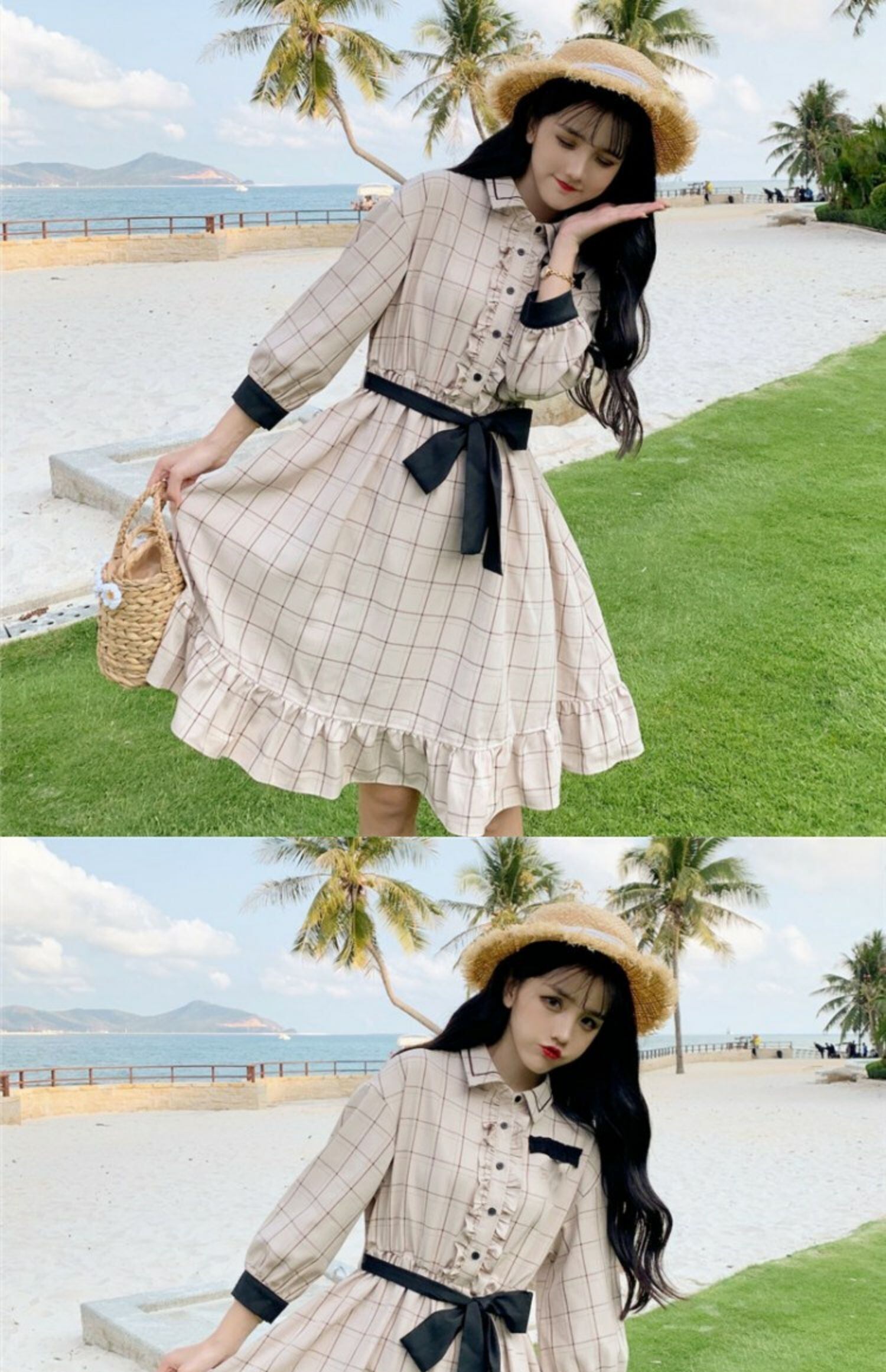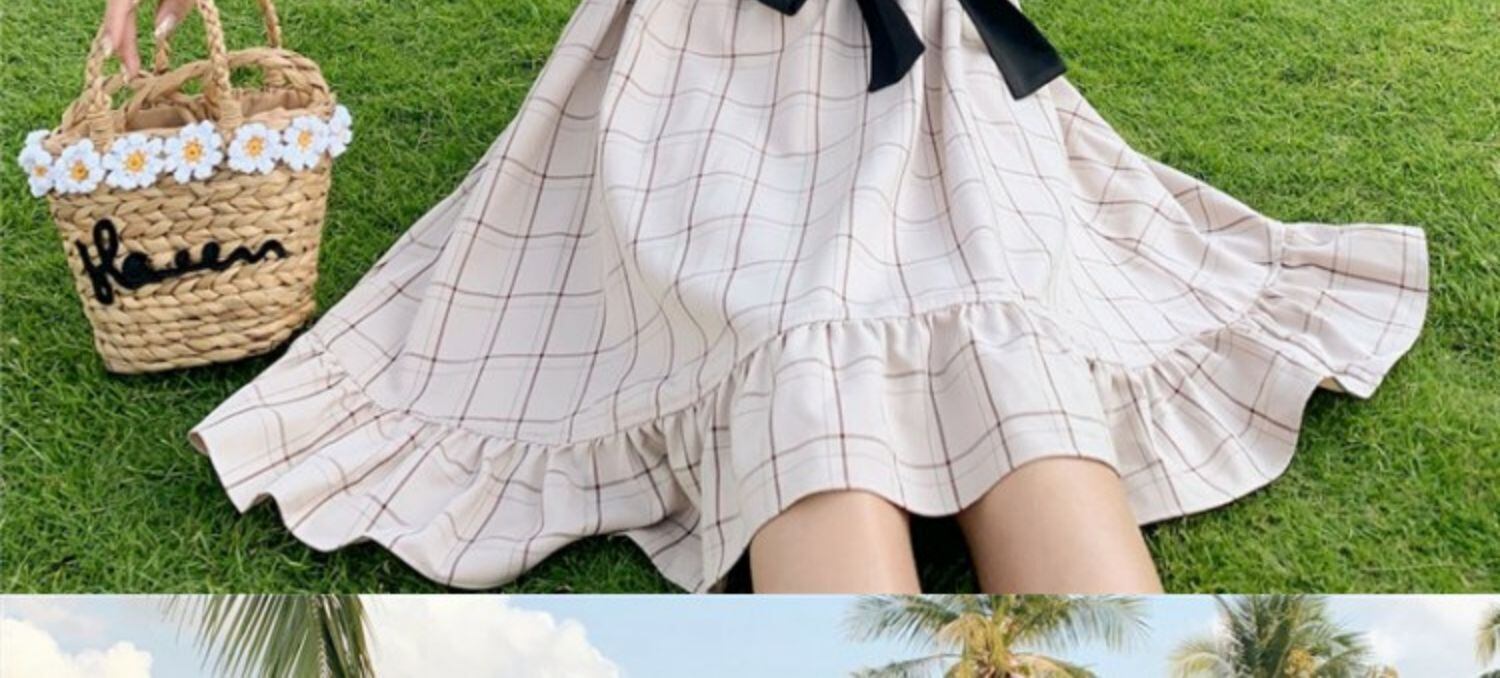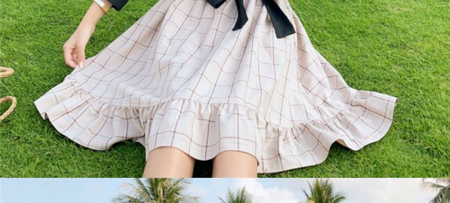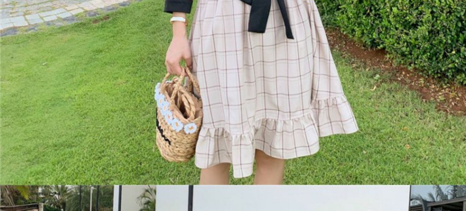 スカート スプリングオータムドレス 格子柄半袖スリーブスタンダード ショート レトロ ハーフスリーブ 春物 秋物 萌量不足80240087417
