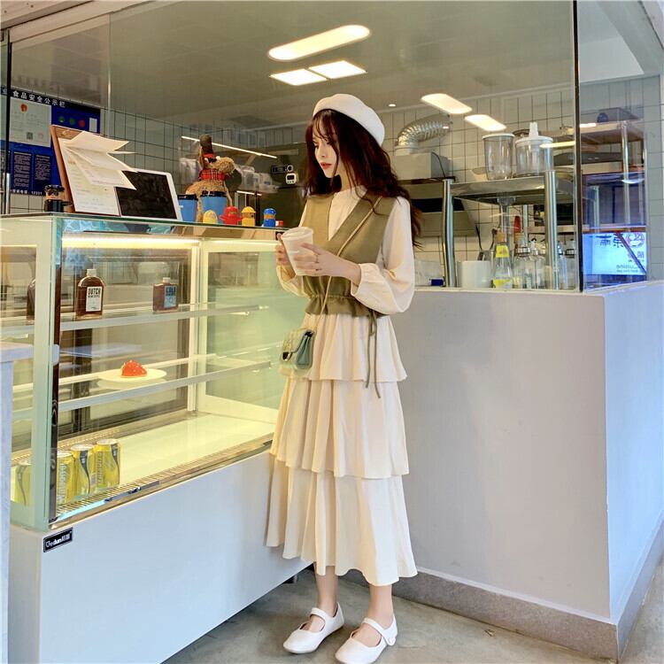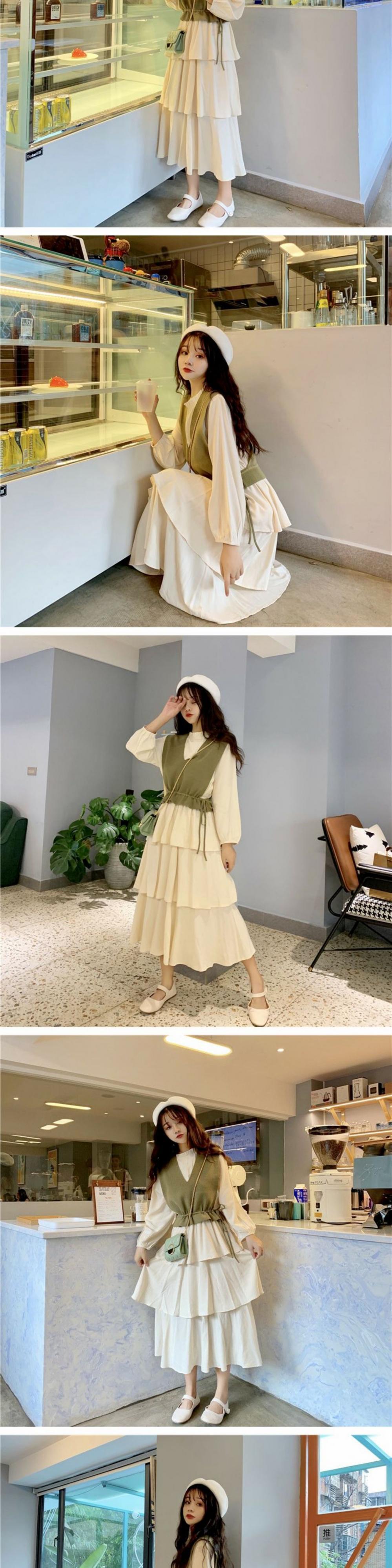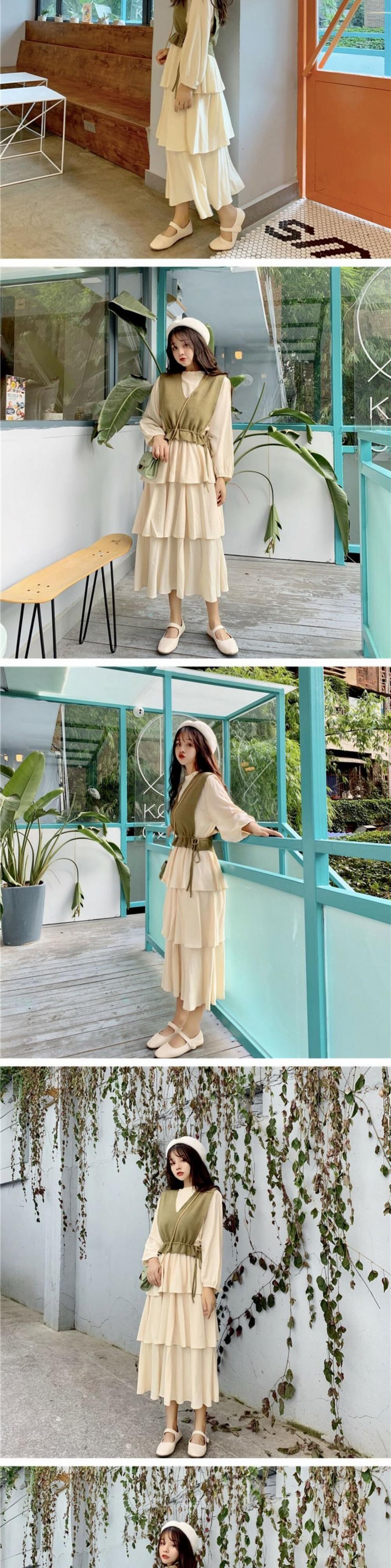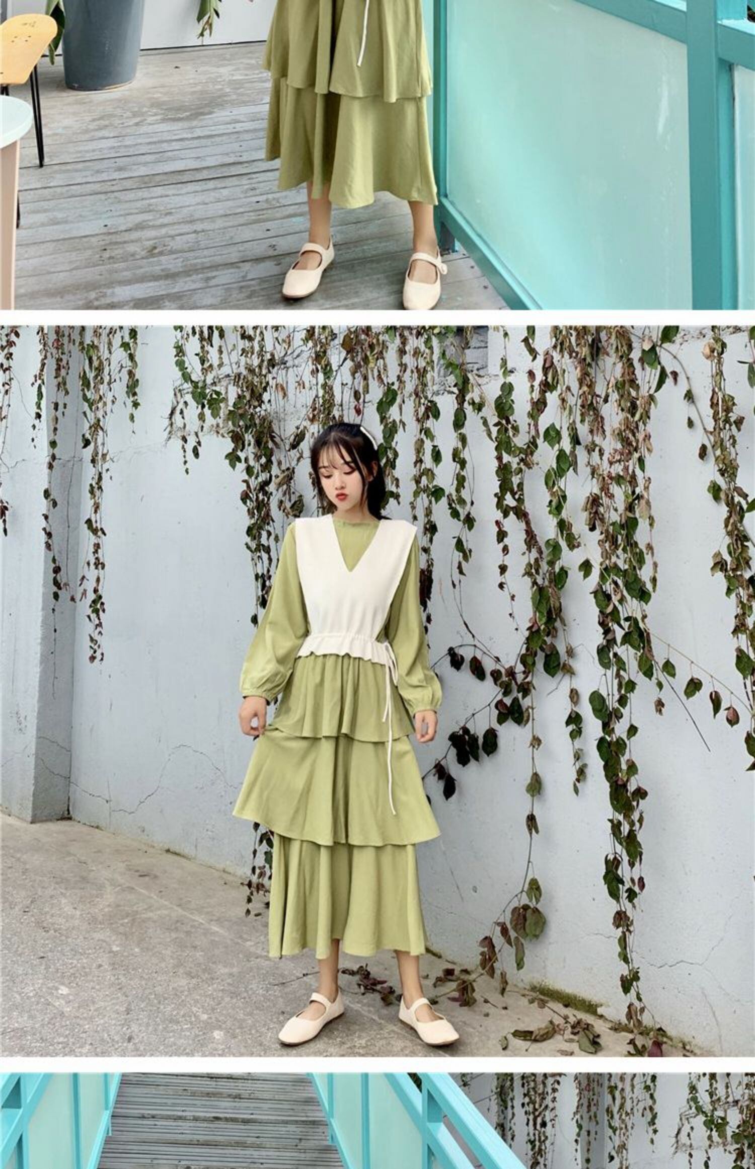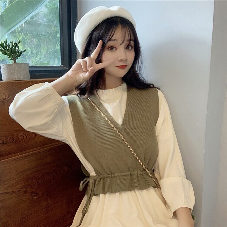 スーパーフェアリースカート2020年春秋新ウエストスリミングケーキドレス女性ワイルドVネックドローストリングチョッキ 萌量不足49022248633