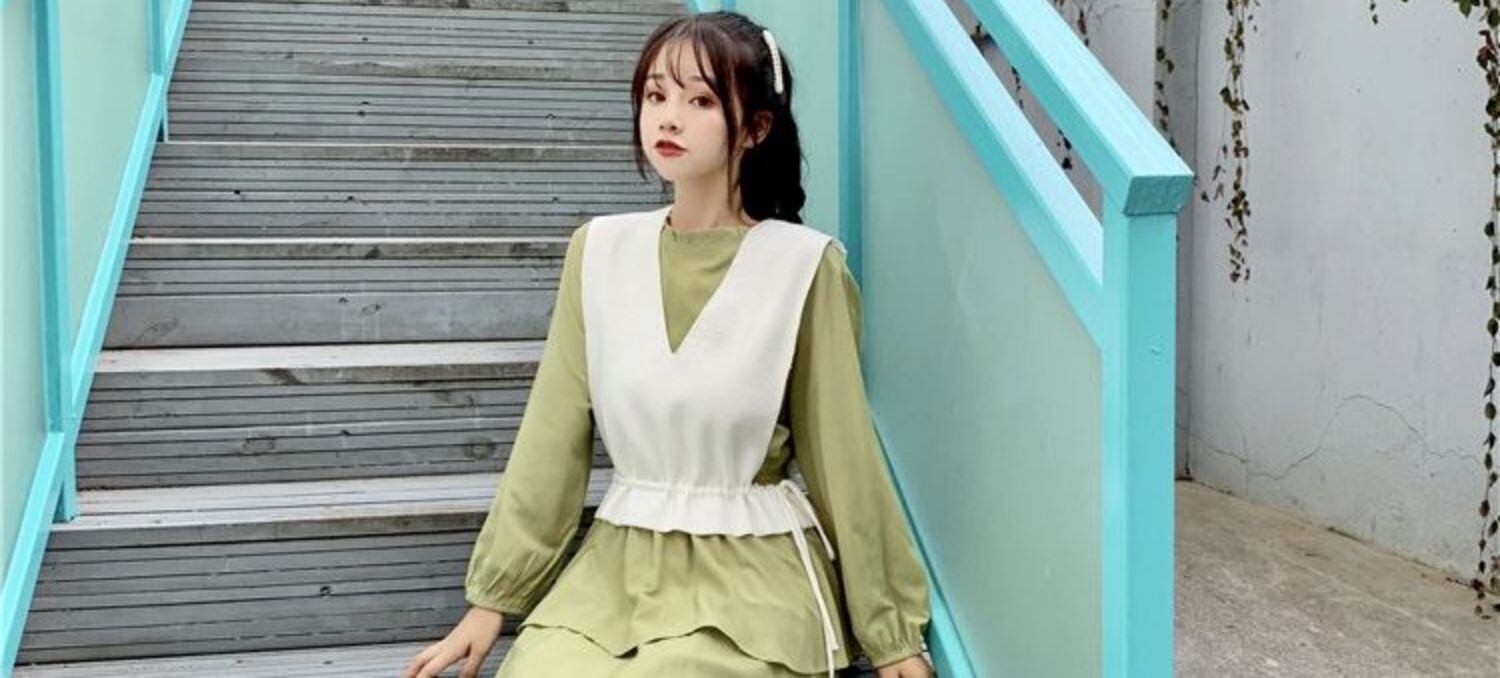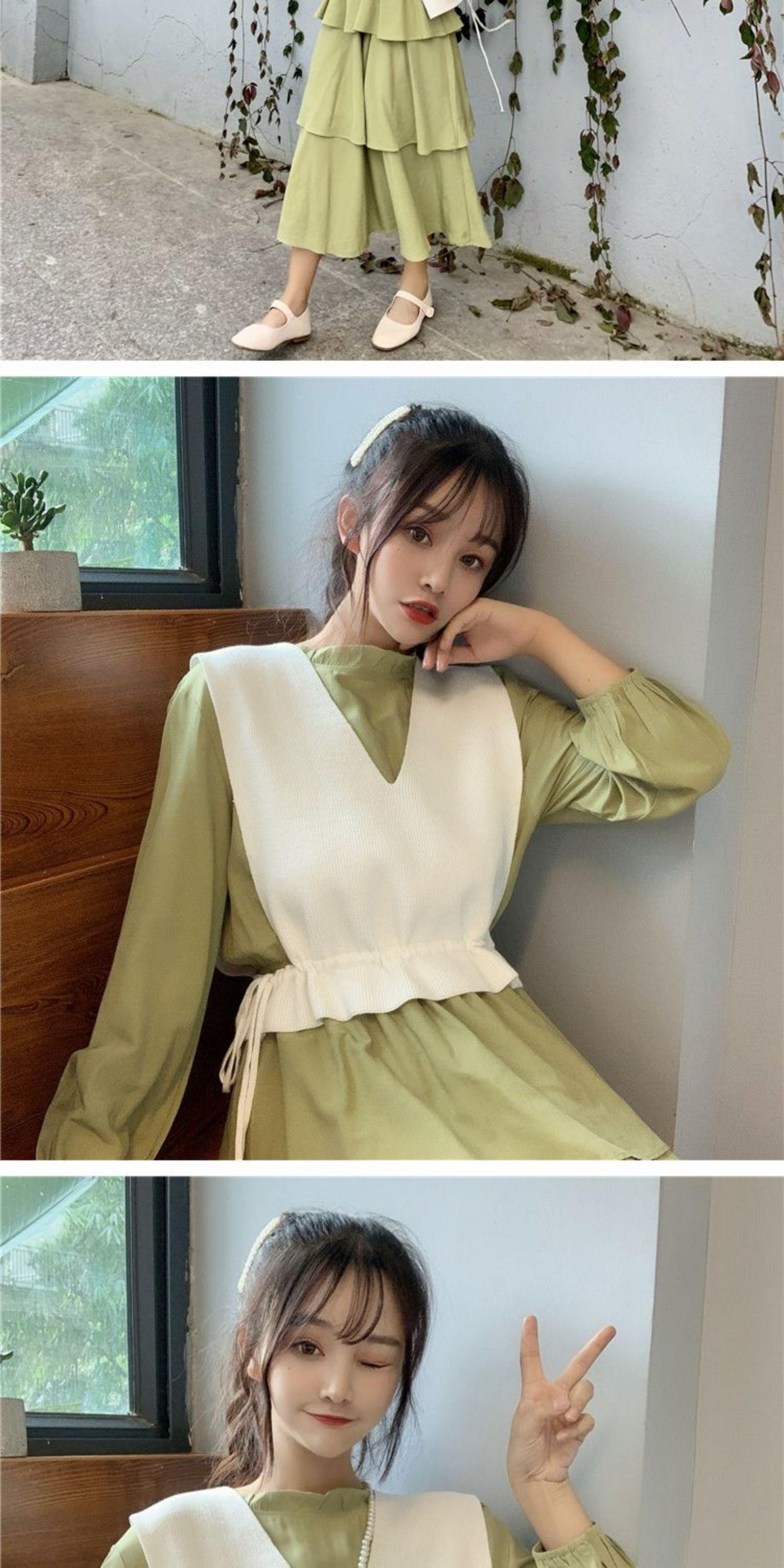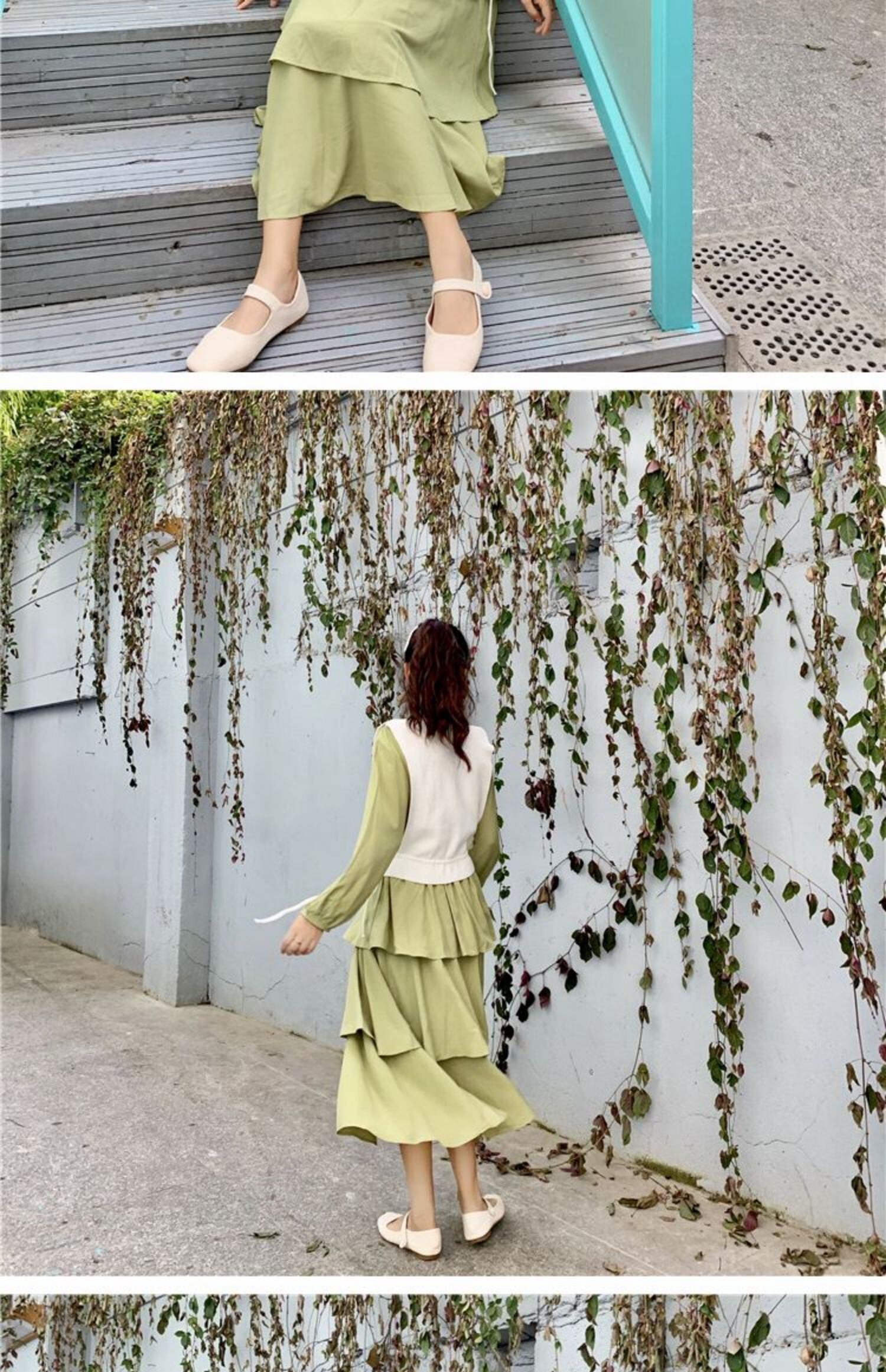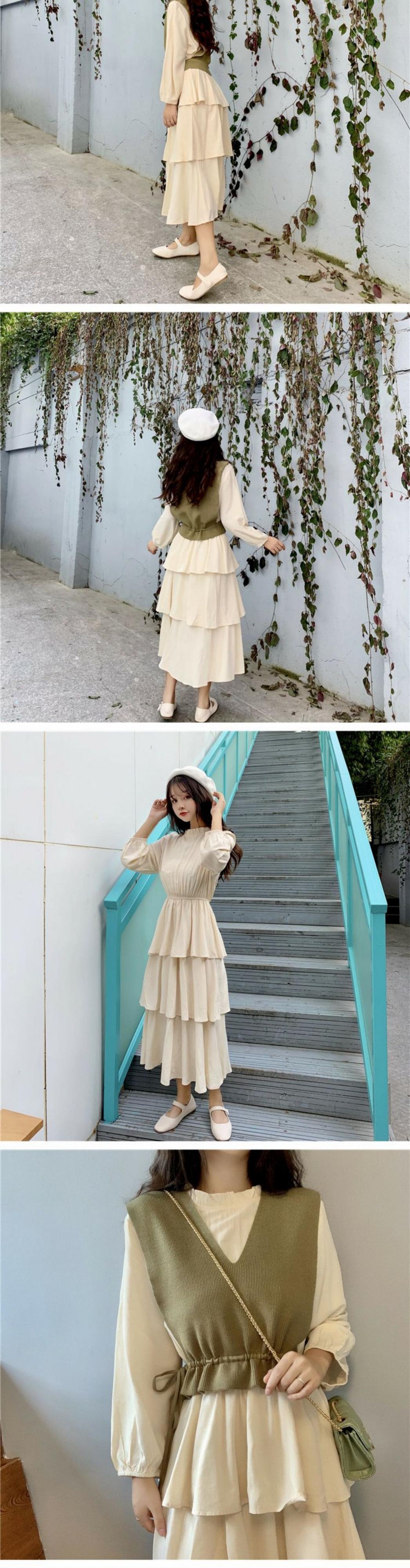 スーパーフェアリースカート2020年春秋新ウエストスリミングケーキドレス女性ワイルドVネックドローストリングチョッキ 萌量不足49022248633