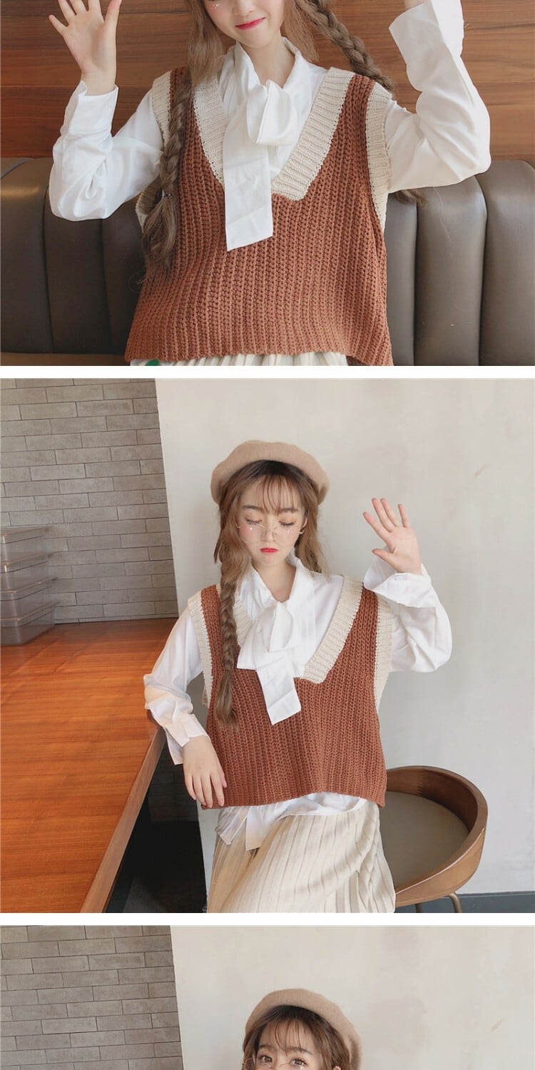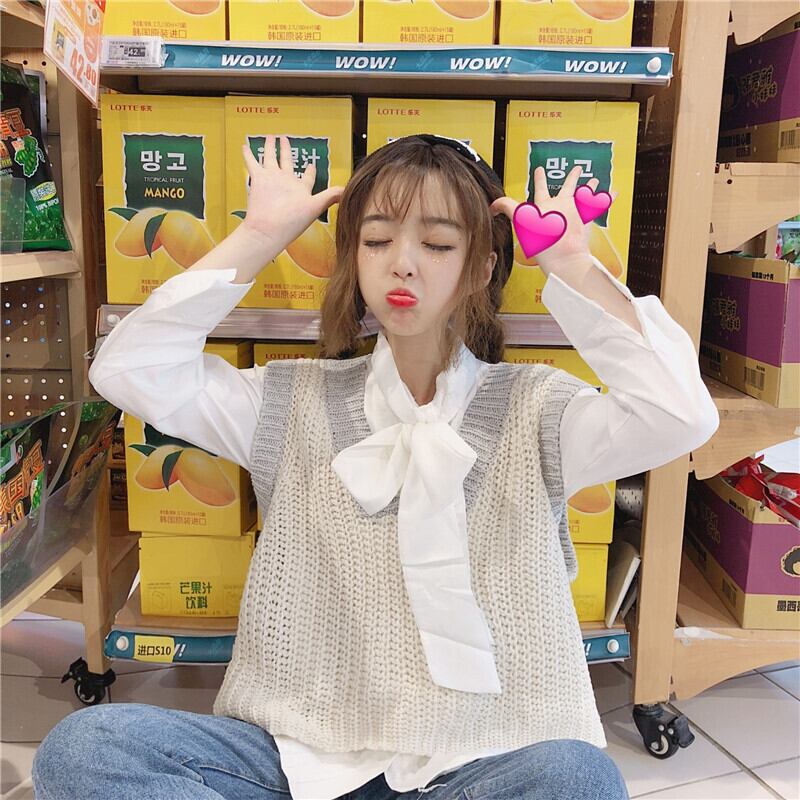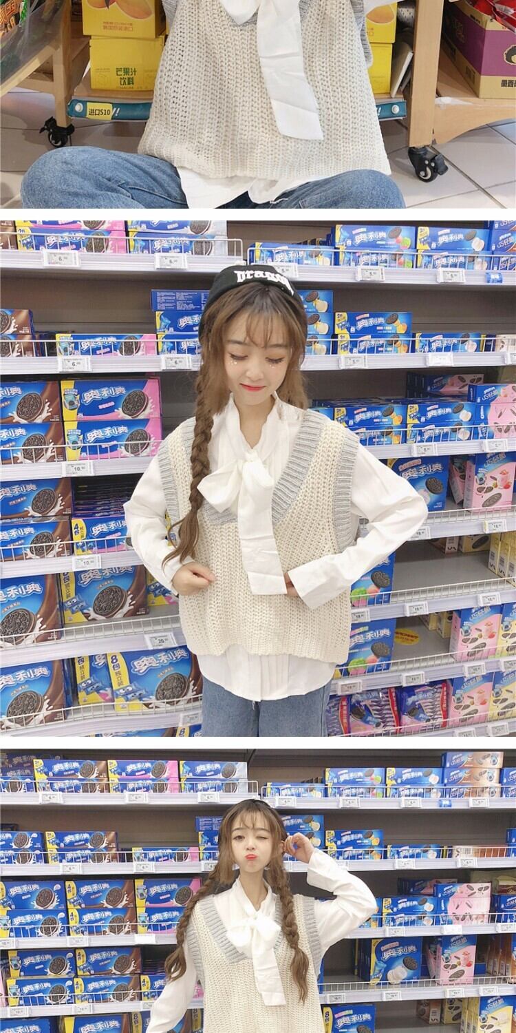 スタイルルーズトップソフトキュートスウィートレイジースタイルセーターレディースオータムウェアアウトサイドVネックセーターベストベスト 萌量不足43245584157