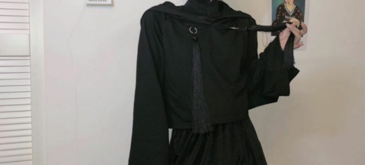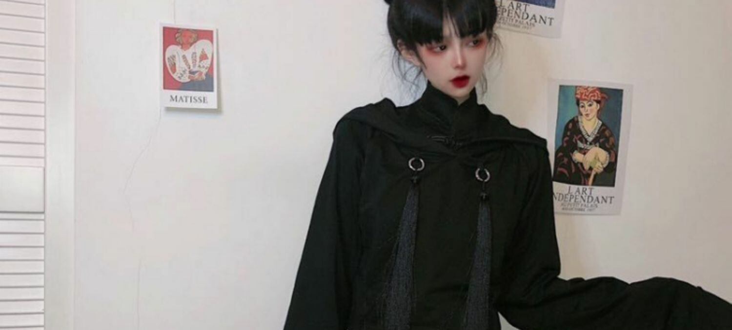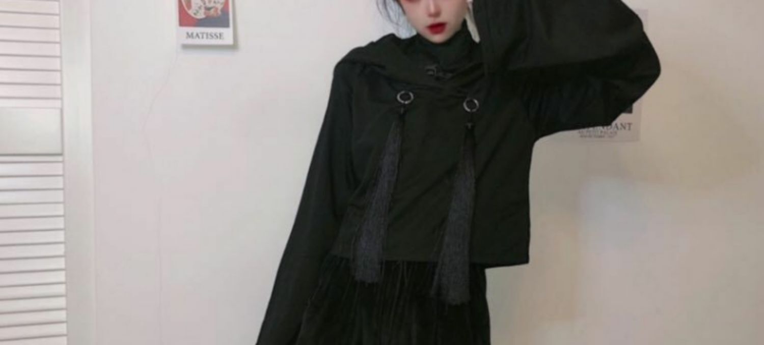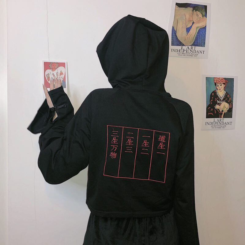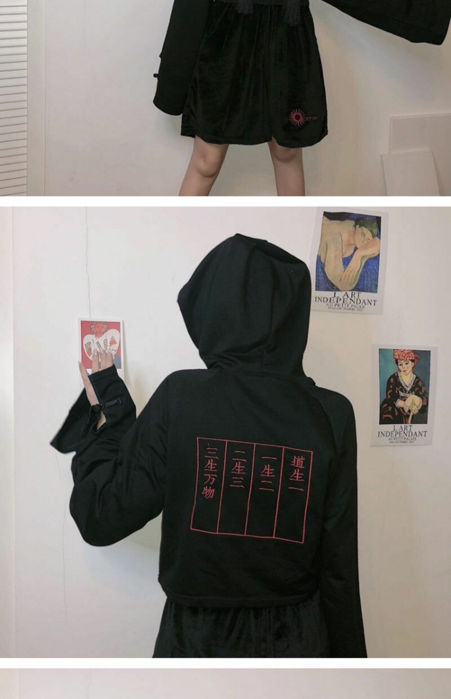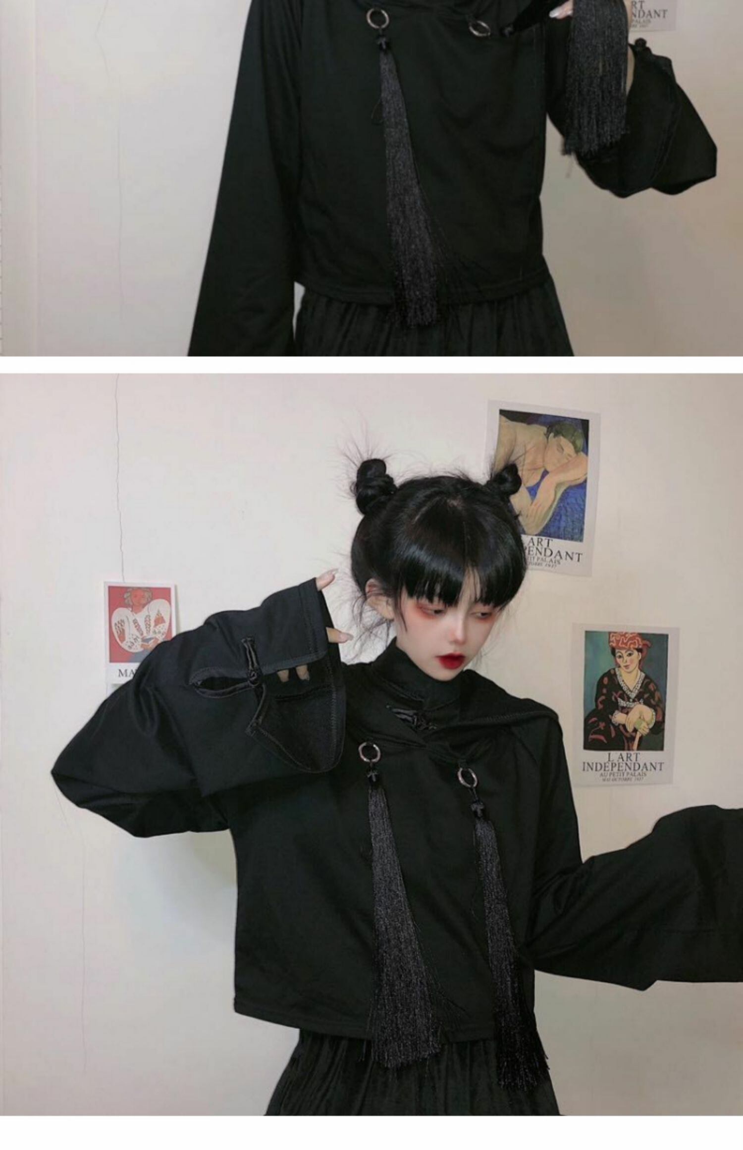 ダークブラックテルレトロディスクボタンルーズバージョンのセーター女性春と秋薄い短い刺繡フード付きトップインタイド 萌量不足39636781400