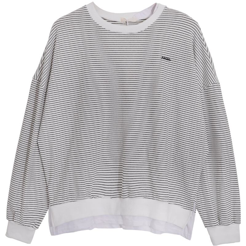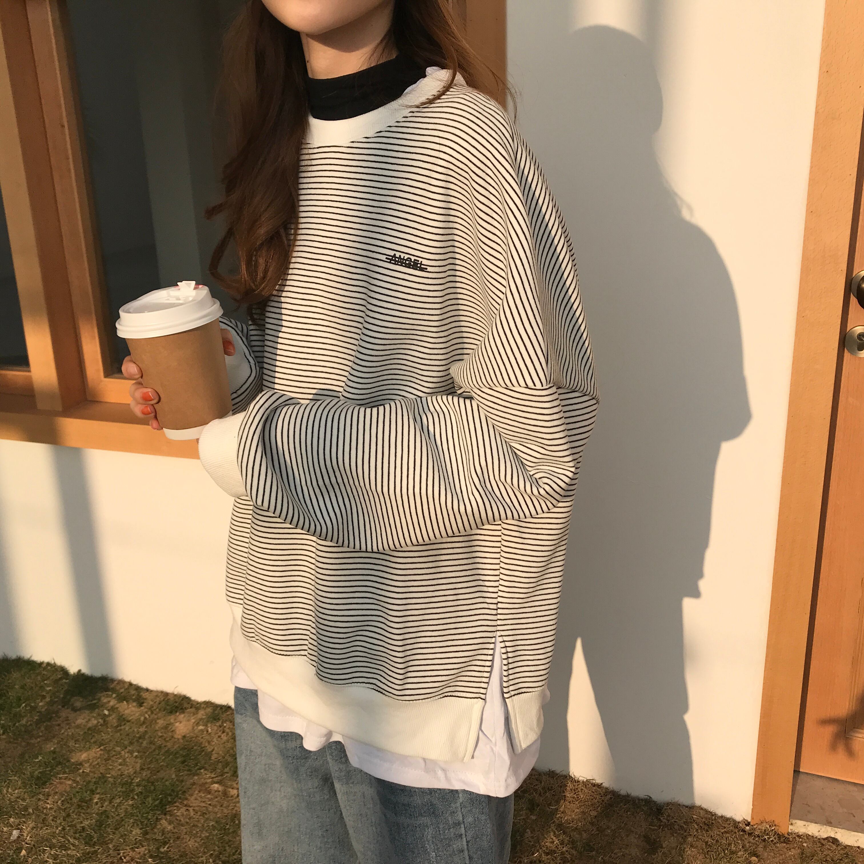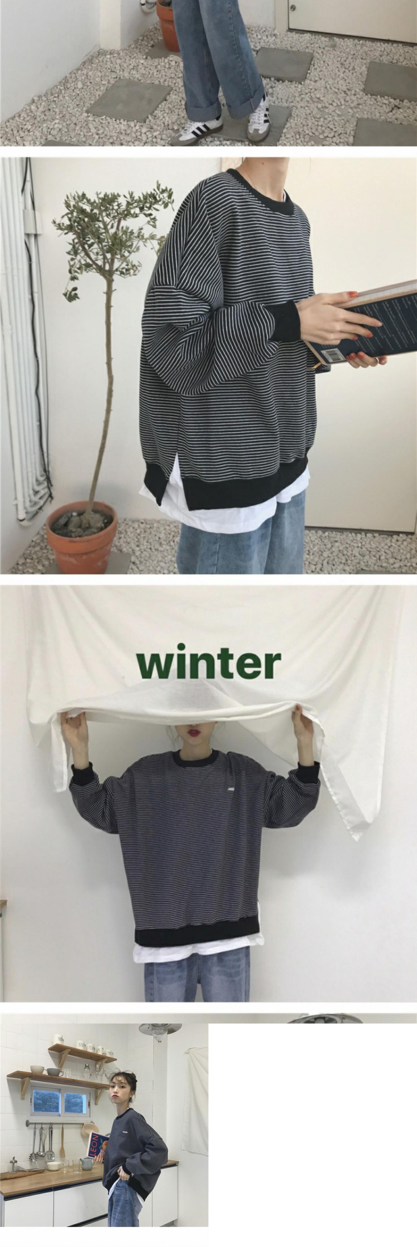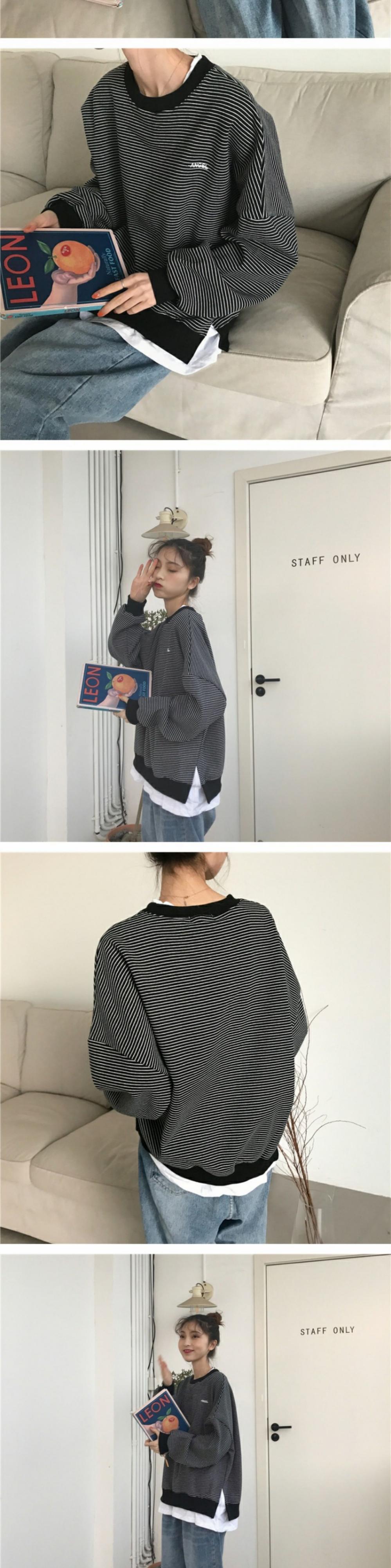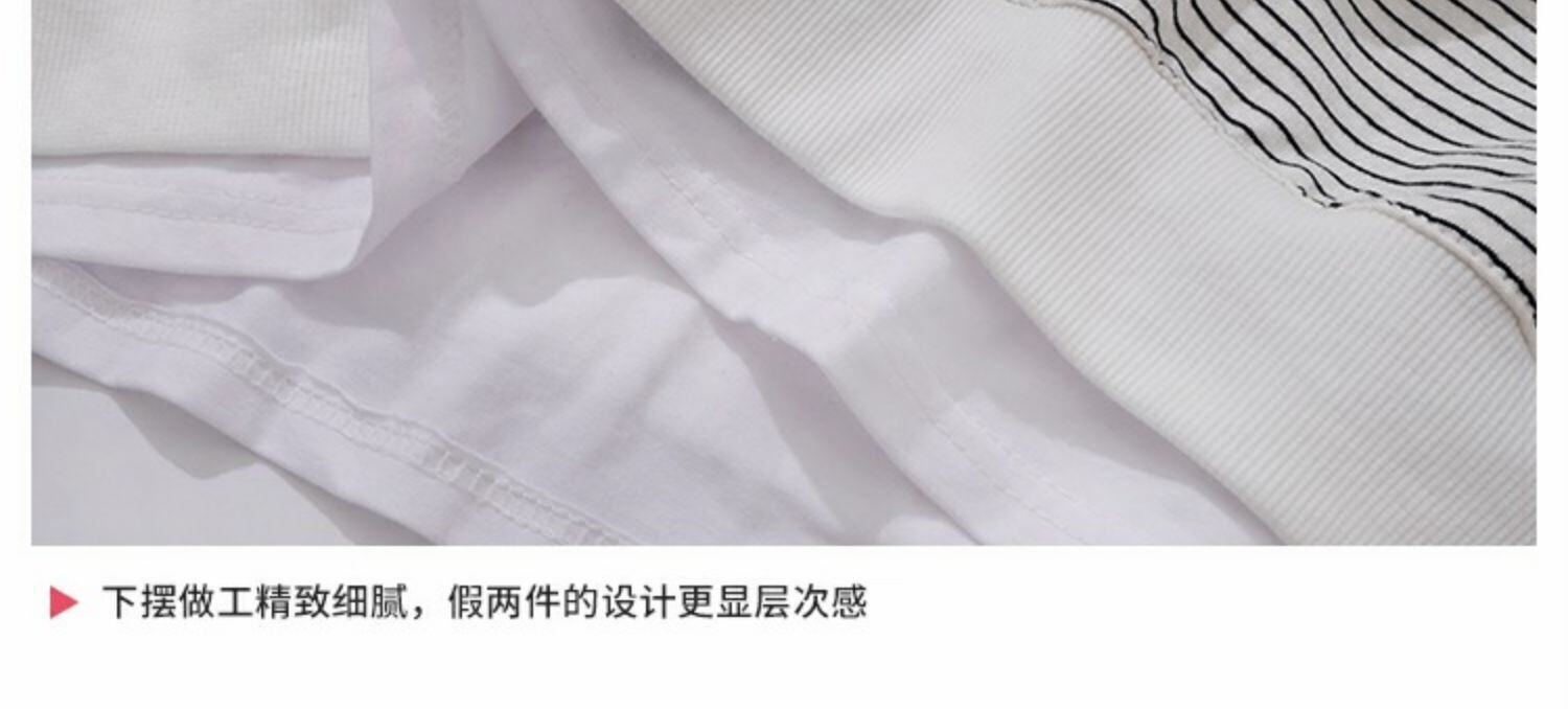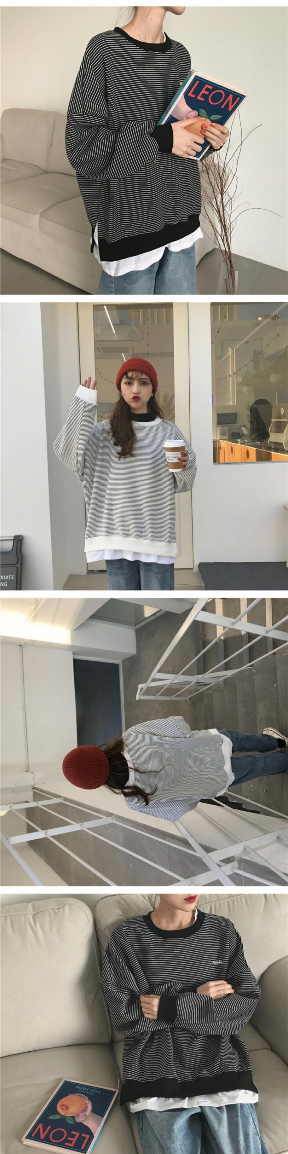 シックなセーターレディース2020年秋冬新作ステッチフェイクツーピースストライプ原宿スタイルルーズプルオーバートップトレンド 萌量不足6603916558
