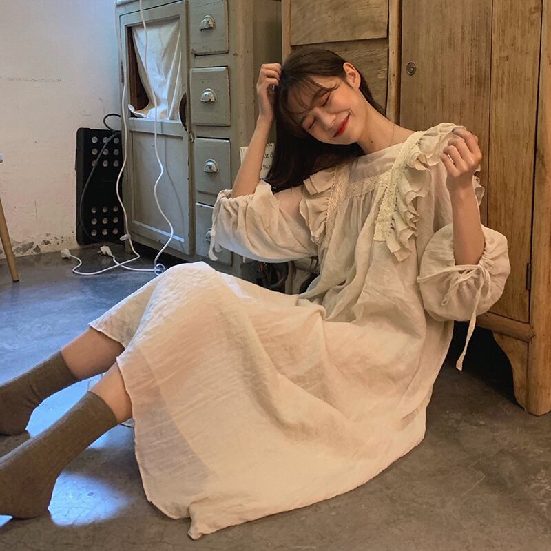 2020年春秋新作レディースバージョンの蓮の葉レースアップスモールスカートホームウェアミドル丈ドレス 萌量不足93631820597