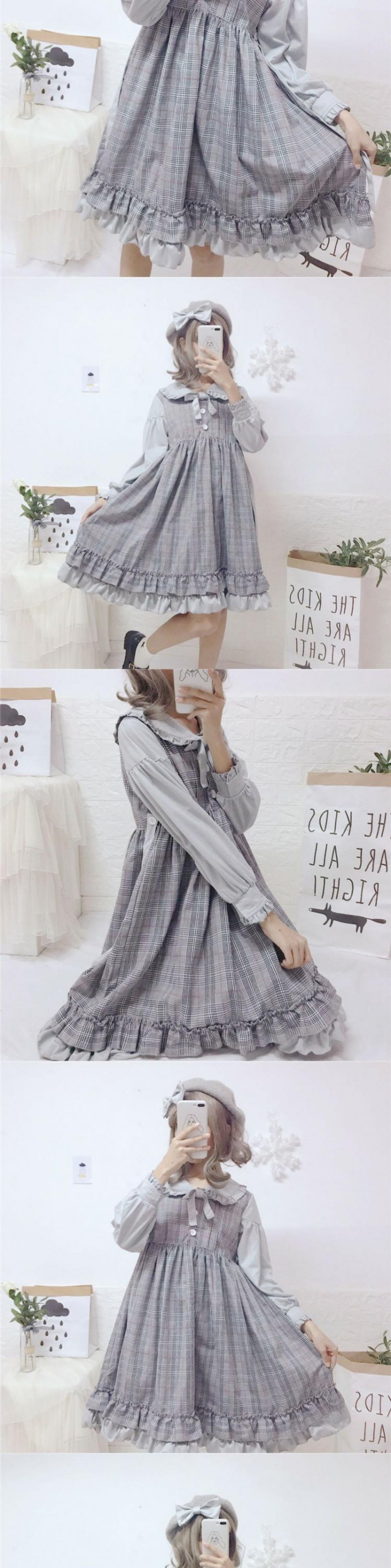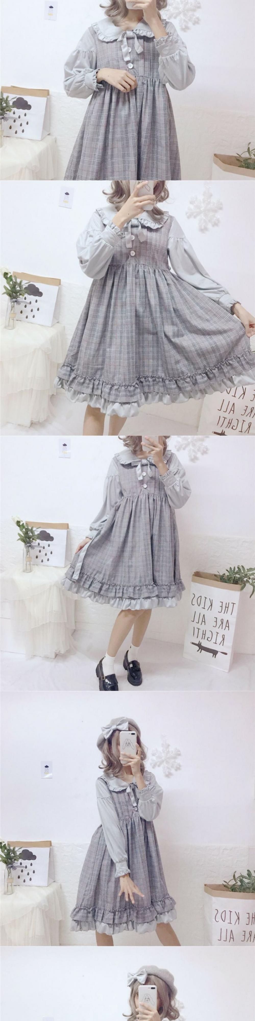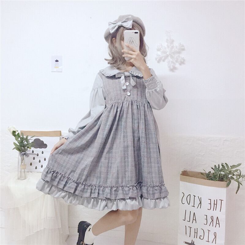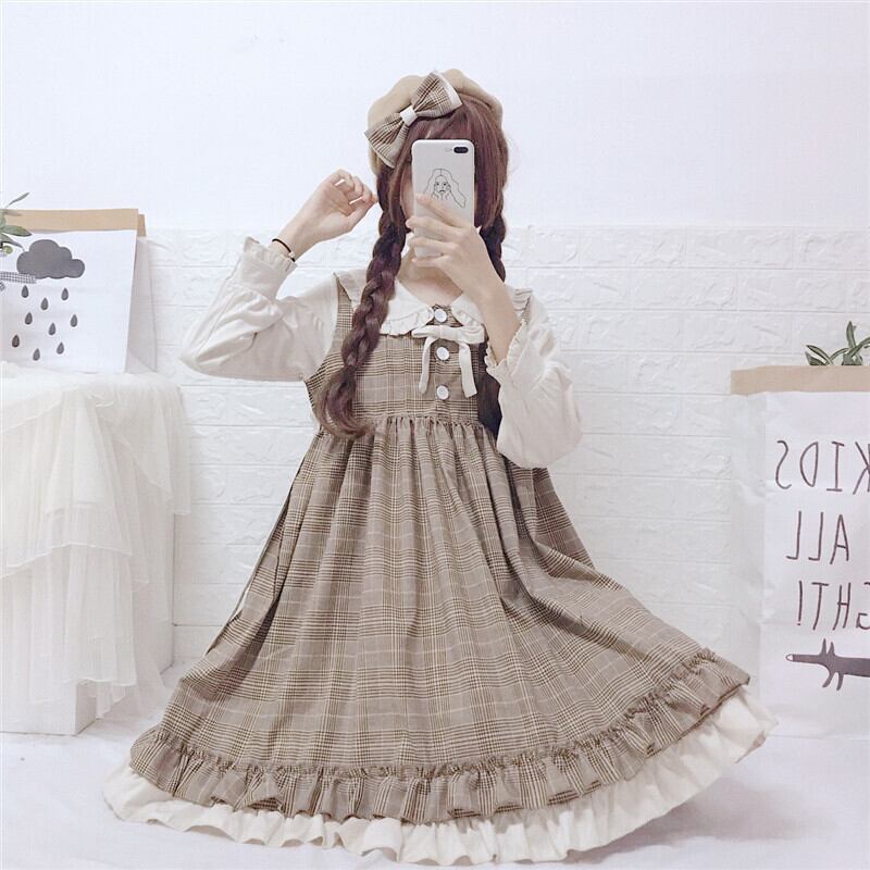 スカートの女性2020新しい秋のフリル人形の襟甘いese学生偽のツーピースステッチドレストレンド 萌量不足47001116333