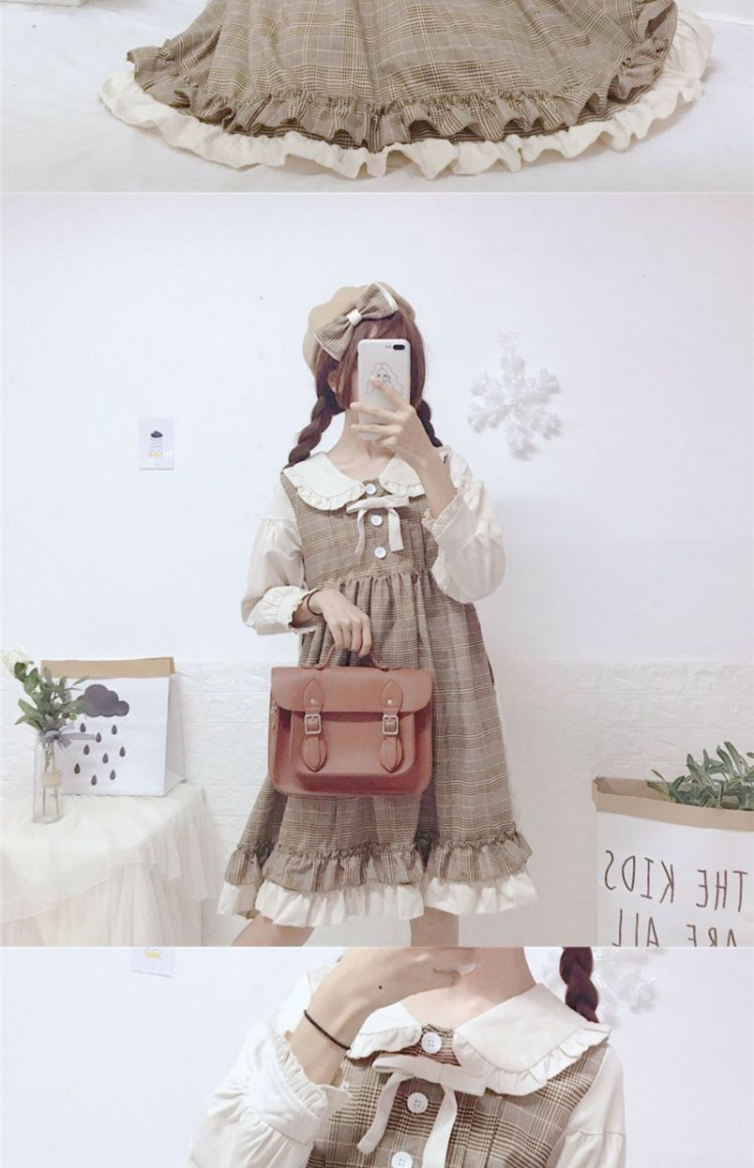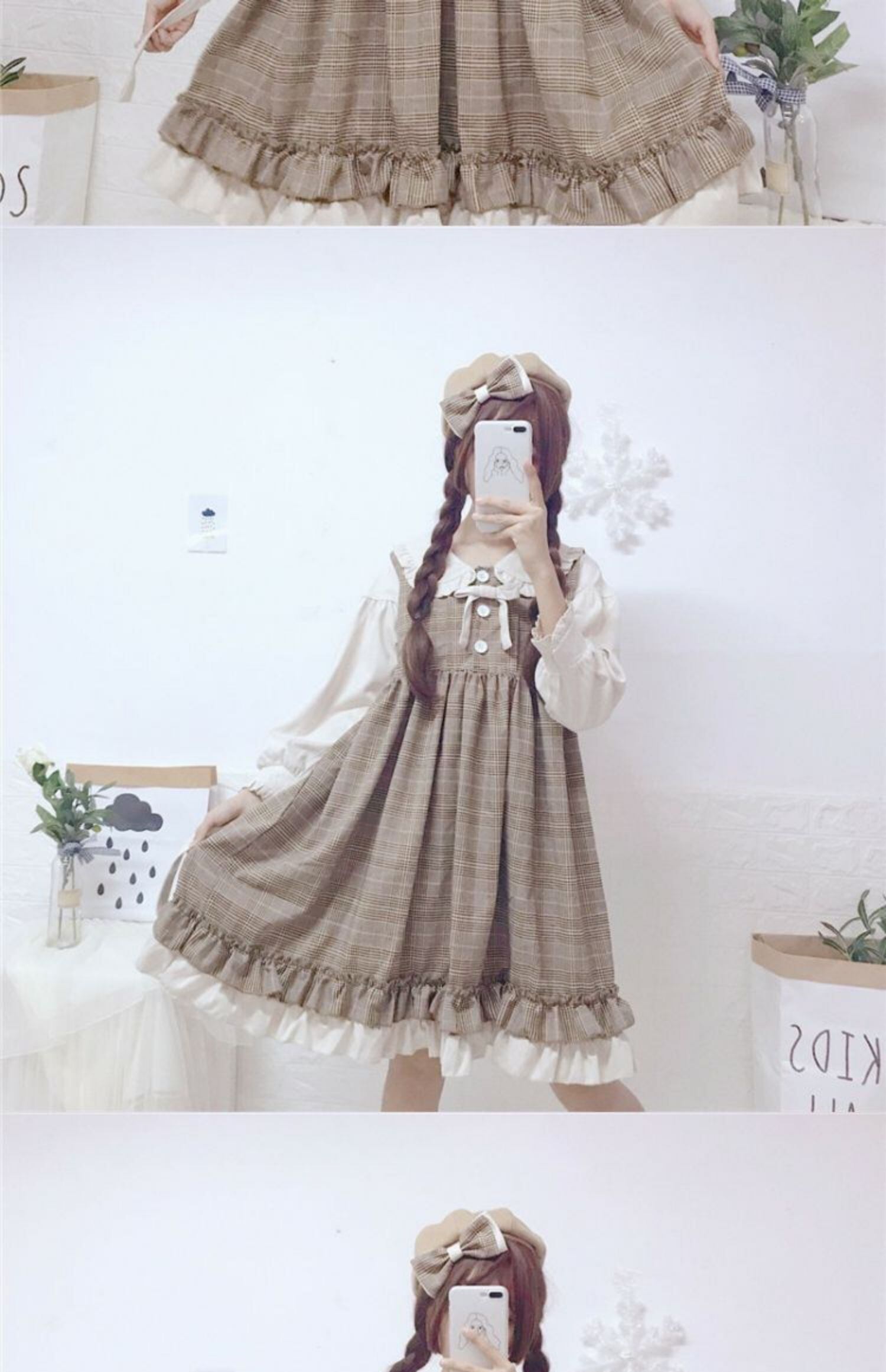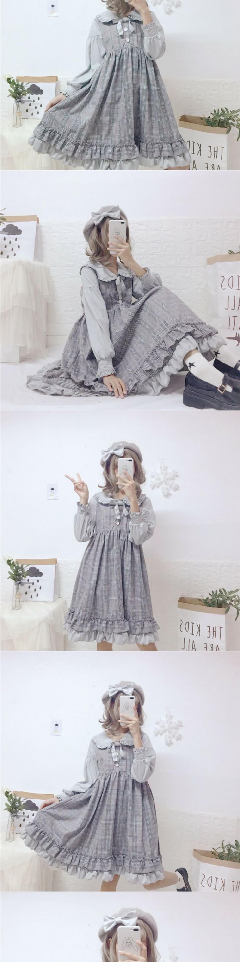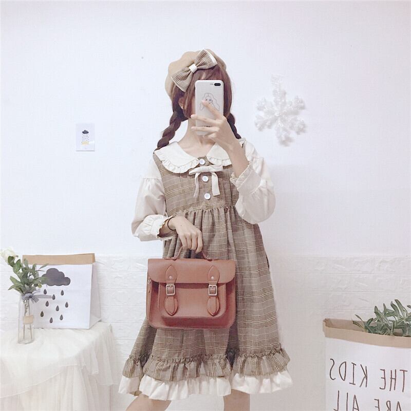 スカートの女性2020新しい秋のフリル人形の襟甘いese学生偽のツーピースステッチドレストレンド 萌量不足47001116333