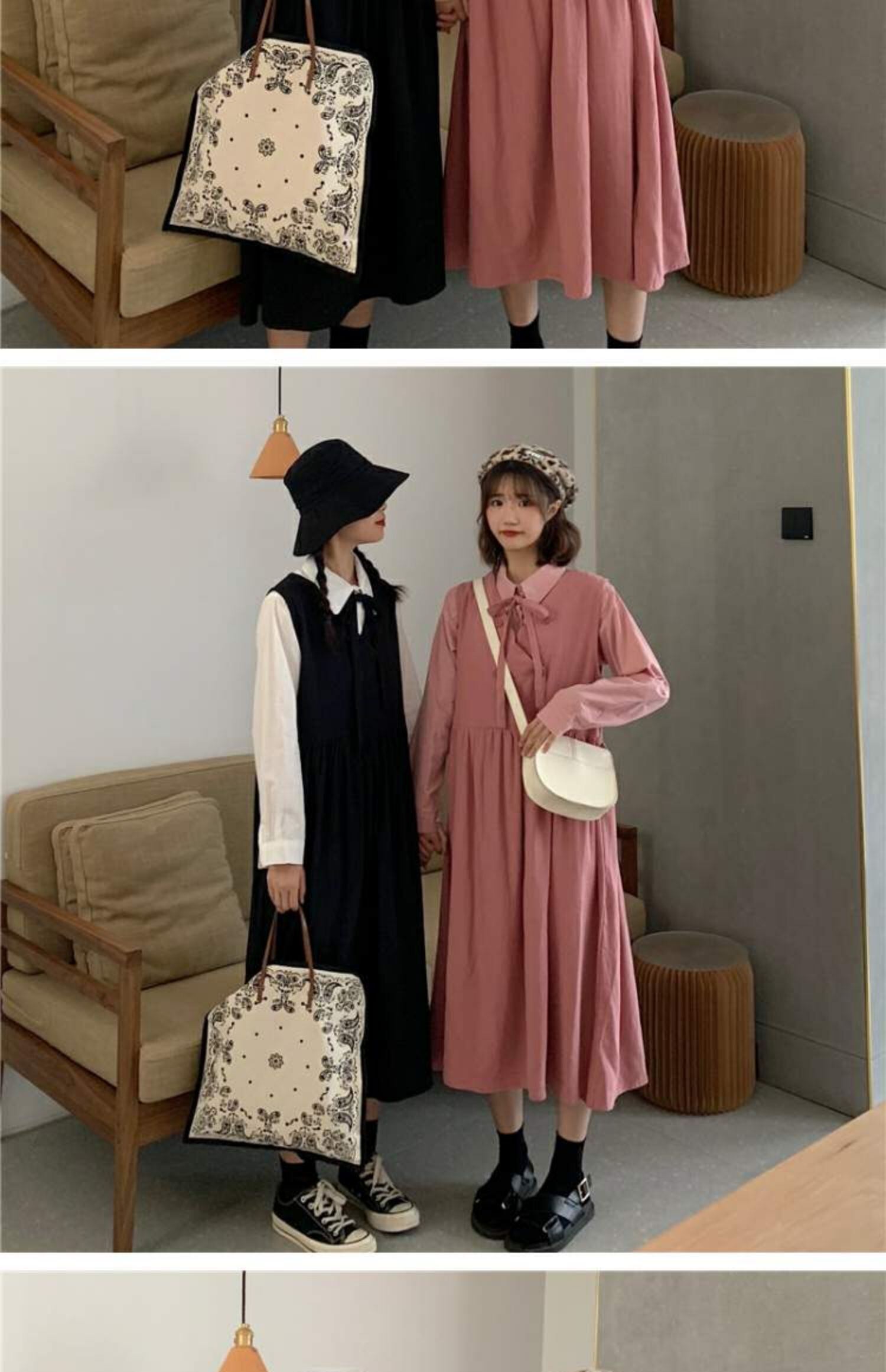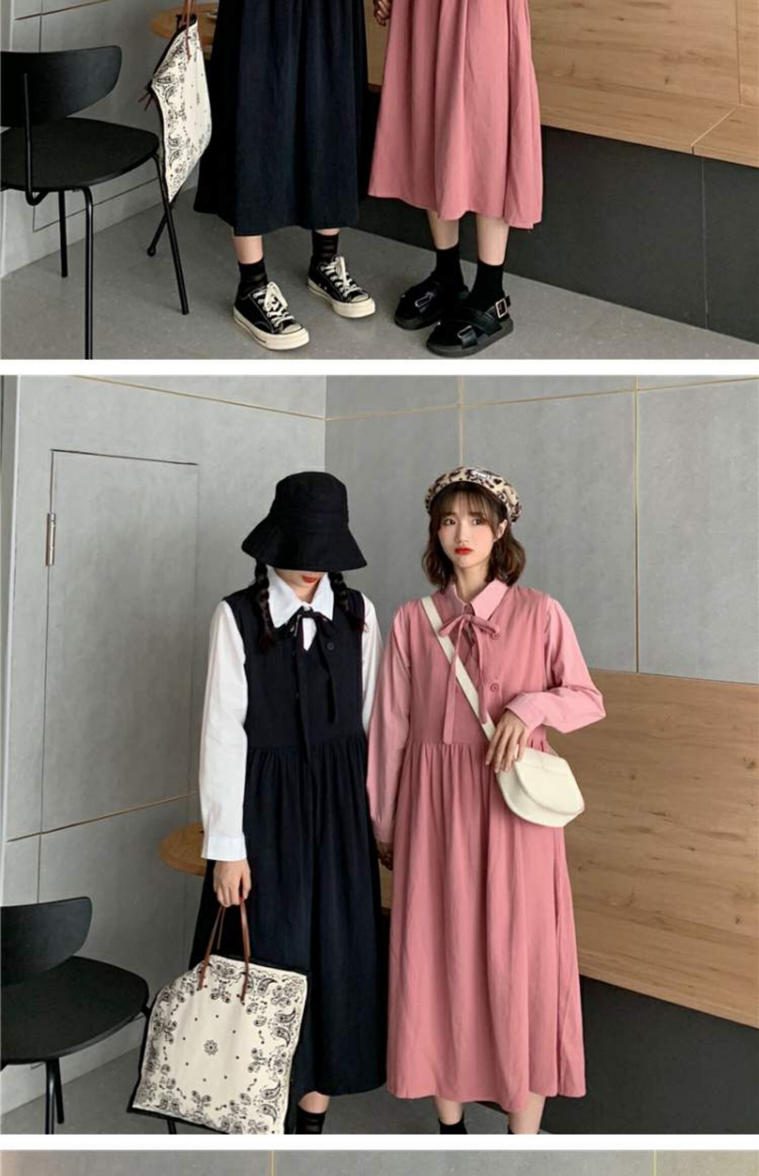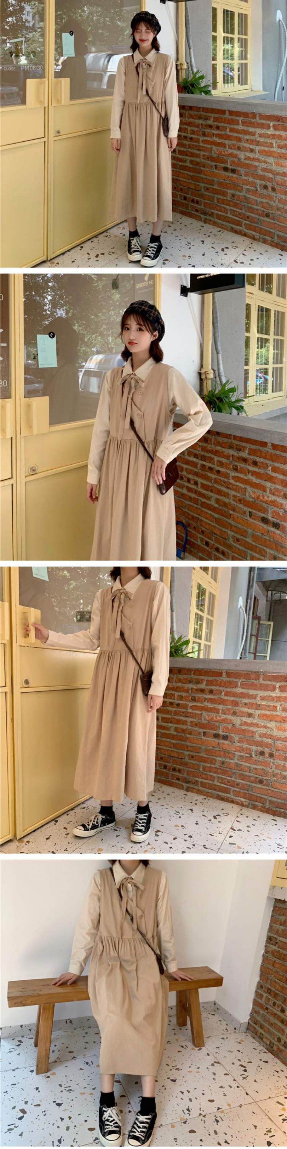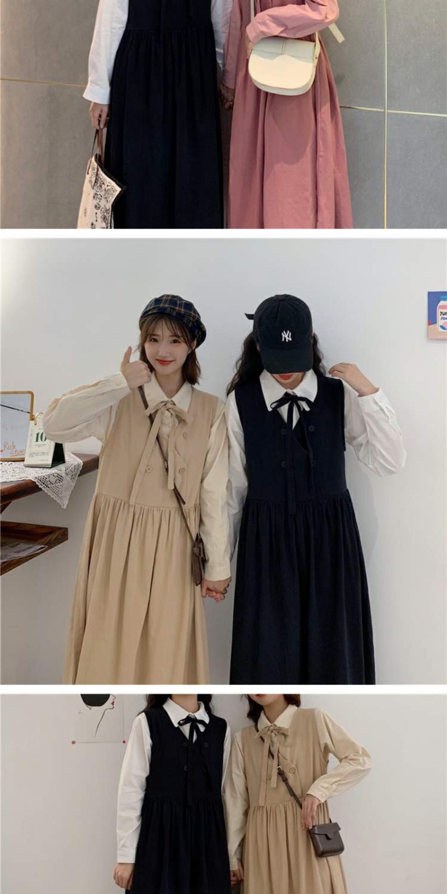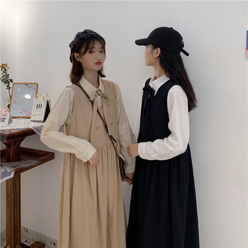 色:白いシャツのワンピース,ブラックベストスカートワンピース,ピンクのシャツワンピース,ピンクのベストドレスワンピース,ワンピースアプリコットシャツ,アプリコットベストドレスワンピース