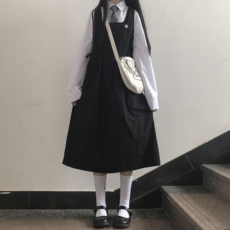 2020年春秋新作女性用ルーズスカートサスペンダースカートフレンチドレスカレッジスタイルホワイトシャツ 萌量不足54941073574