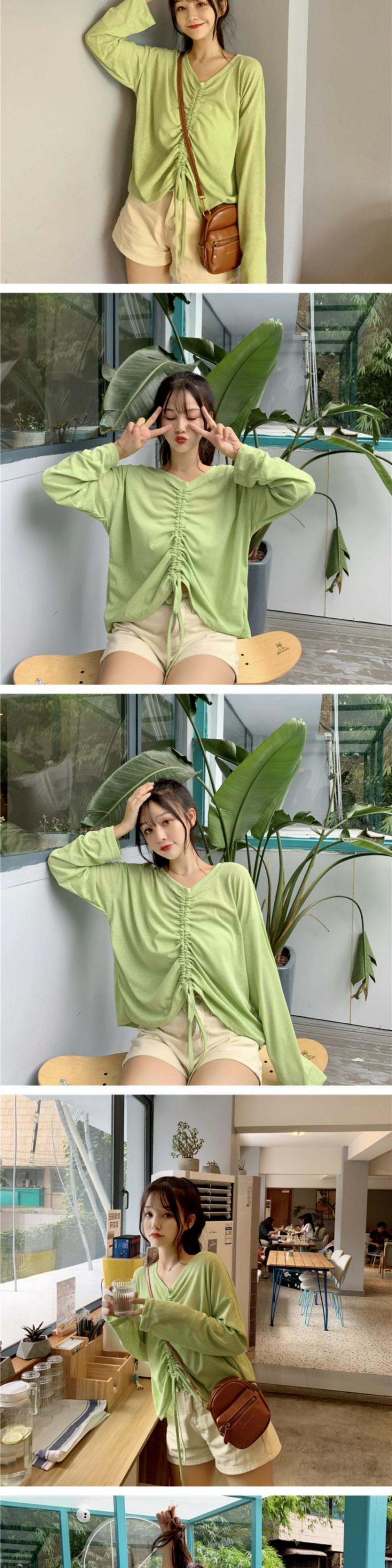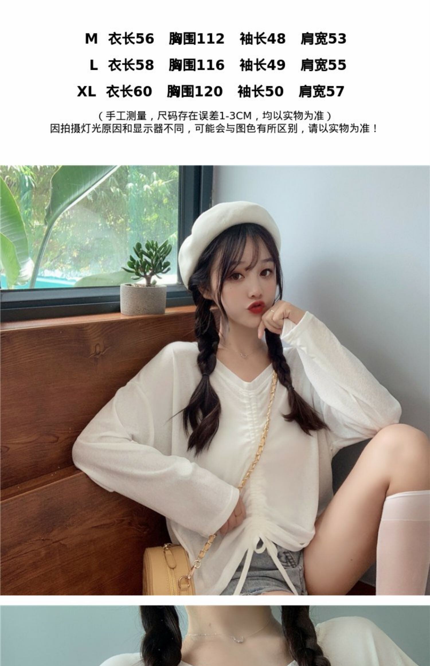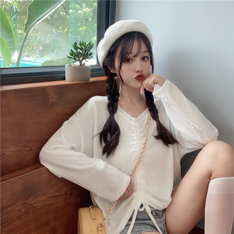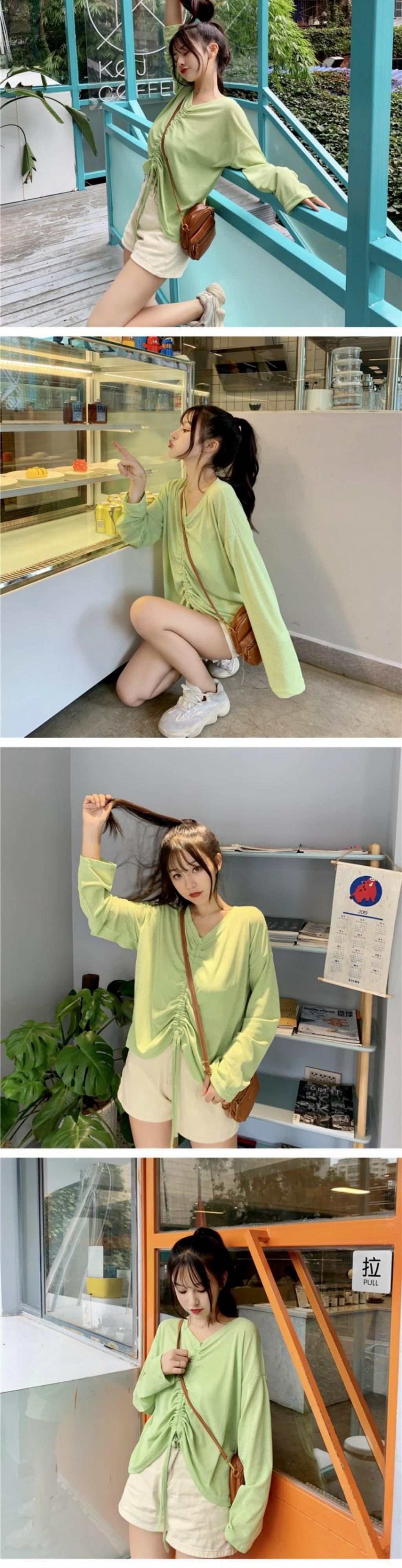 小さくてフレッシュでシンプルな巾着秋の服Vネックルーズトップ春秋スーパーフェアリー長袖Tシャツレディース2020新トレンド 萌量不足2791375872