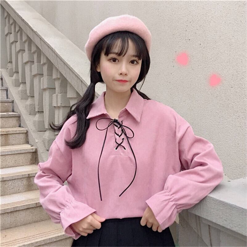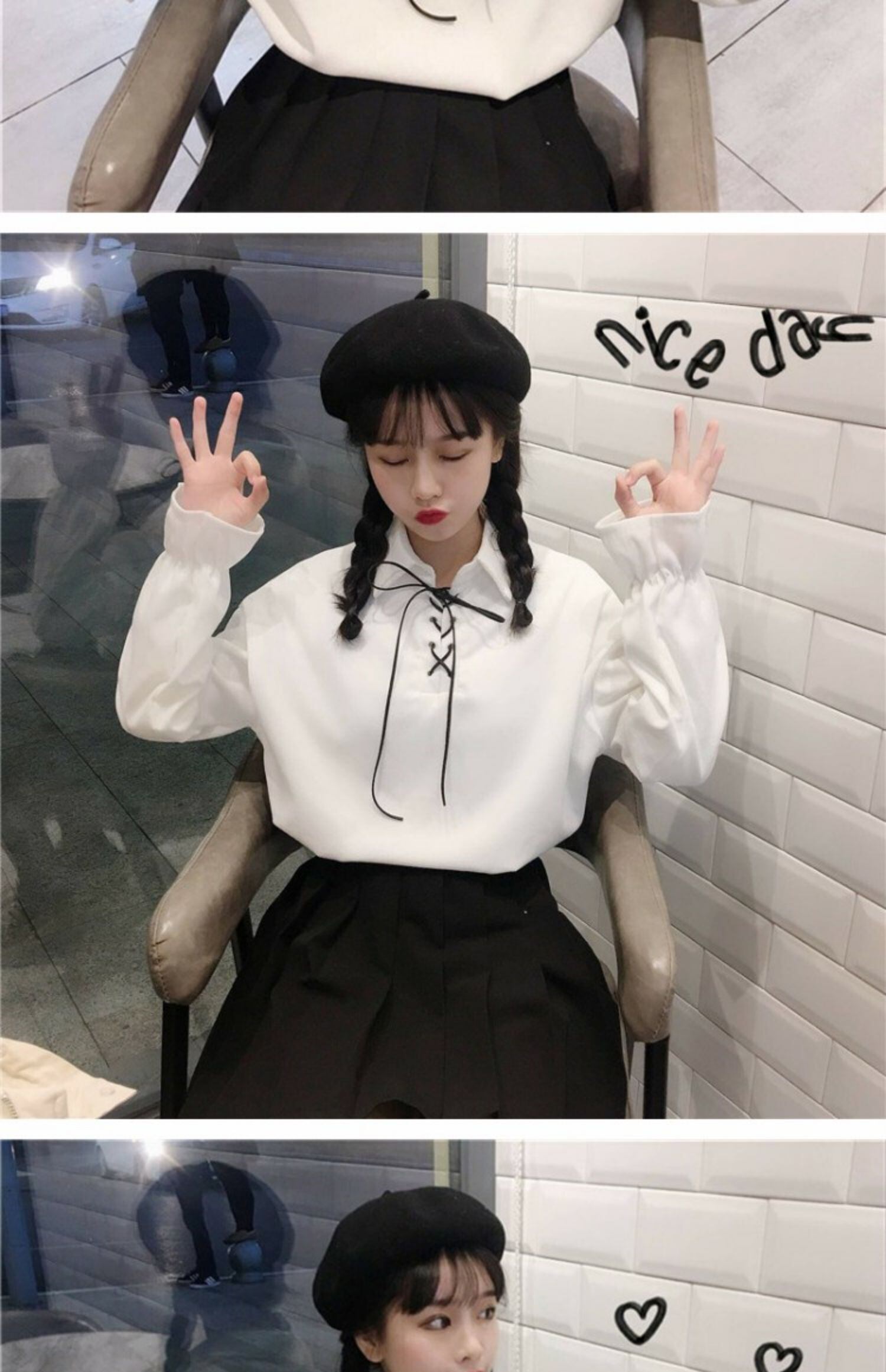 2020年秋新作コートスモールフレッシュトランペットスリーブシャツ女性デザインセンスニッチPOLOネックタイシャツトレンド 萌量不足48465736243