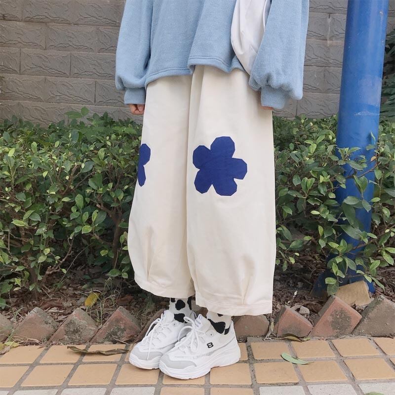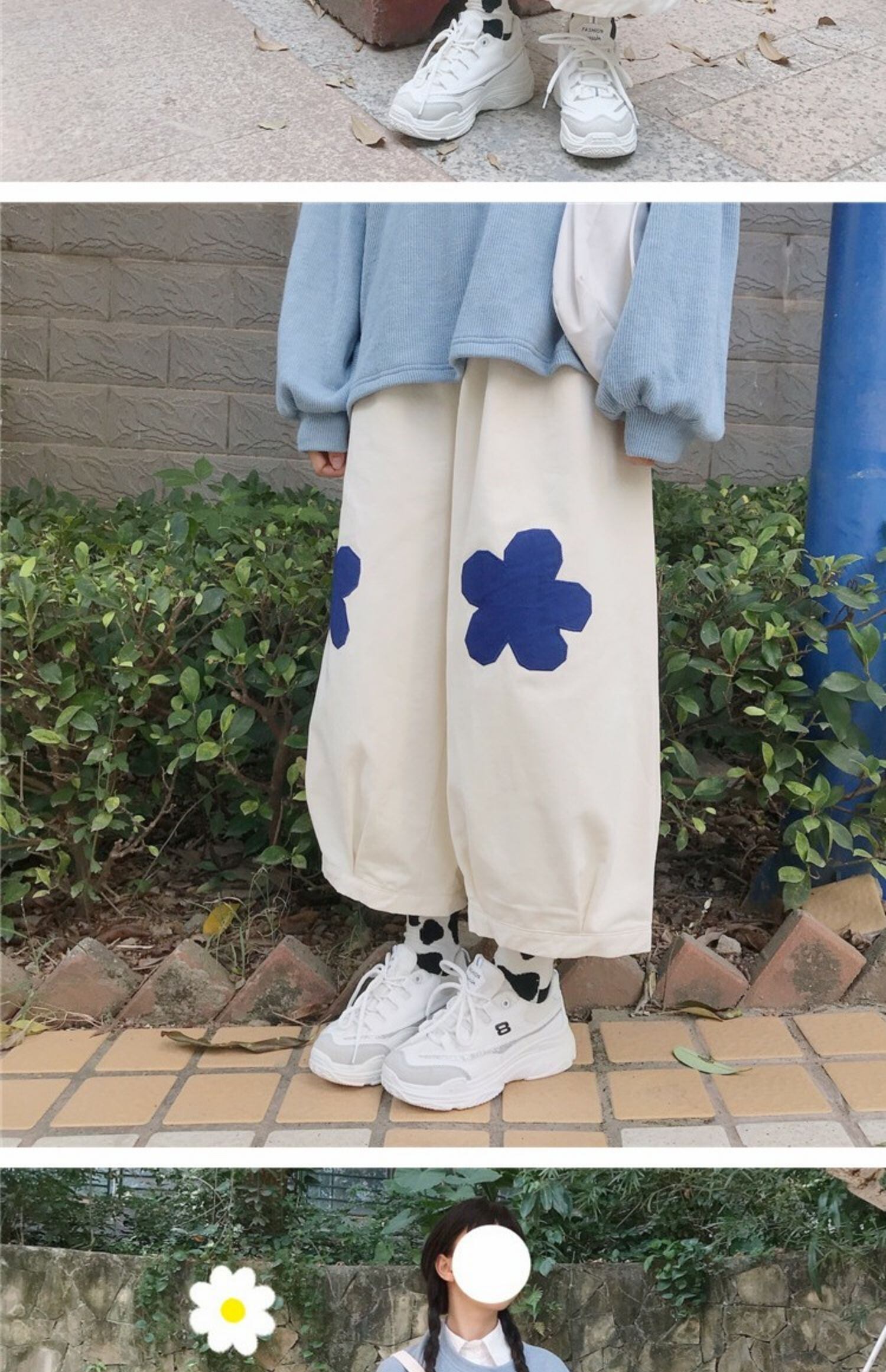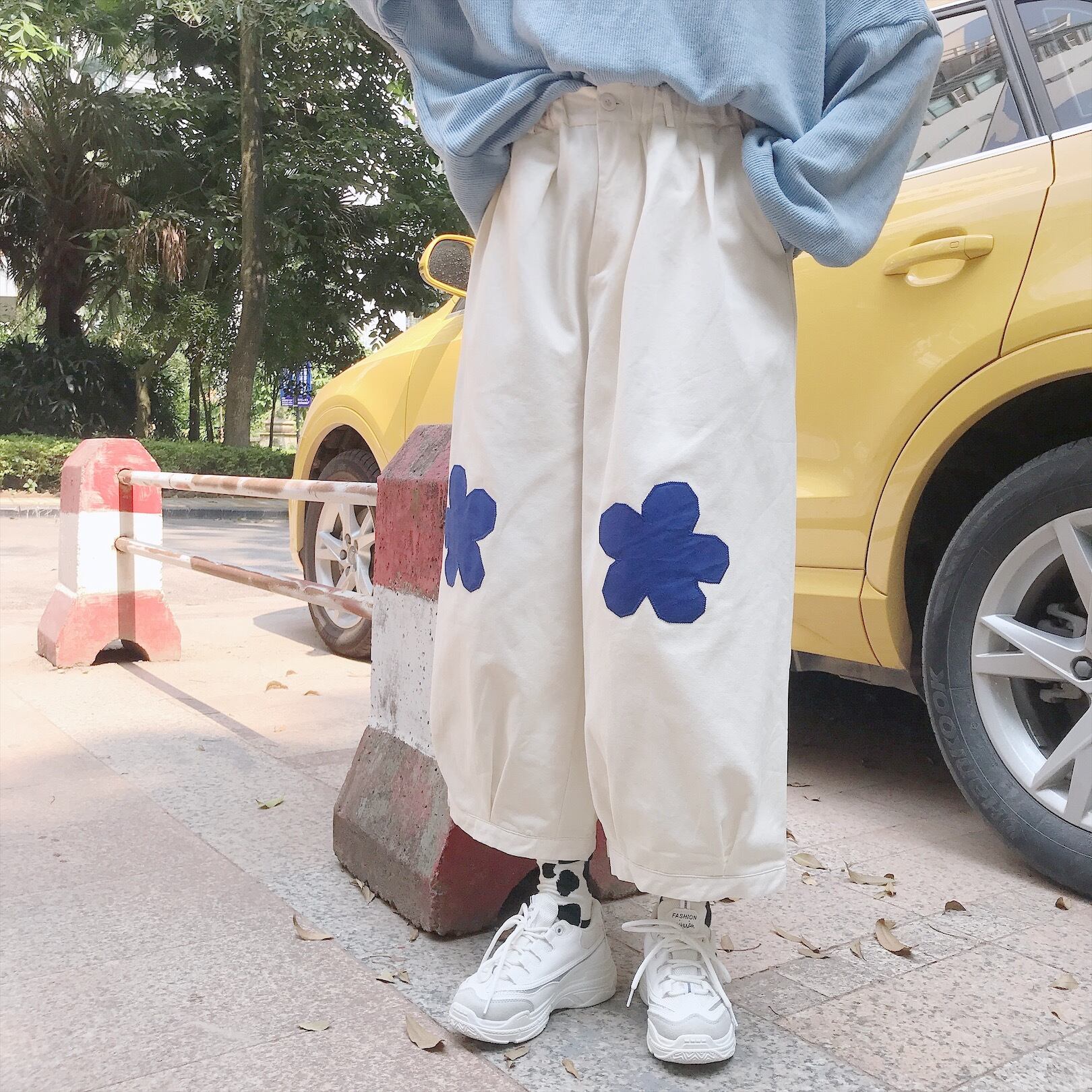 スモールフラワーパンツ秋の服2020新バージョンルーズストレートレッグパンツワイドレッグパンツ学生スリムナインポイントパンツ 萌量不足90113747287