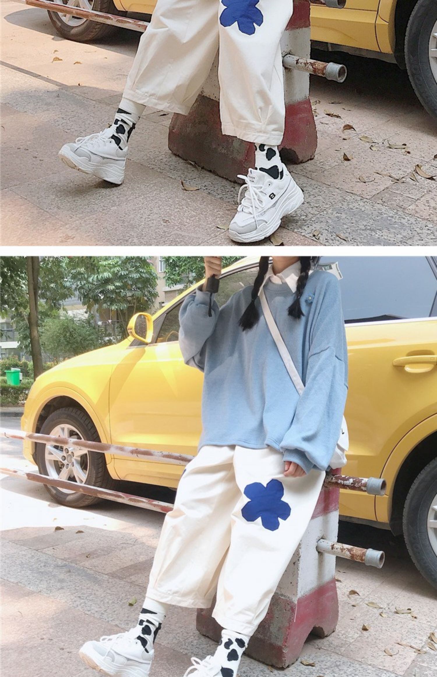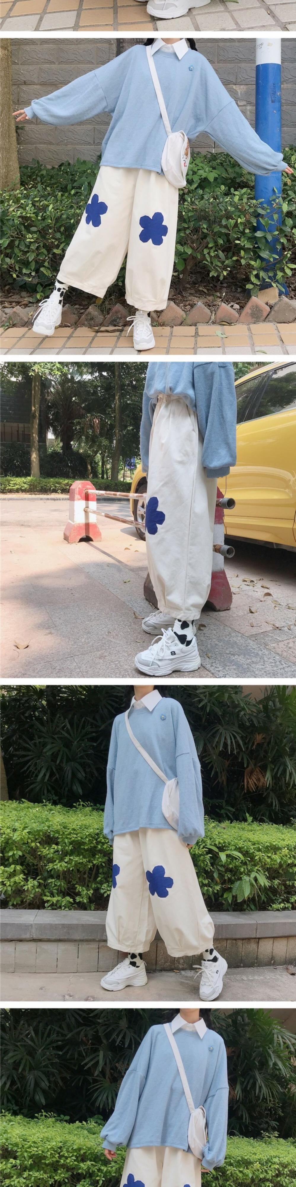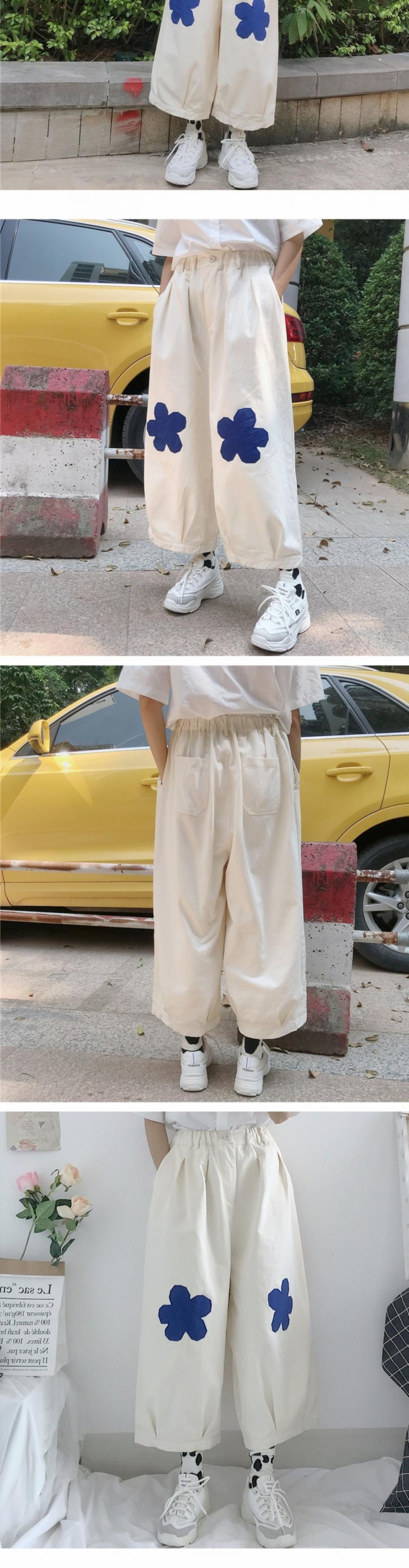 スモールフラワーパンツ秋の服2020新バージョンルーズストレートレッグパンツワイドレッグパンツ学生スリムナインポイントパンツ 萌量不足90113747287