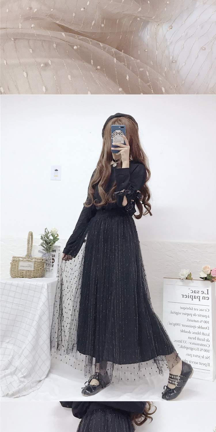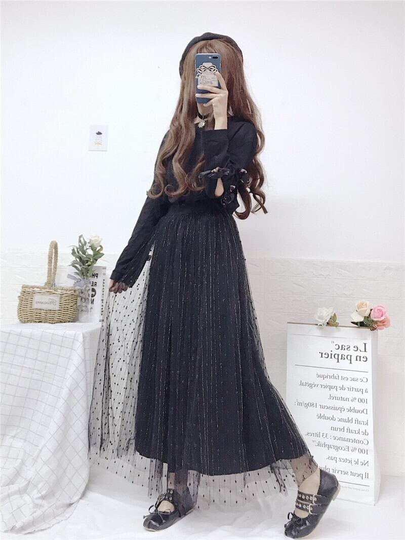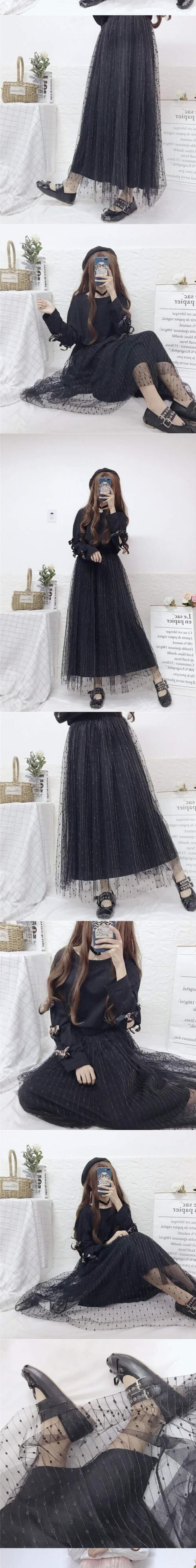 スカート レディースオータムウィンターハイウェストウェストAラインメッシュ 大人ガーリー スウィート キュート カジュアル 秋物 冬物 萌量不足26223501284
