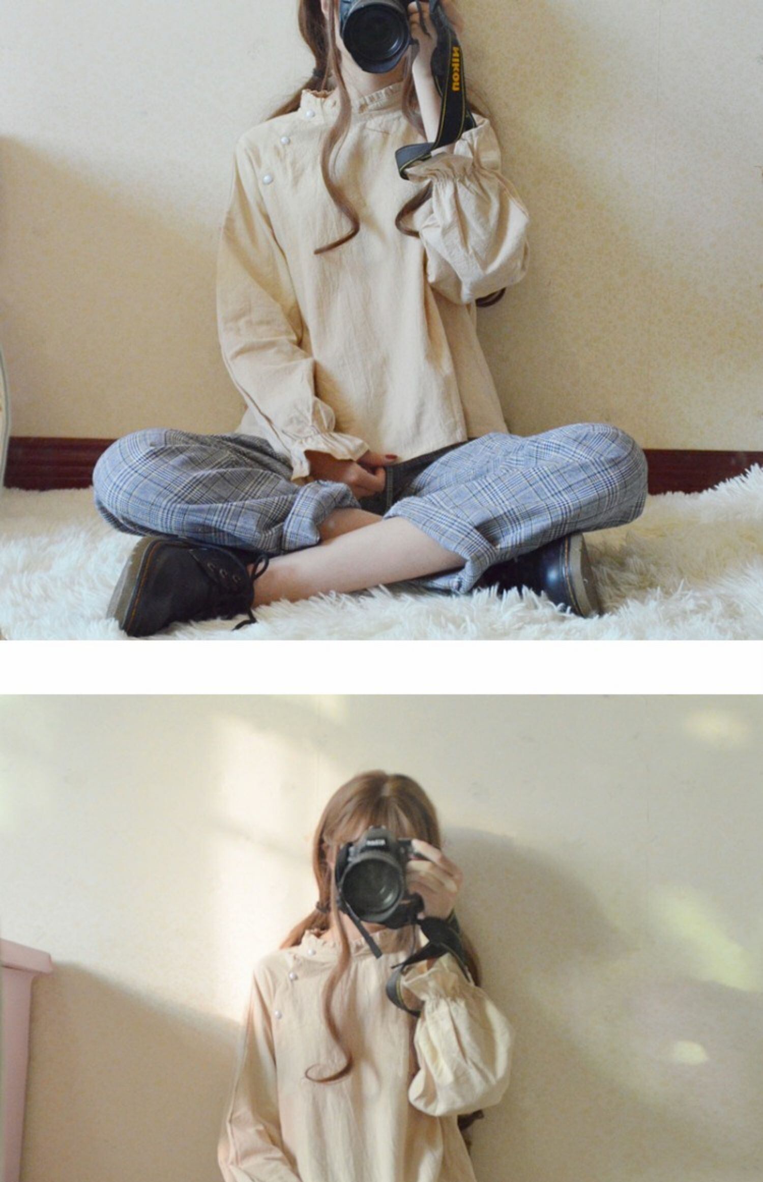 オータムレディーススタンダードスタイルシャツ トップス ロング レトロ 秋物 萌量不足21842652403