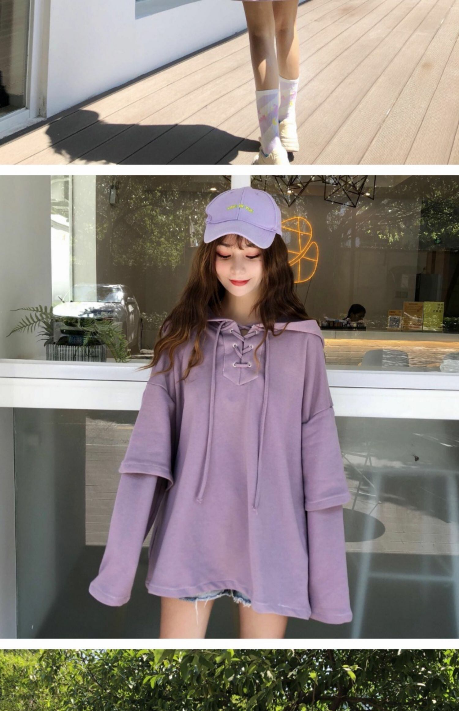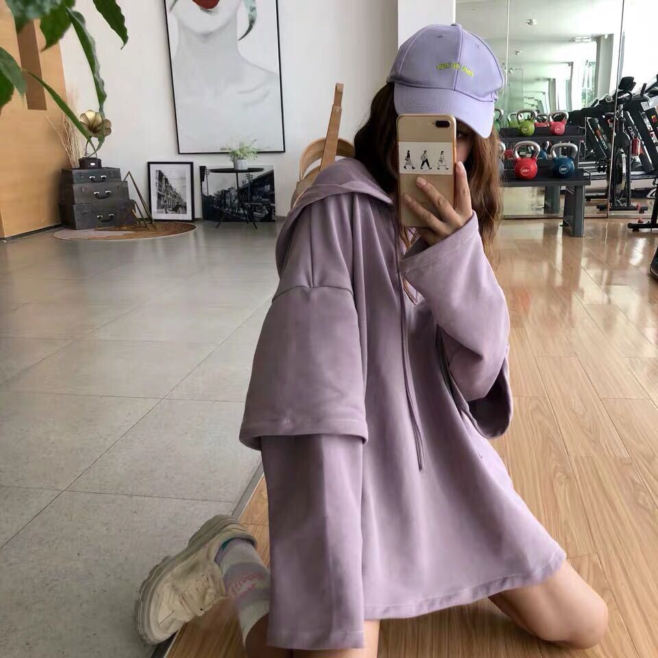 ネットレッドセーターレディース2020年秋冬新バージョンルーズフェイクツーピース長袖フード付きトップレイジーイントレンド 萌量不足18460092565