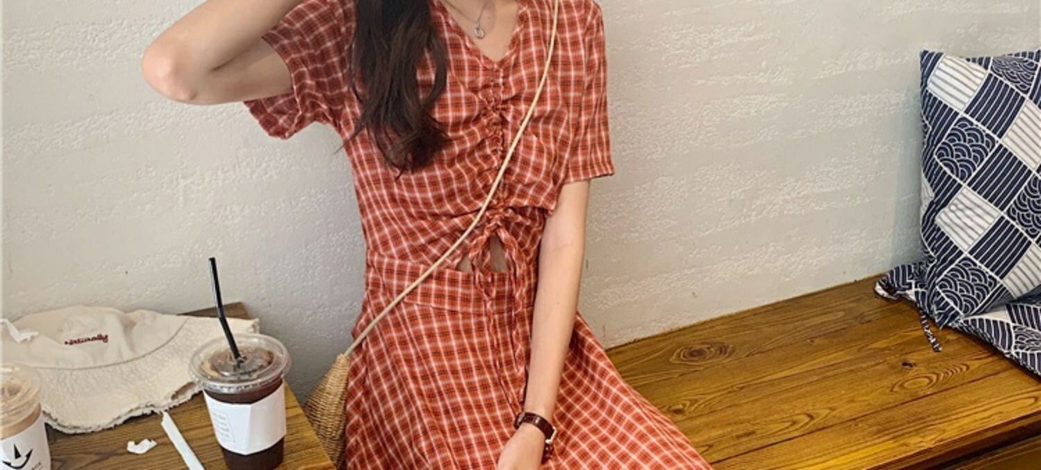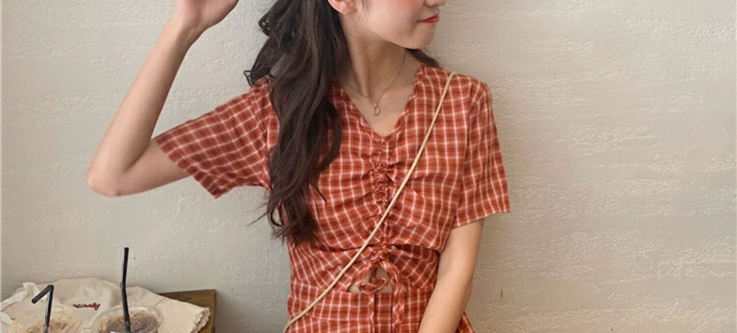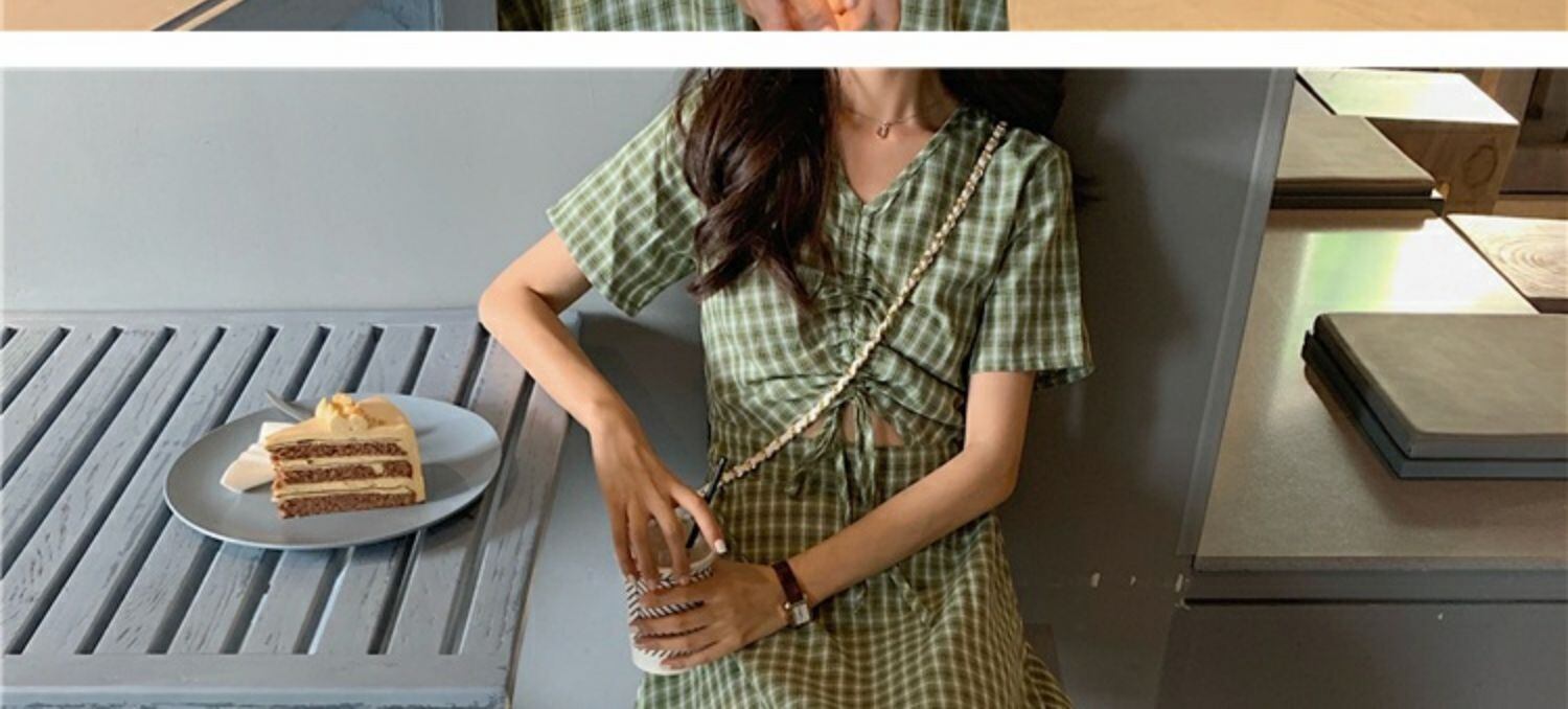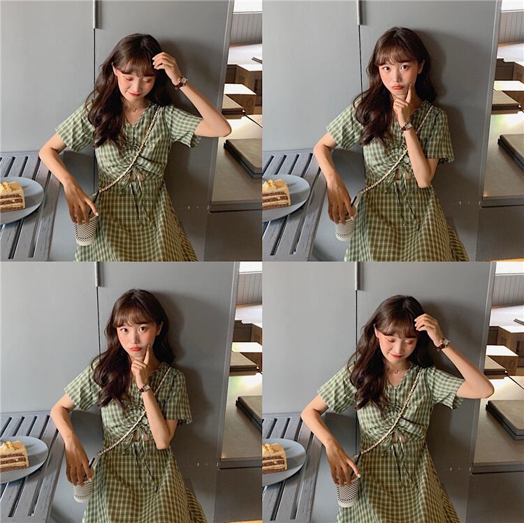 Platycodongrandiflorumスカートは細い蝶結びの巾着レースチェック柄ドレス2019新しい夏のスタイルのミドル丈の女性のスカートのトレンドです 萌量不足95164304620