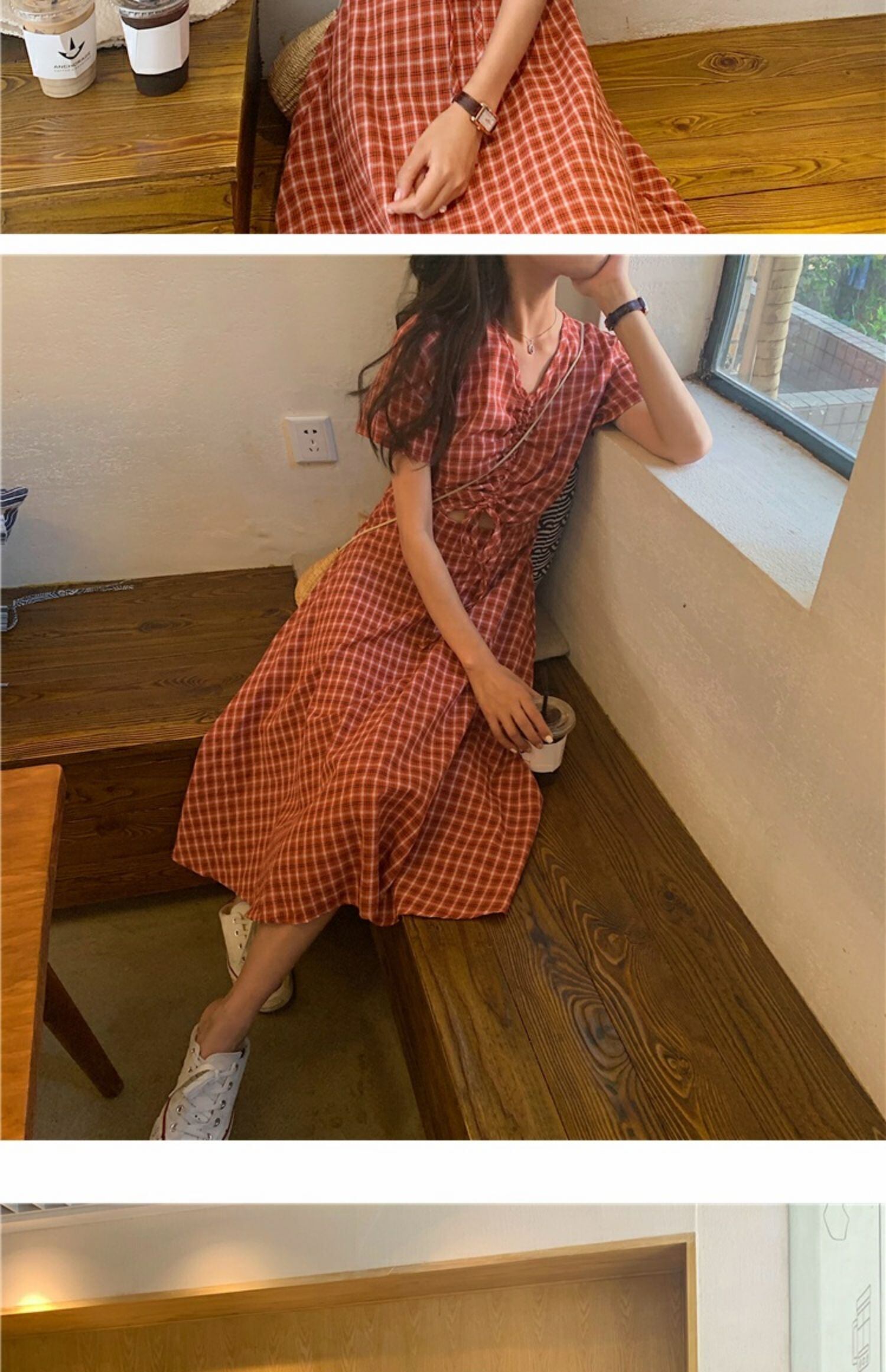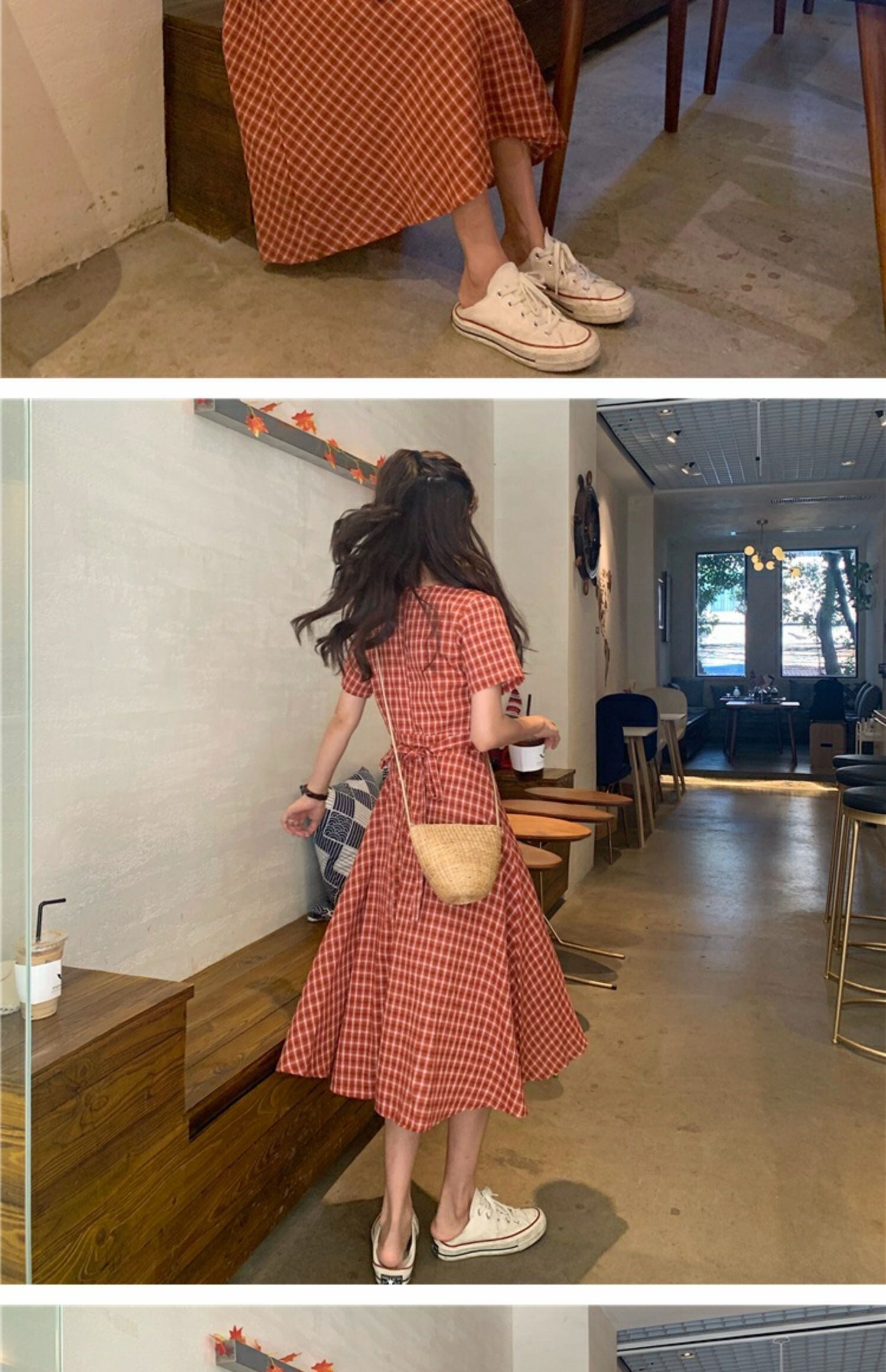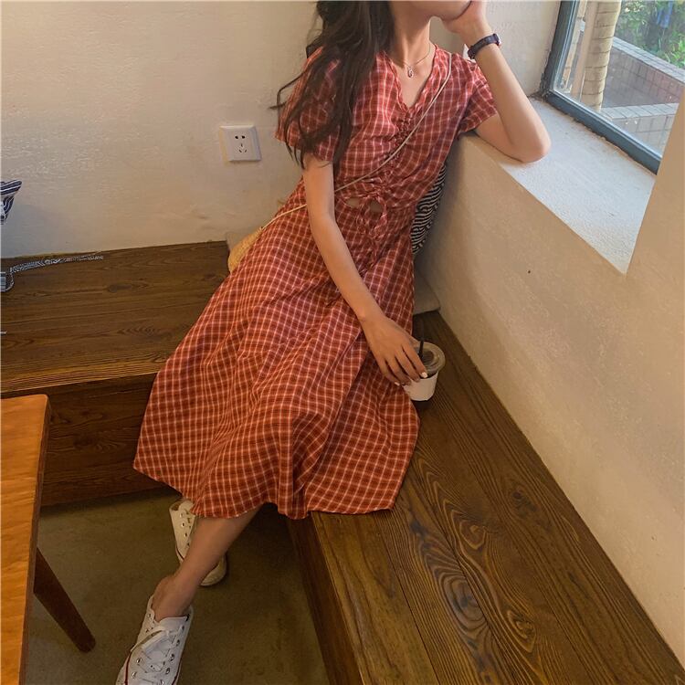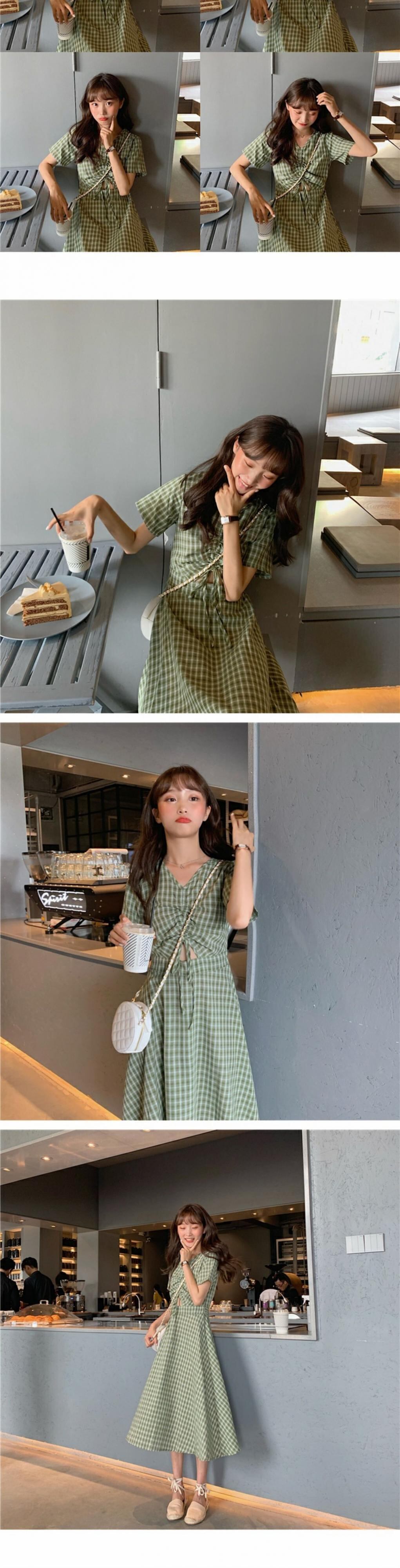 Platycodongrandiflorumスカートは細い蝶結びの巾着レースチェック柄ドレス2019新しい夏のスタイルのミドル丈の女性のスカートのトレンドです 萌量不足95164304620