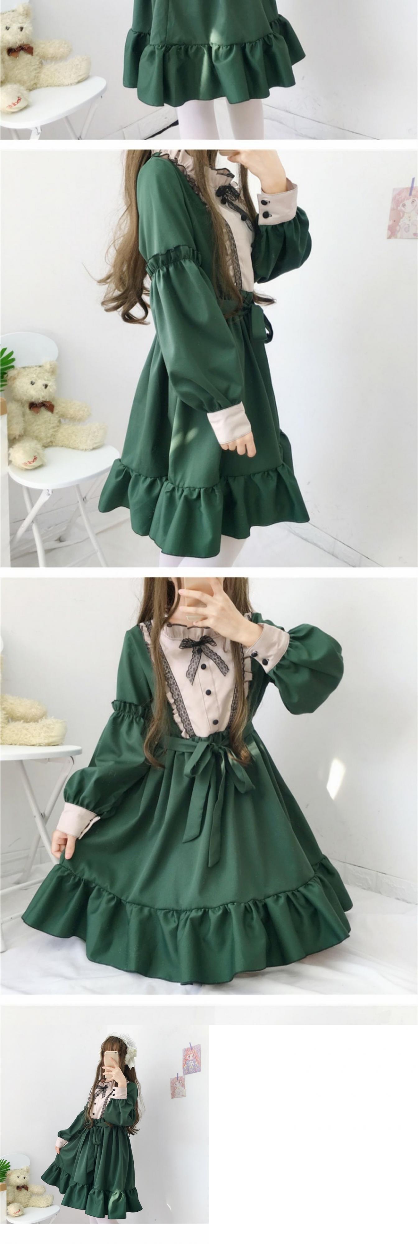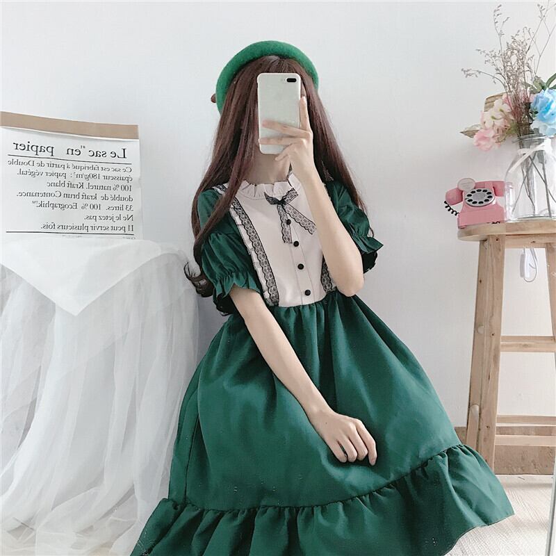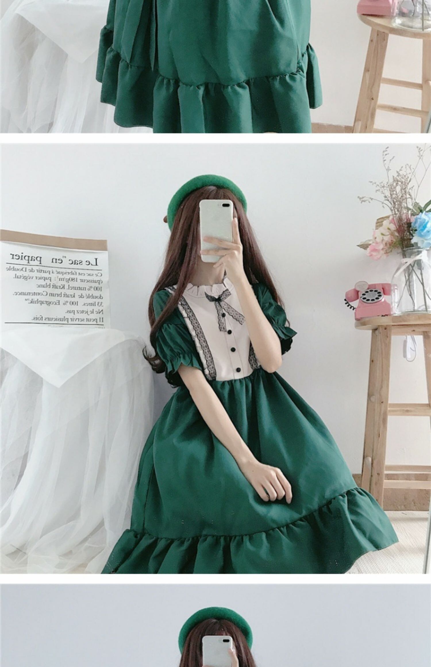スカートの女性2020新しい夏のスタイルのかわいいステッチフリルハイウエストレースアップ小さなミドル丈のドレス 萌量不足61902802557