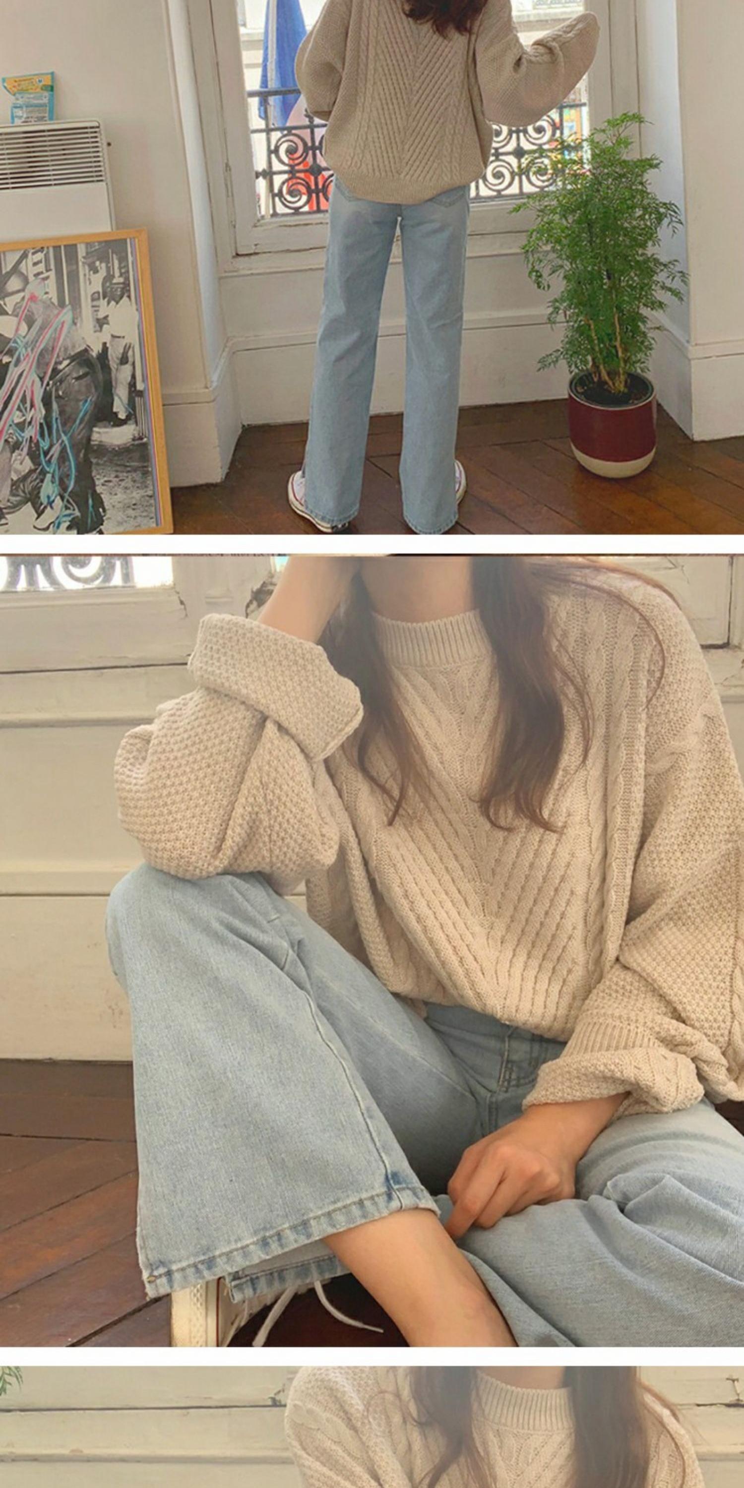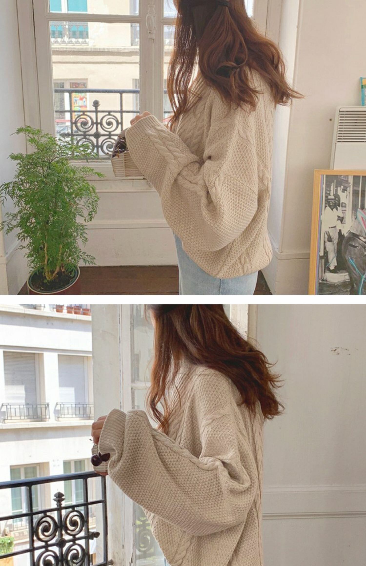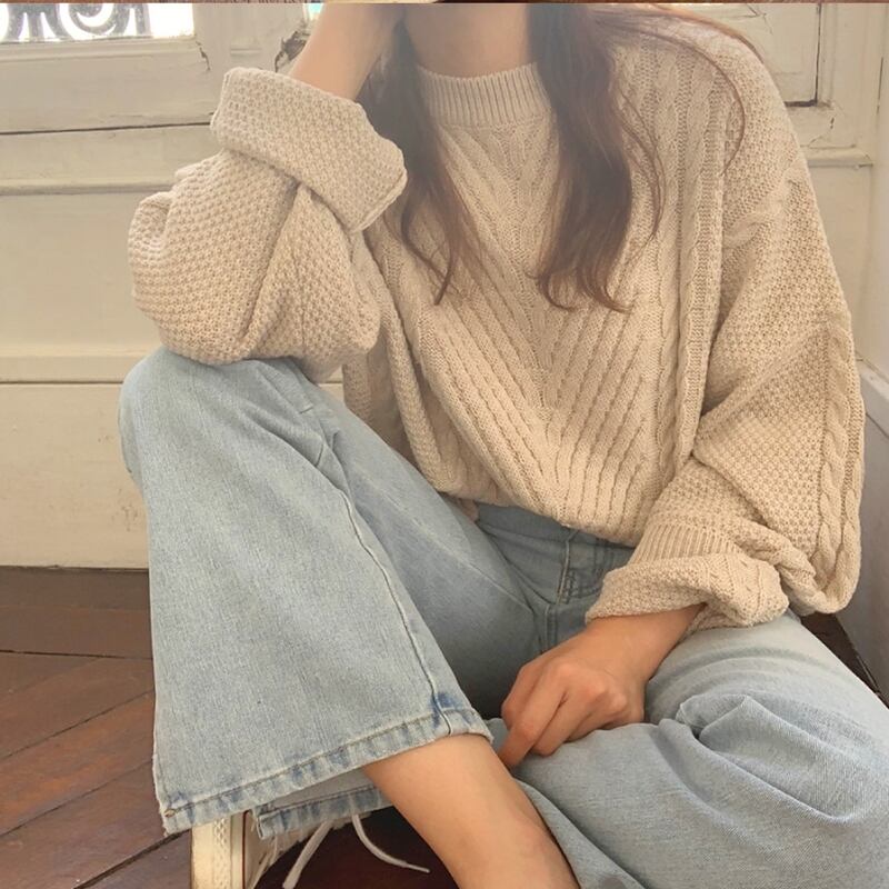 2020年春秋新作太線セーターレディースルーズアウターレトロ秋冬ニットジャケット怠惰な秋 萌量不足6382393036