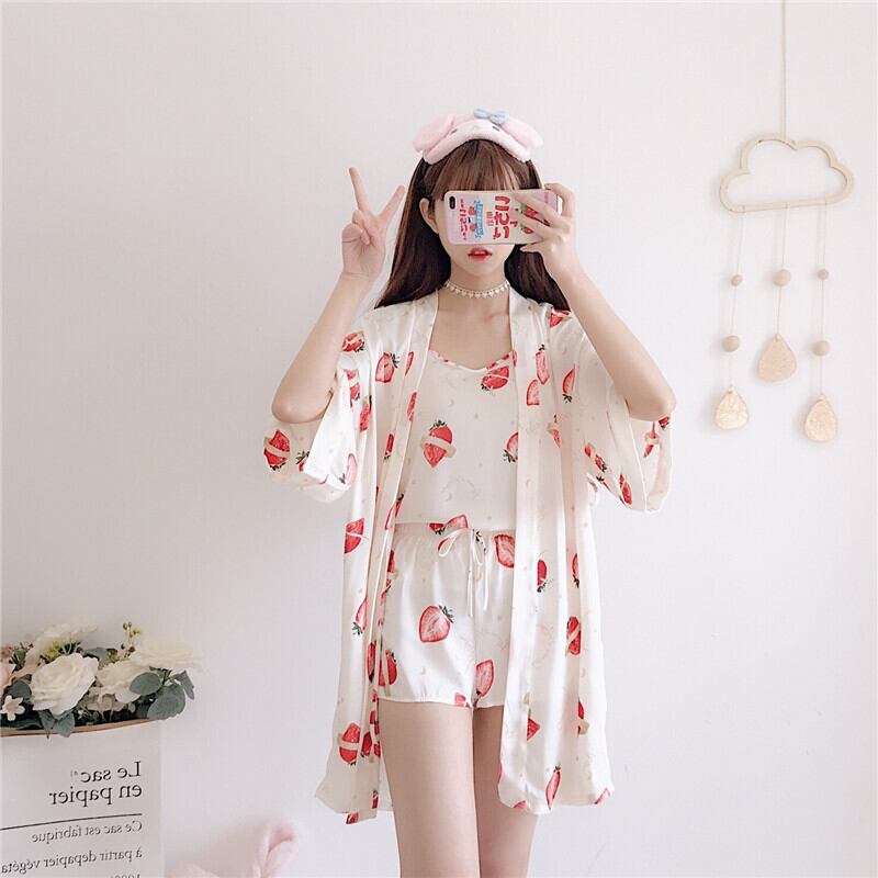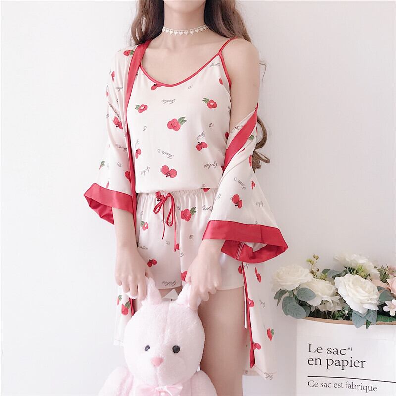 2020年新夏レディースサマーサスペンダーパジャマショーツネットレッドネグリジェスリーピースホームサービスキュートキュート薄薄 萌量不足77455332168
