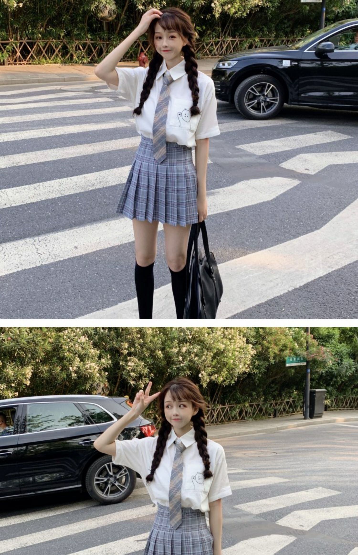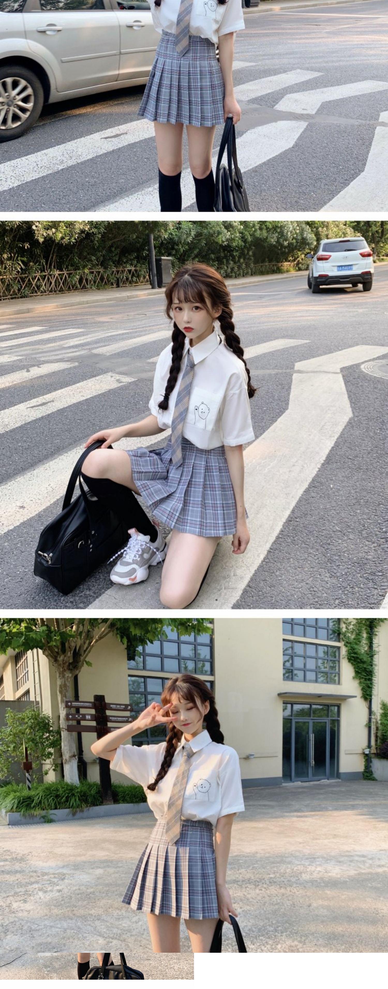 色:シングルシャツ(ネクタイなし),シャツ+ネクタイ,プリーツスカート