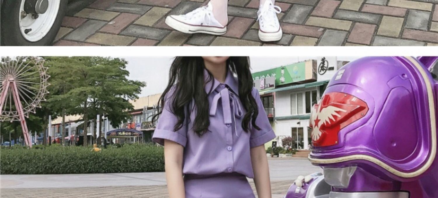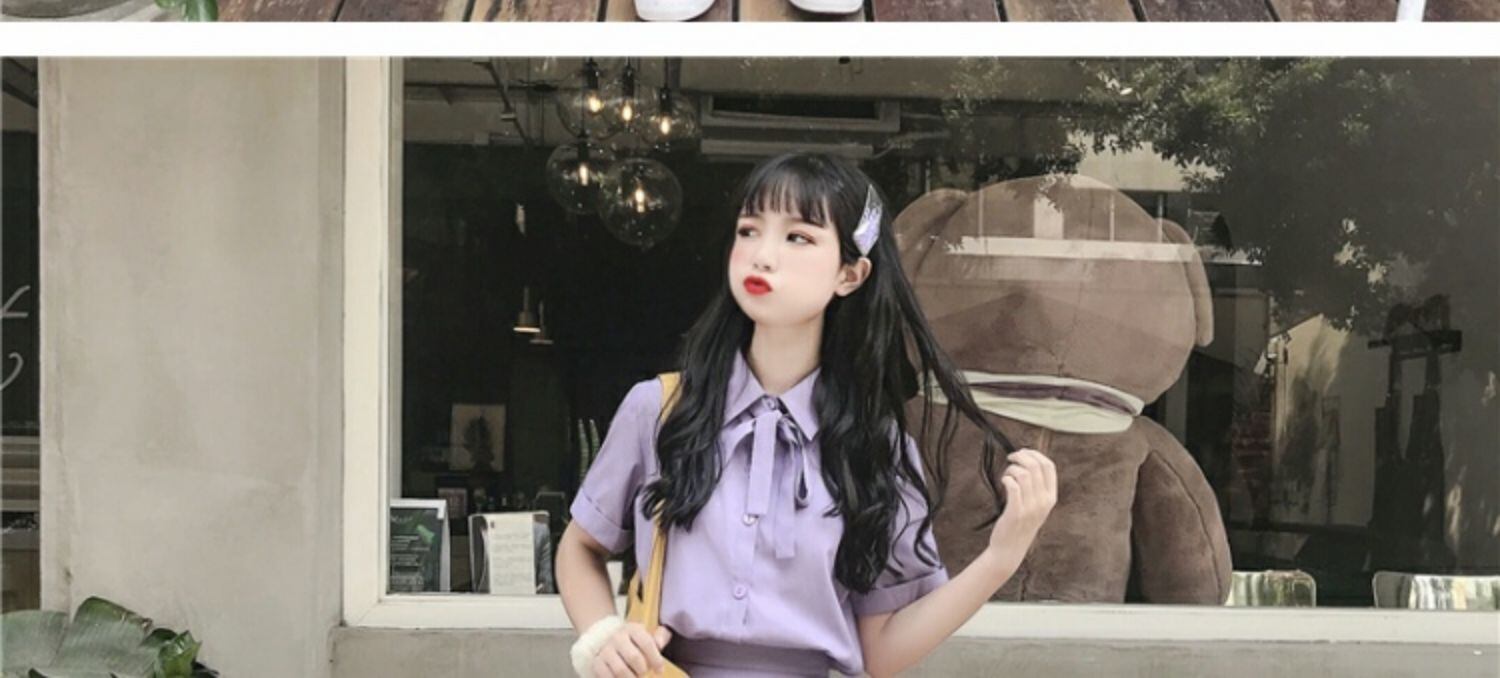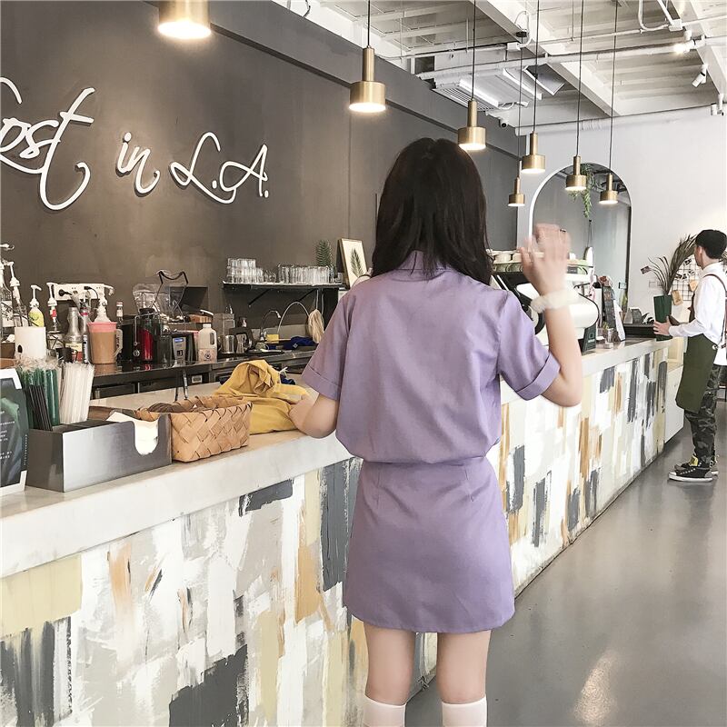 サマースーツ女性2019新しいese小さな新鮮な半袖シャツ+ Aラインスカートツーピースタイドタイ 萌量不足48946814398