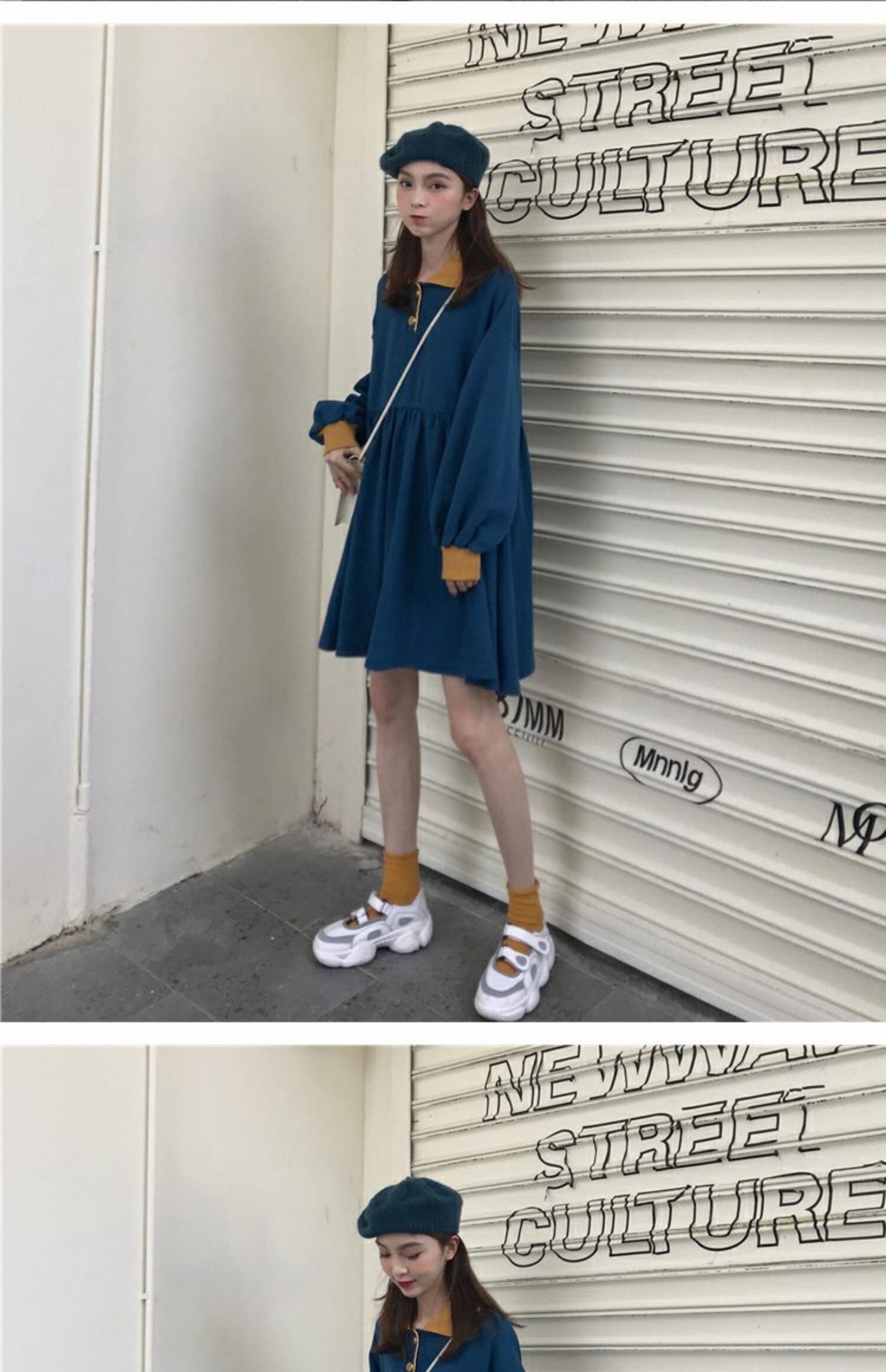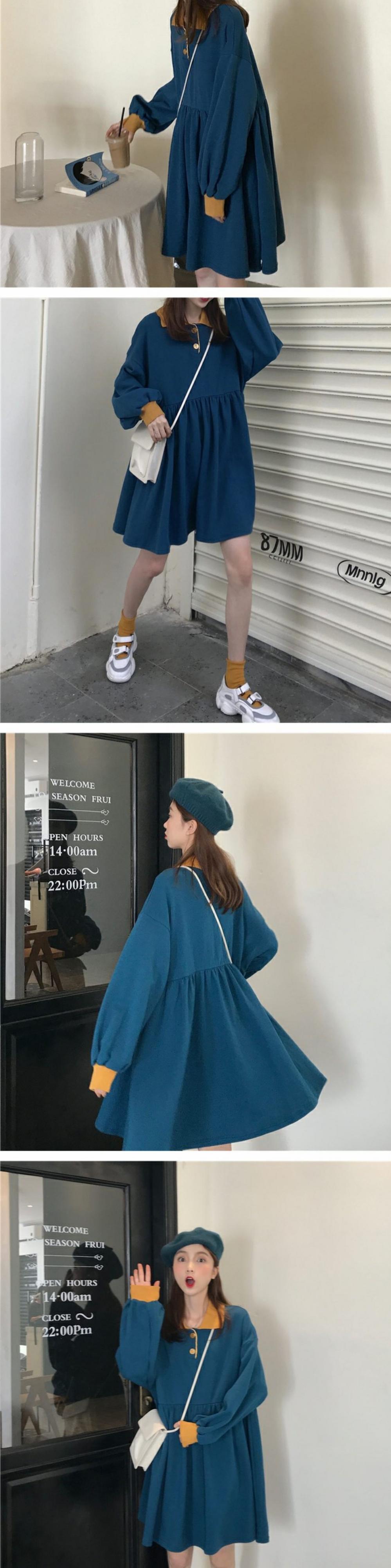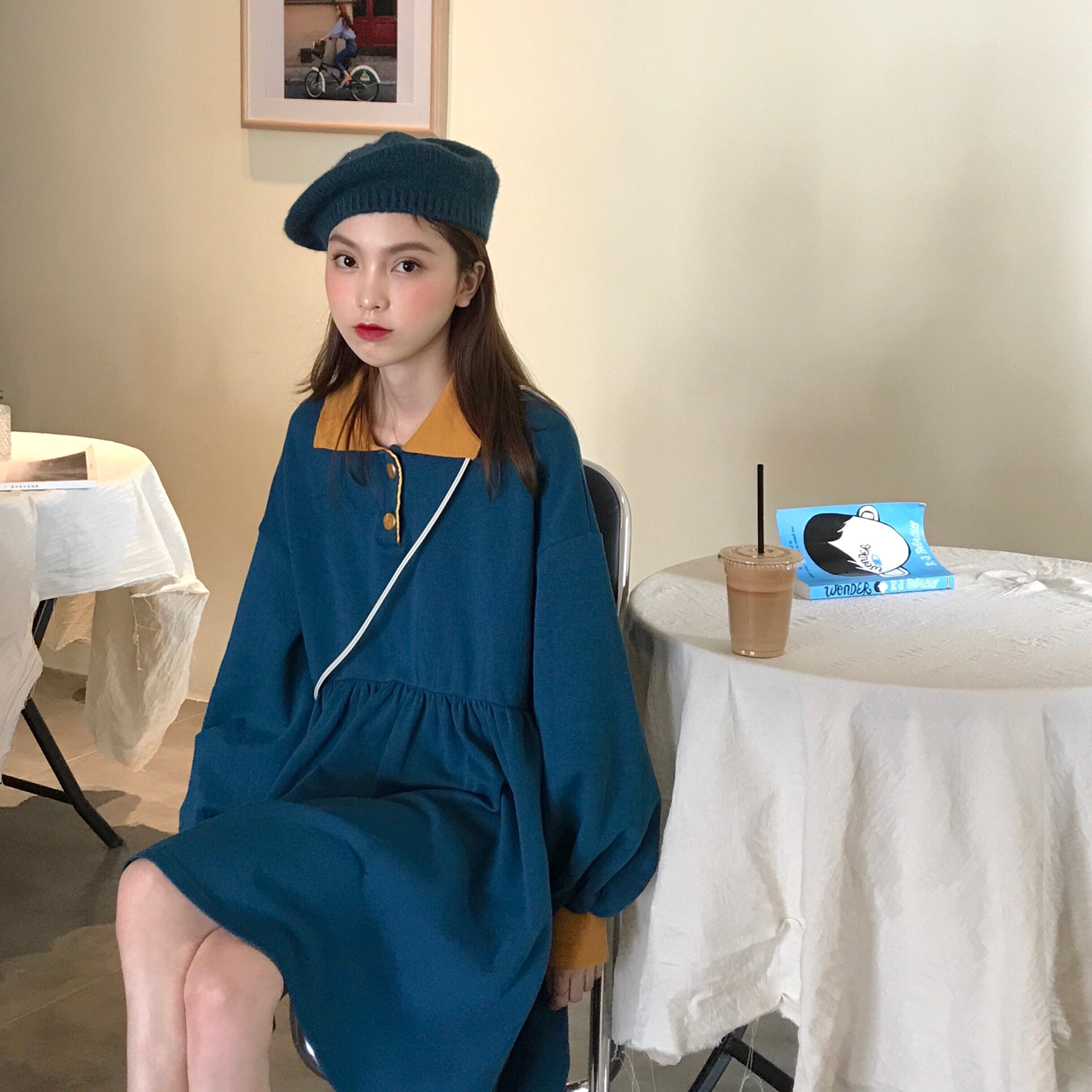 2020年春秋ウィメンズスタイルルーズスタイルポロカラーワイルドロングスリーブウエストスカート 萌量不足70637449856