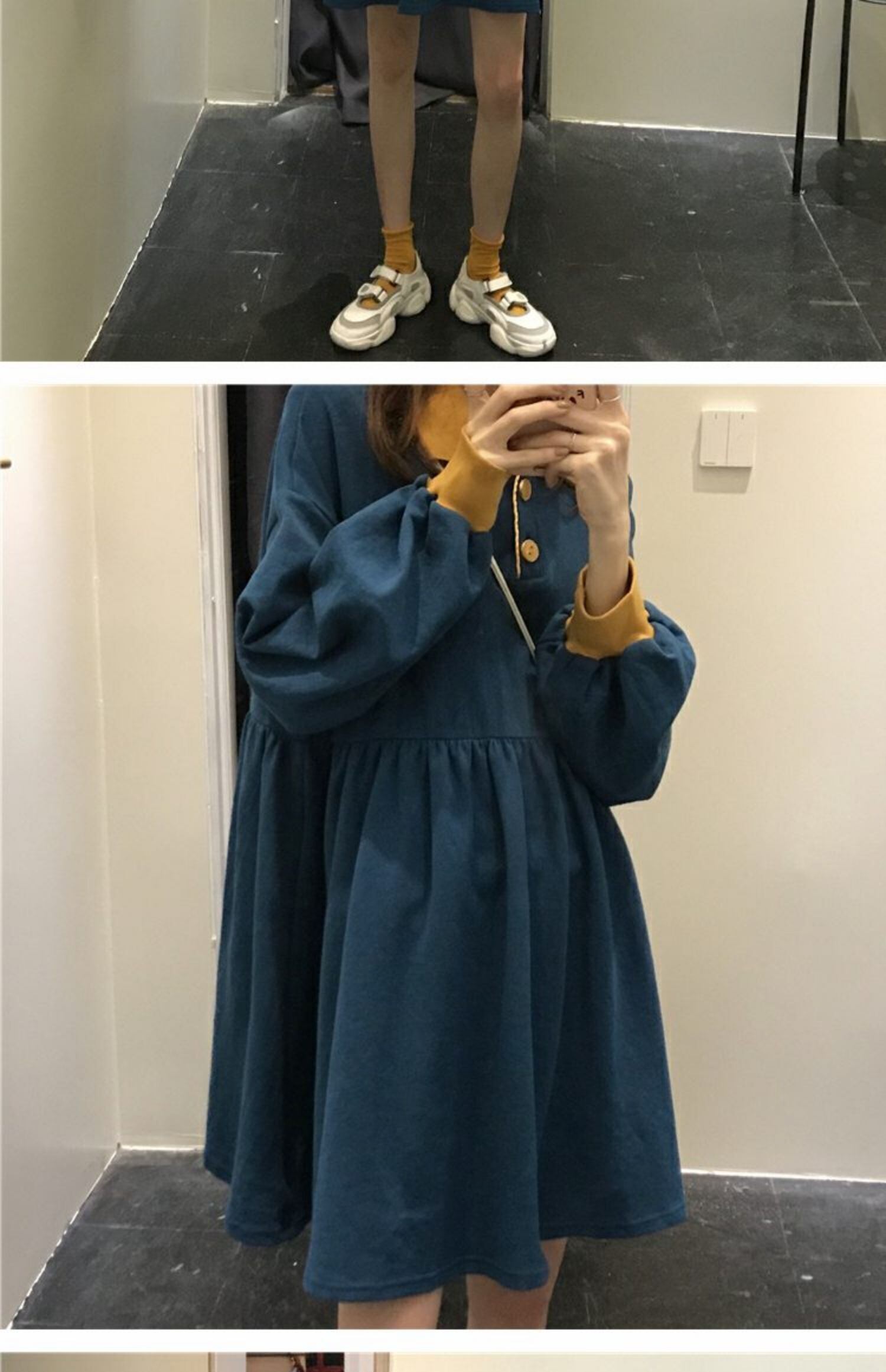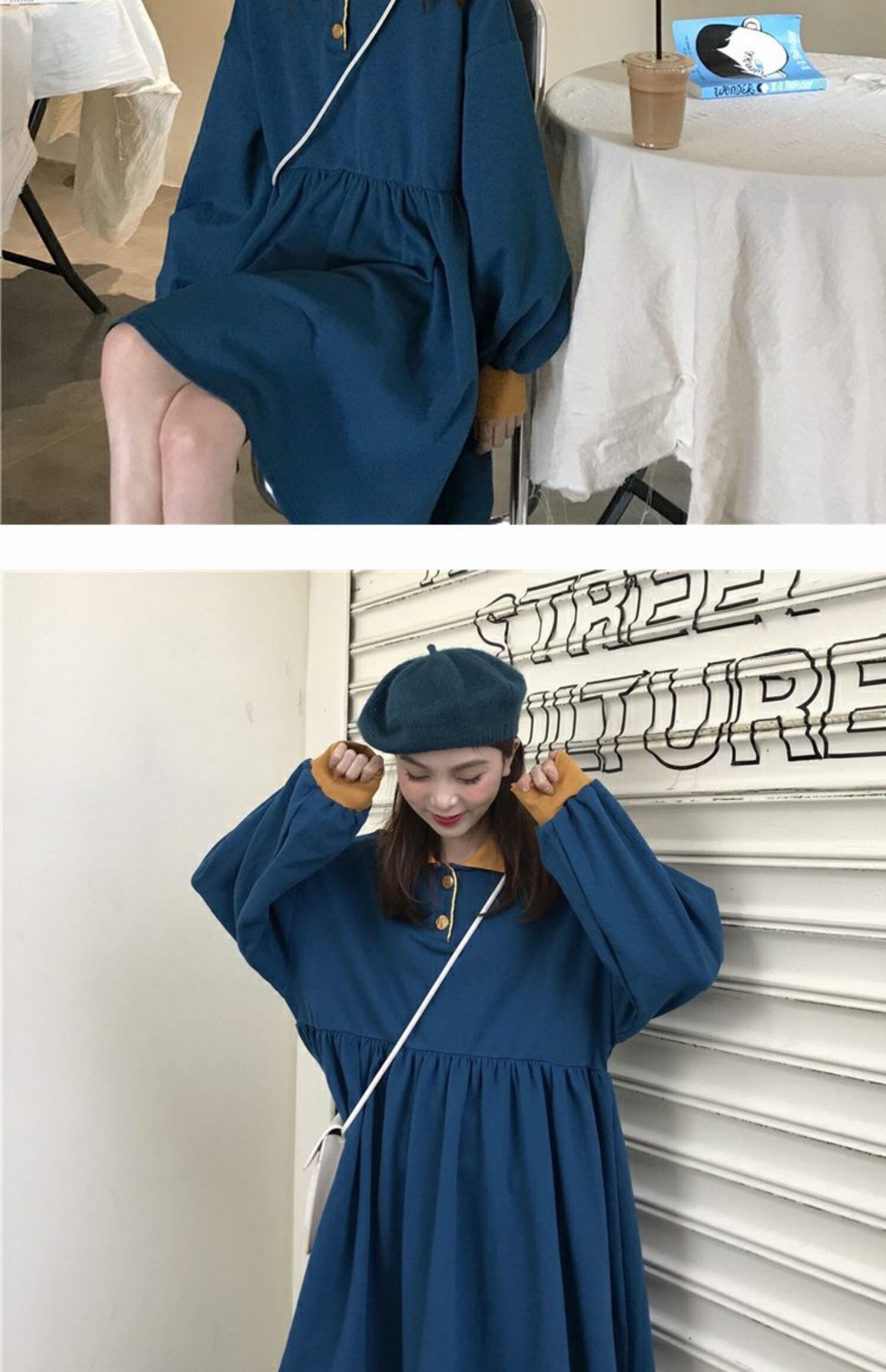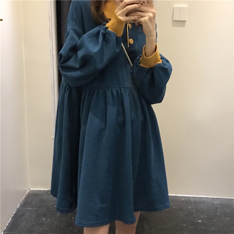 2020年春秋ウィメンズスタイルルーズスタイルポロカラーワイルドロングスリーブウエストスカート 萌量不足70637449856