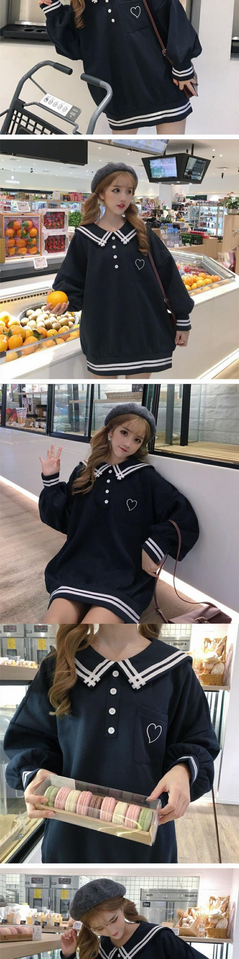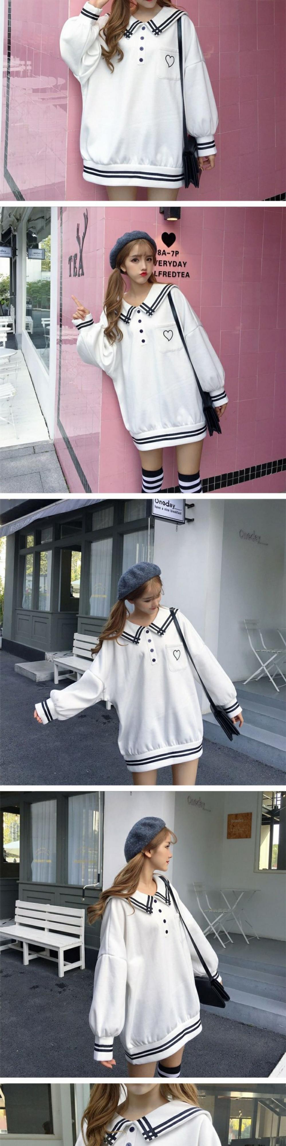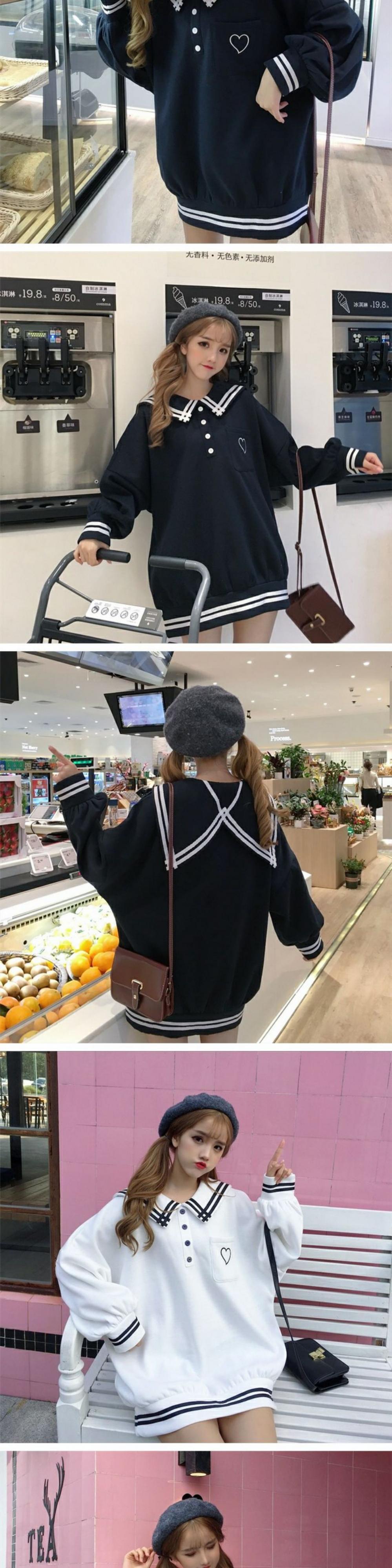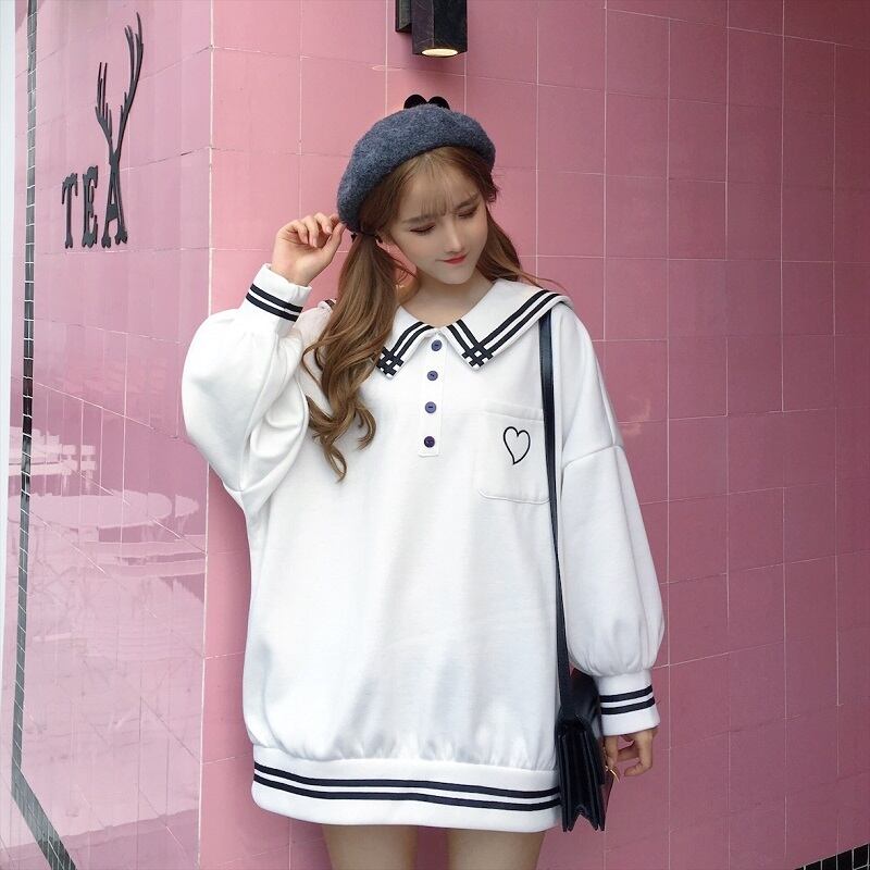 ネイビーカラールーズセーターレディース秋冬ロングセクションフードなしオールマッチレイジースタイル長袖トップタイドイン 萌量不足96921185811