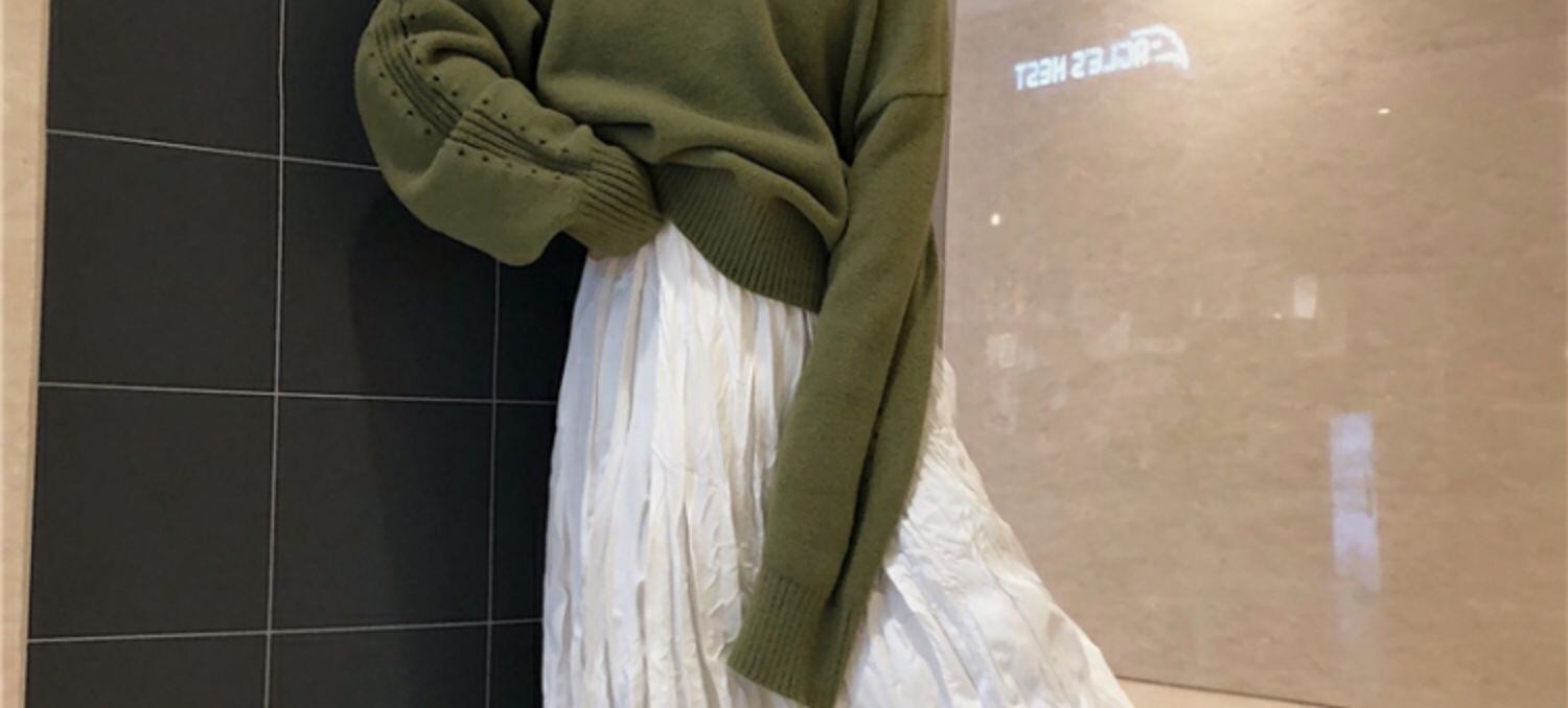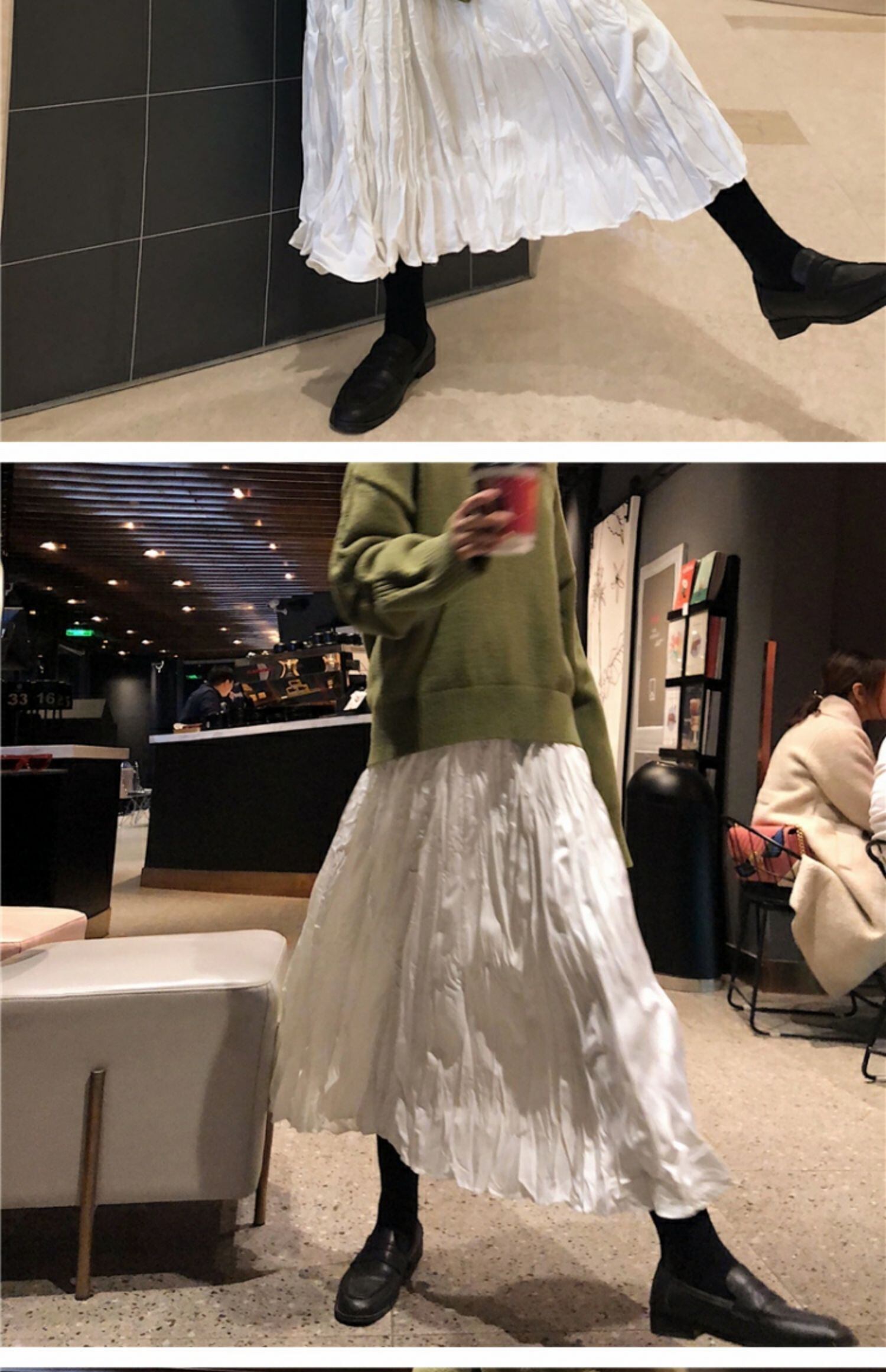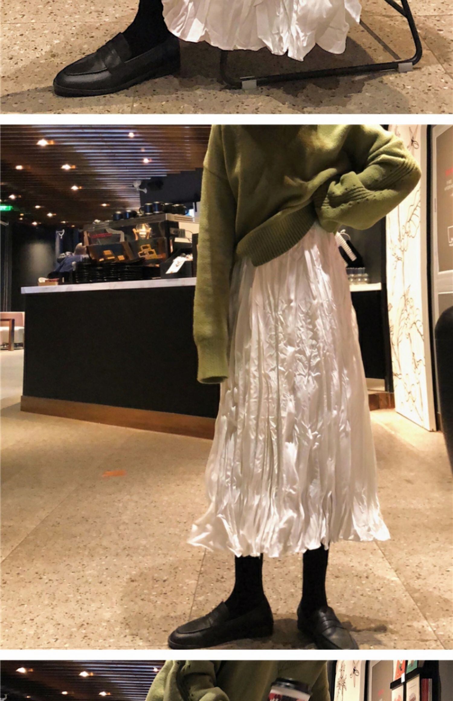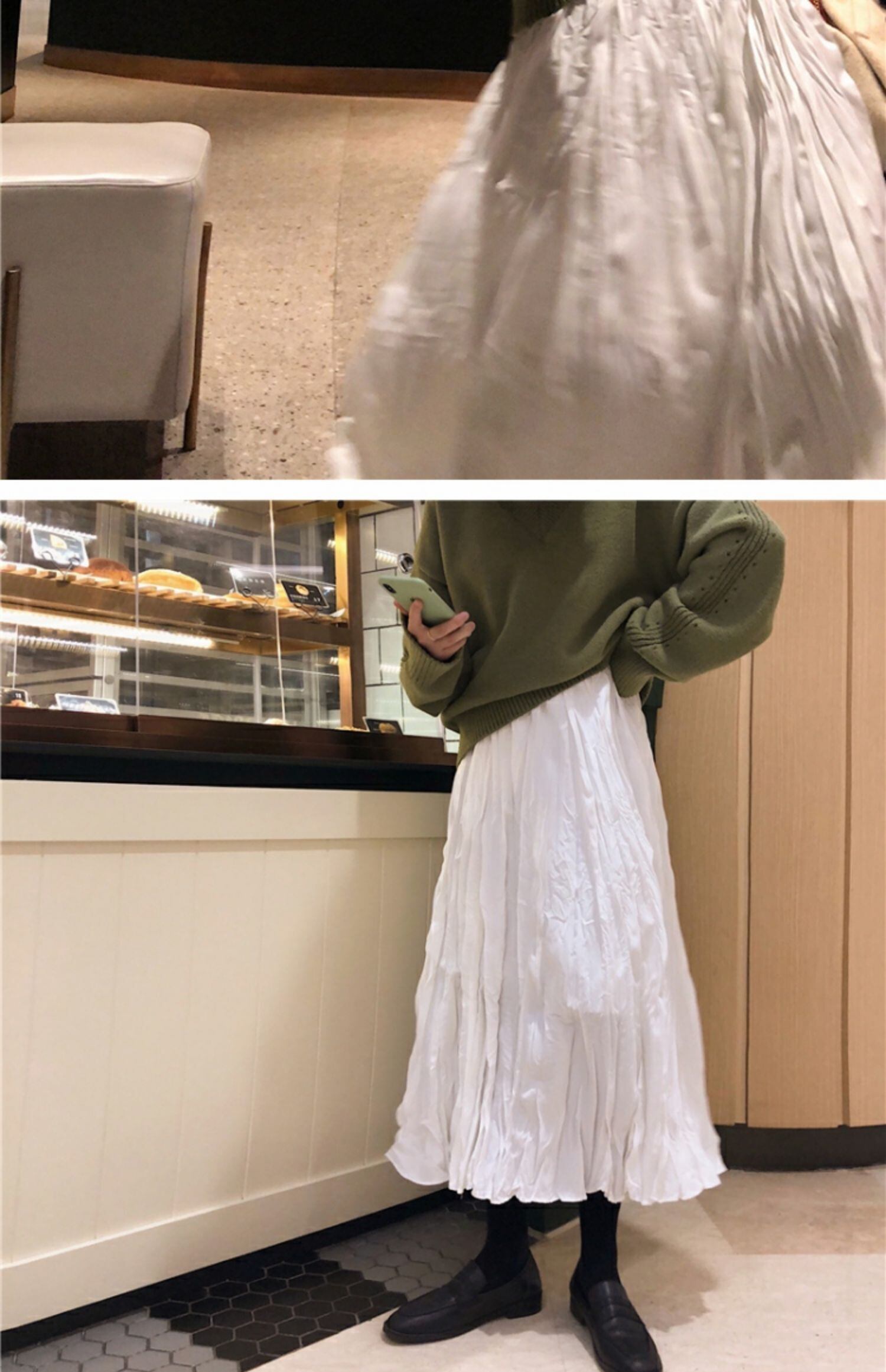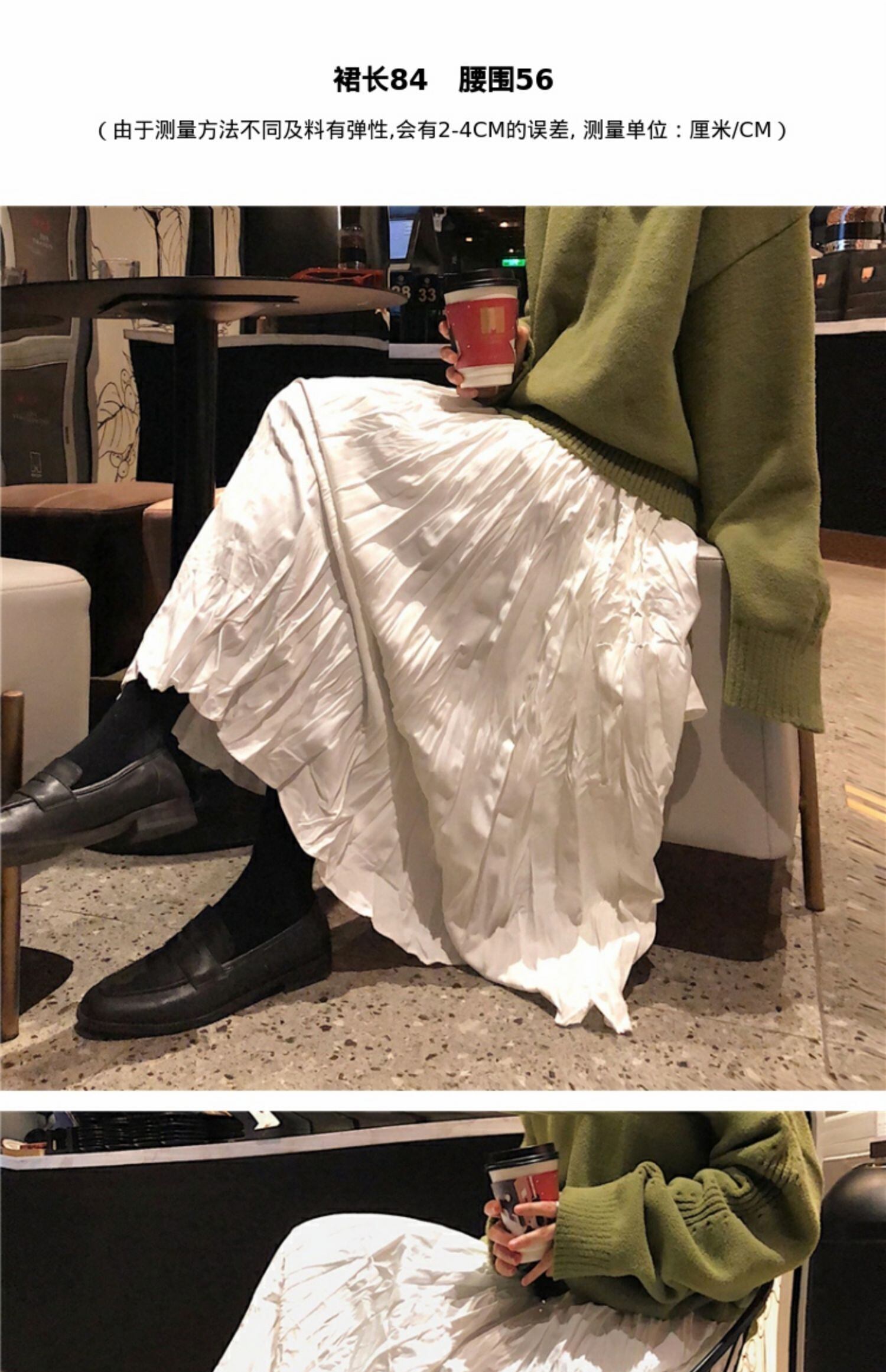 2020年新作オールマッチハイウエストイレギュラープリーツロングスカートスカート秋冬レディース伸縮性ウエストスチューデントスカートトレンド 萌量不足34021725375
