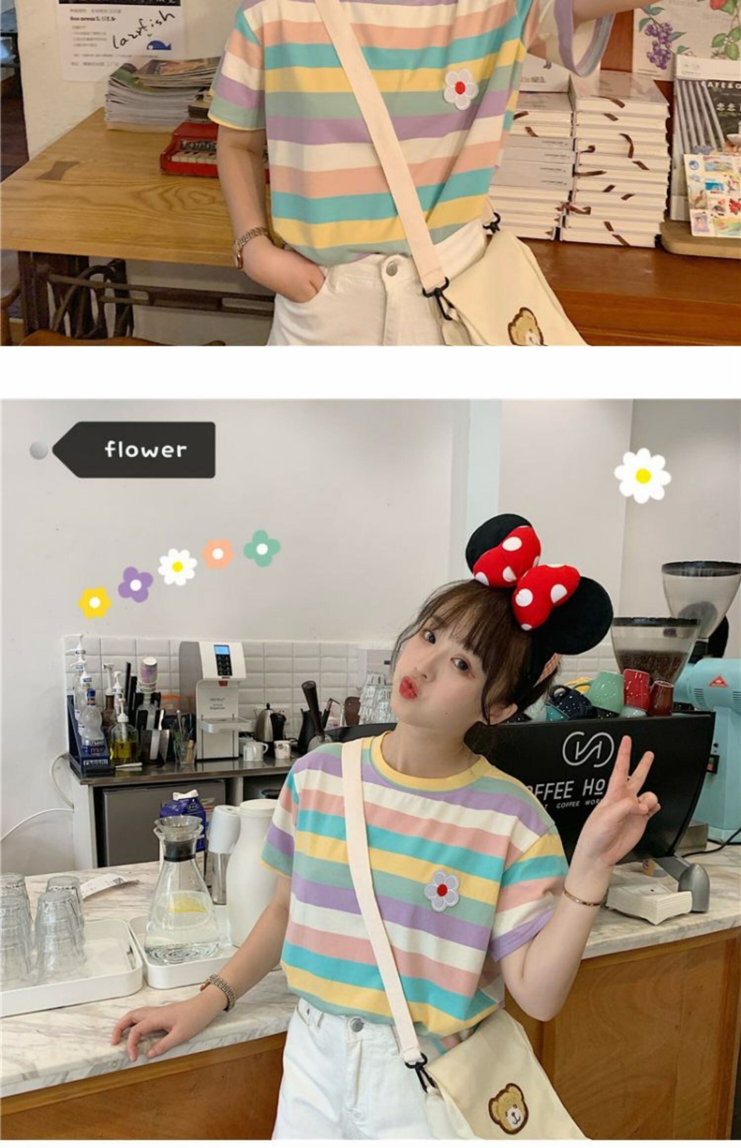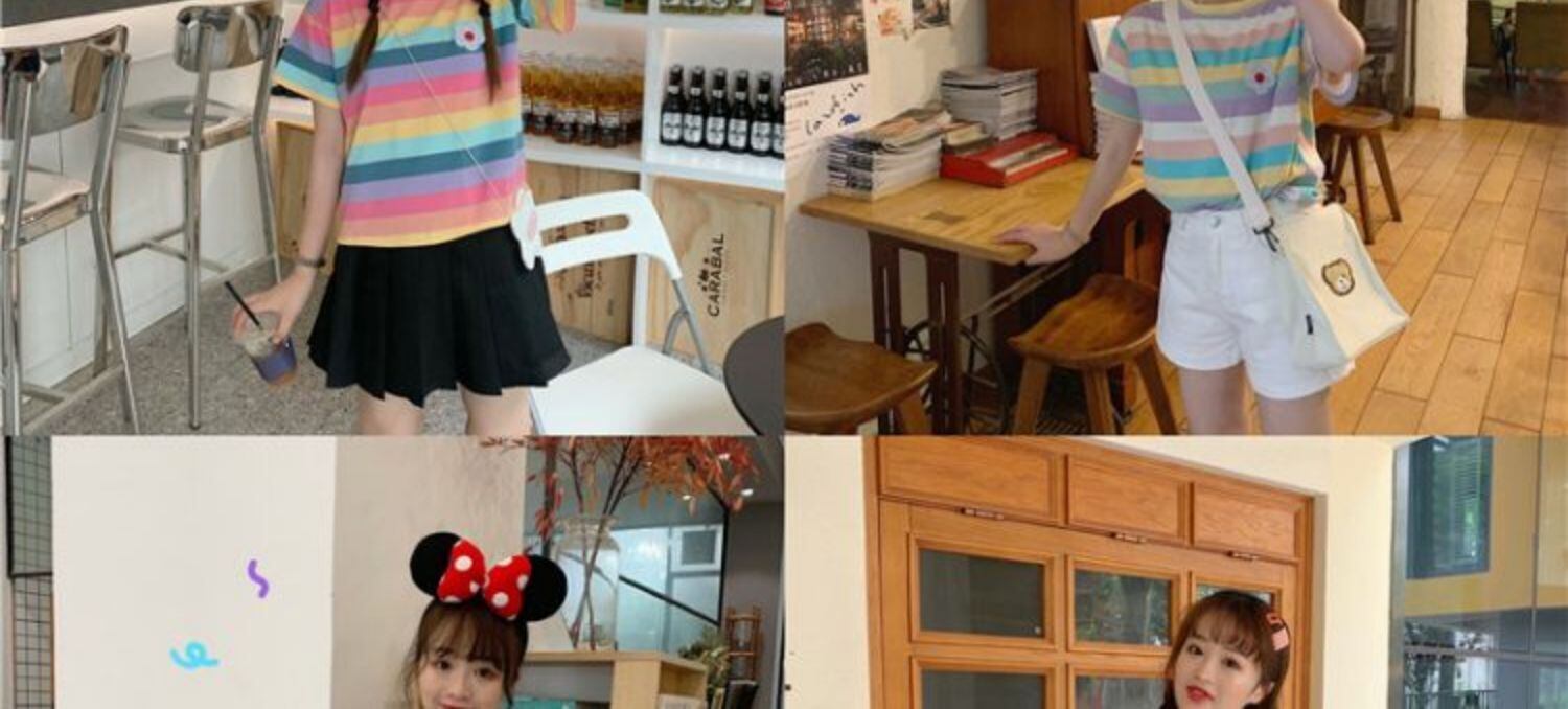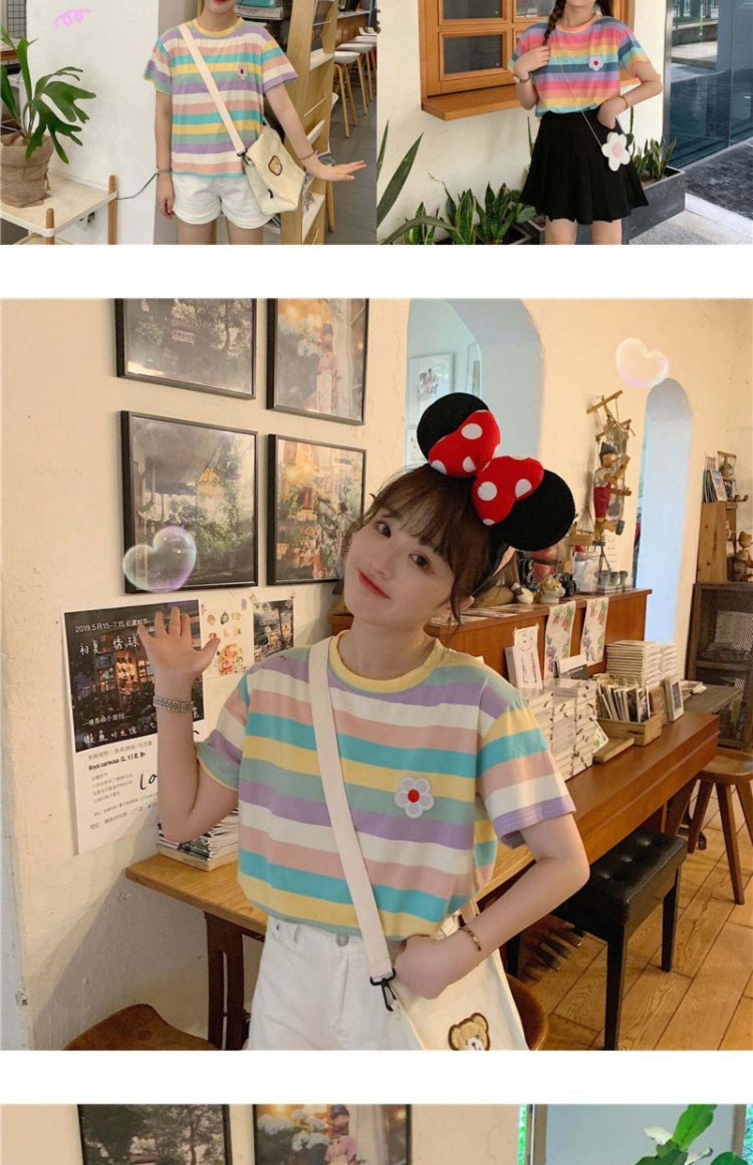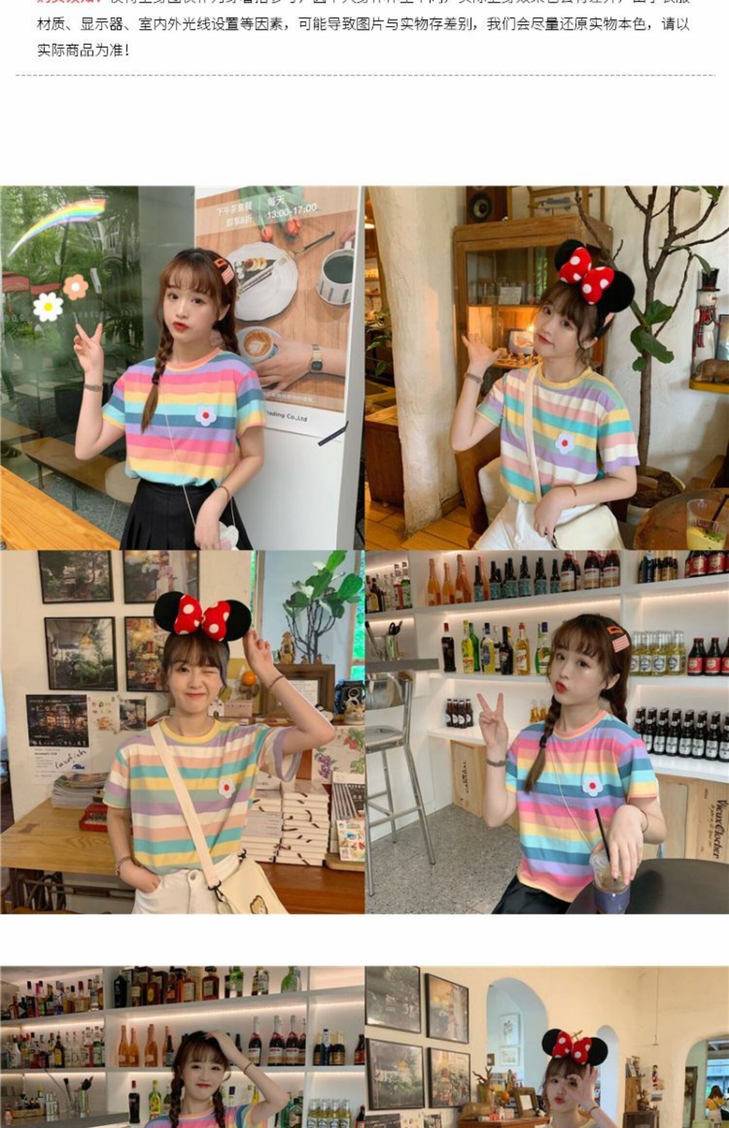 夏のヒョナスタイルのレインボーストライプスウィートワイルドスチューデントスモールフレッシュトップTシャツ半袖女性2020新トレンド 萌量不足30044078820