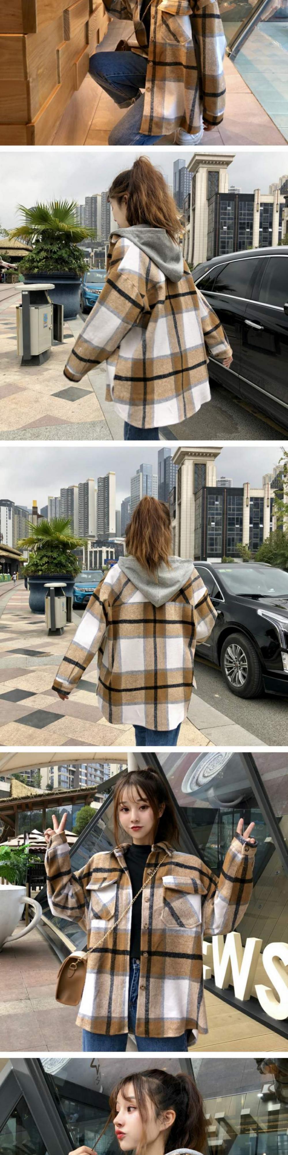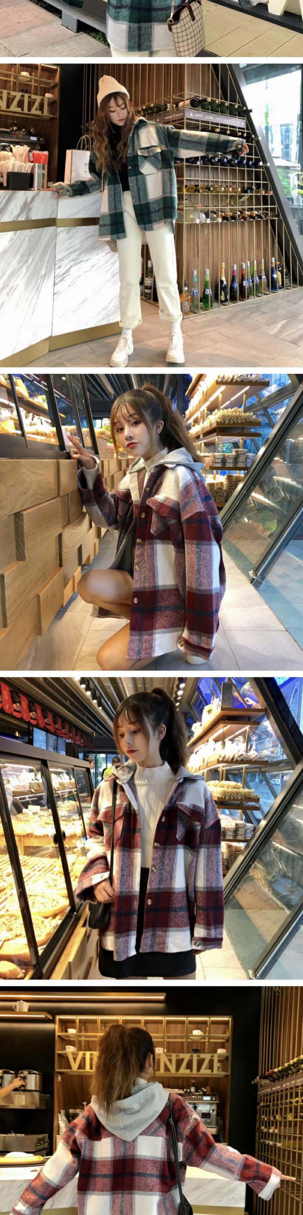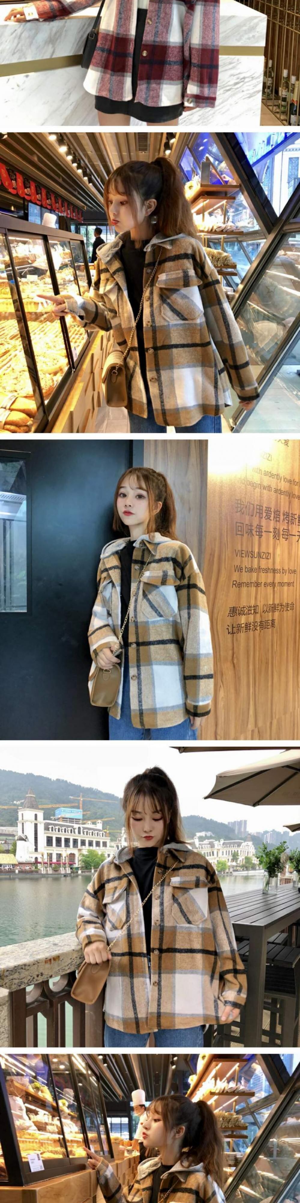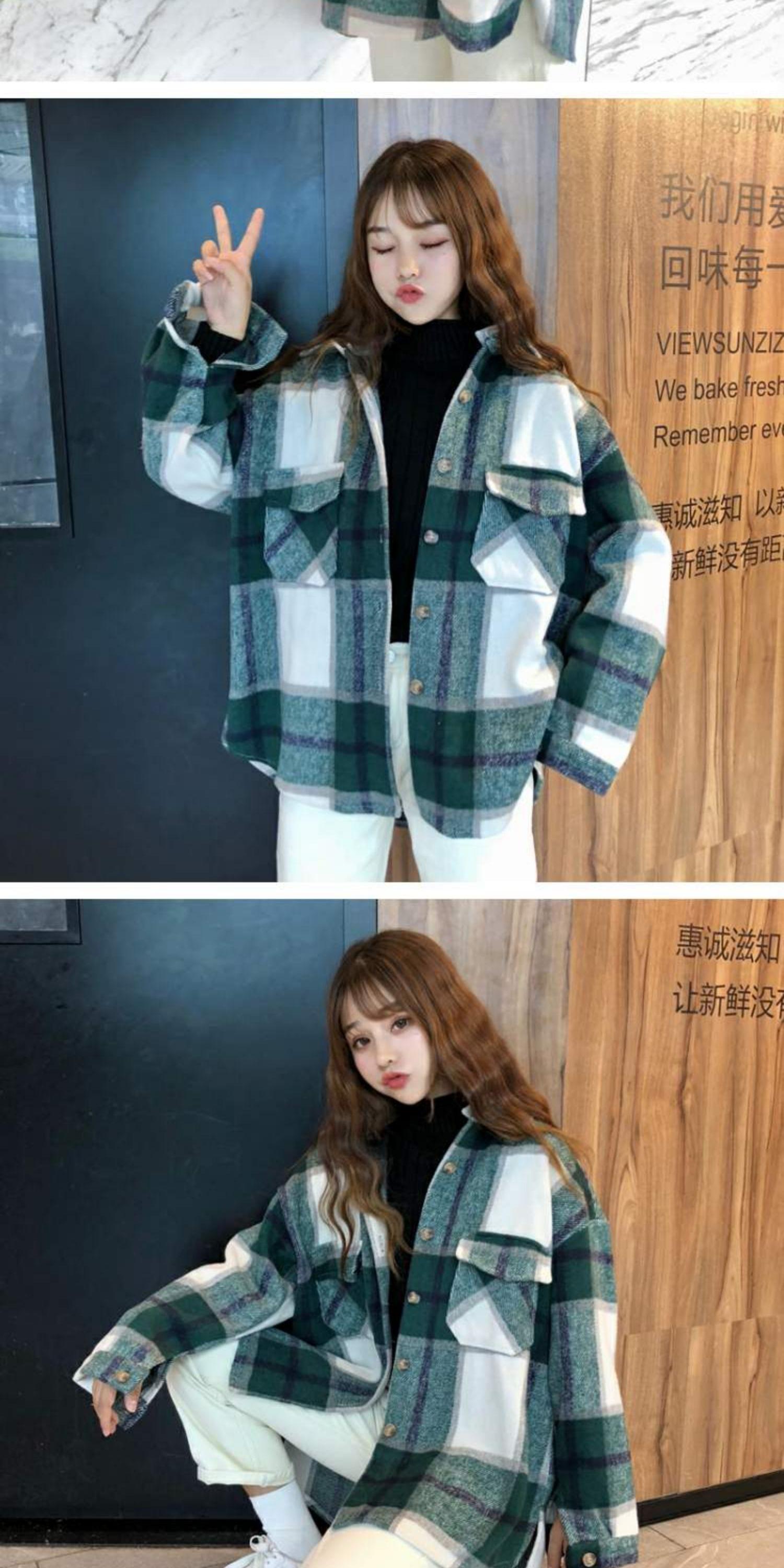 2020年新作秋冬ジャケットレディース秋ステッチレディースチェック柄学生ルーズスタイルトップスインタイド春秋 萌量不足91520662893