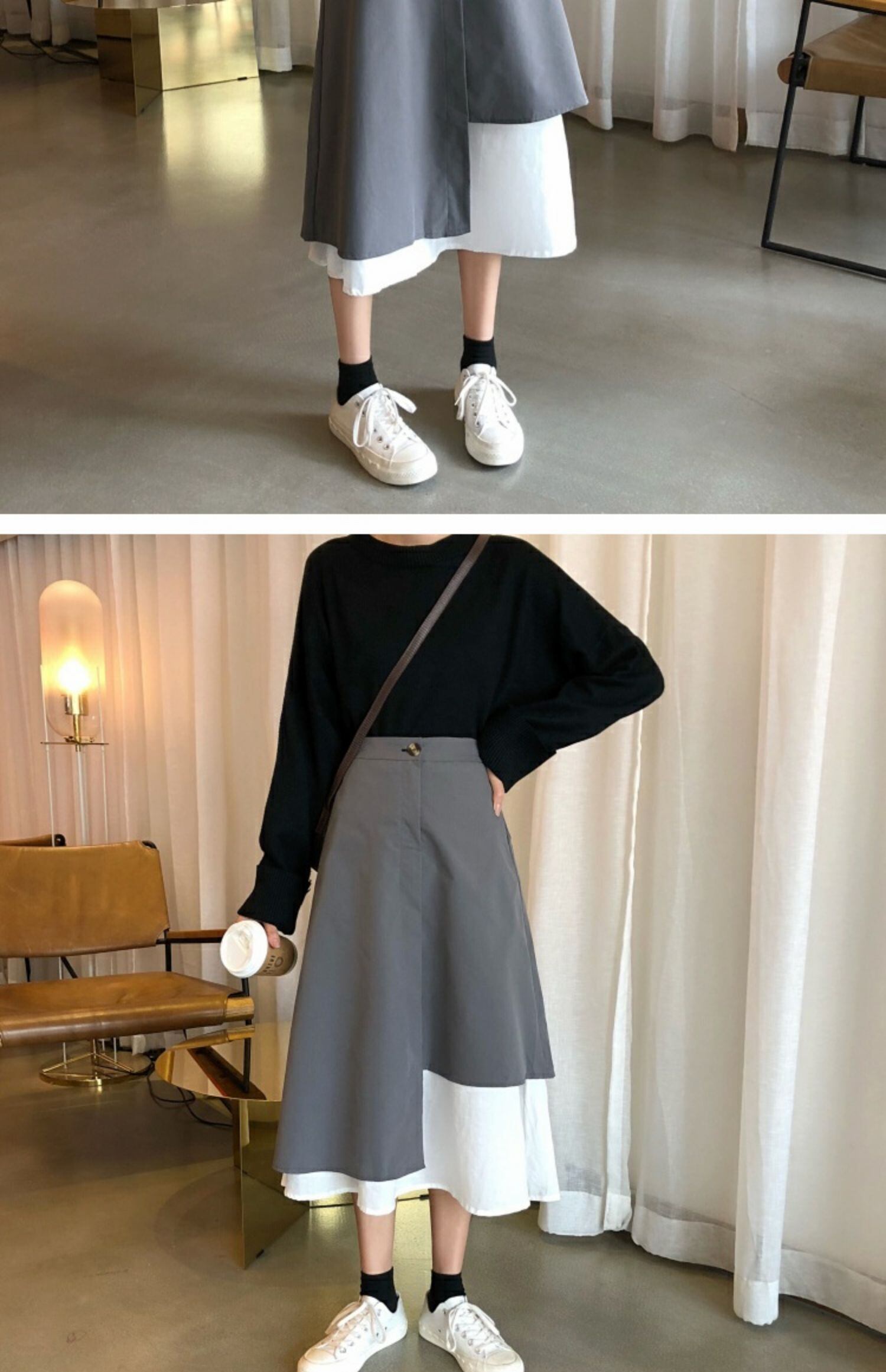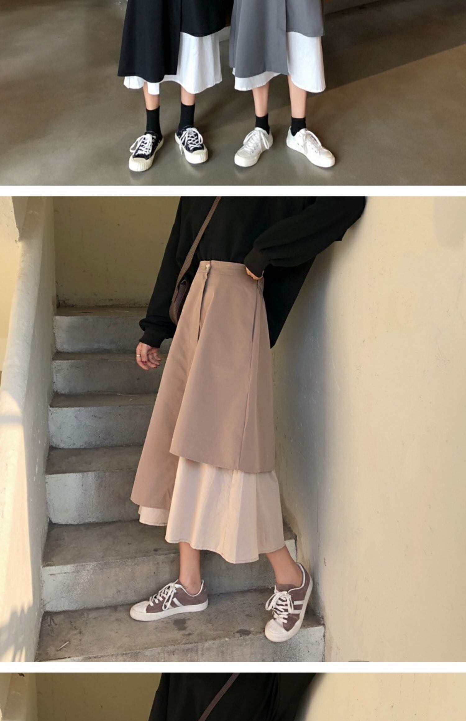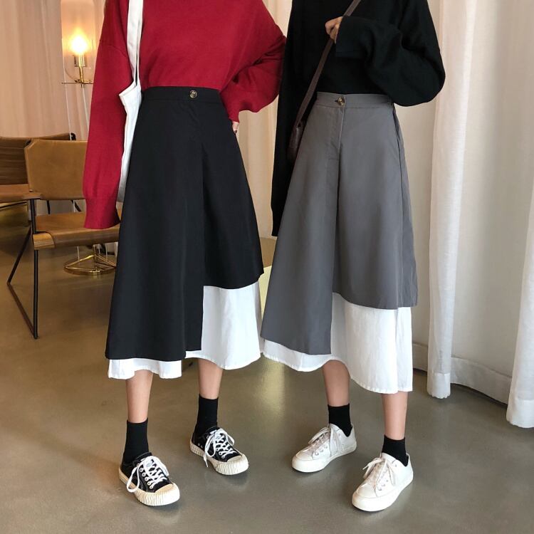 春と秋の気質スカート女性2020新しい非対称デザインセンスハイウエストと薄いミドル丈Aラインスカートイン 萌量不足68932458824