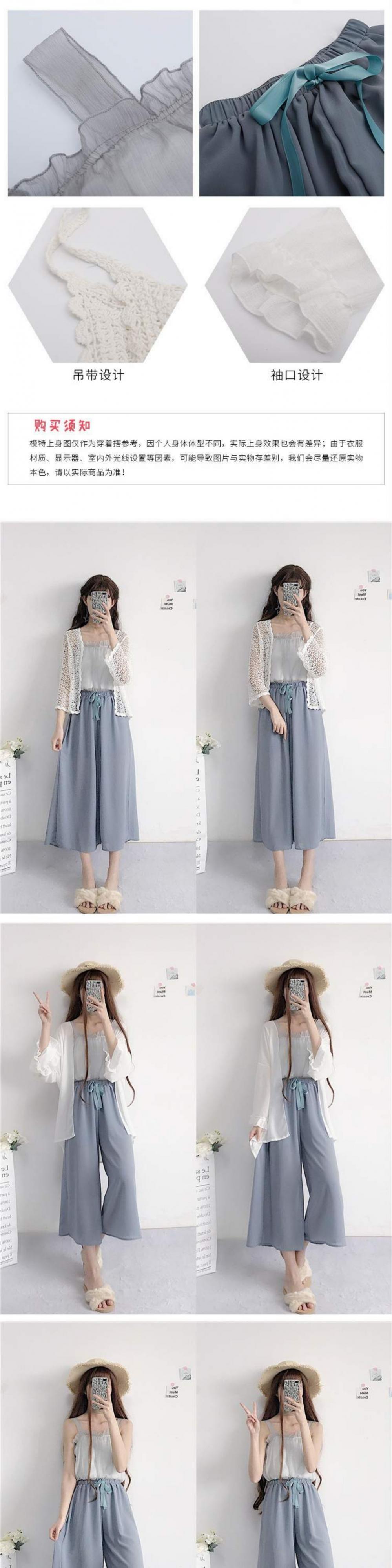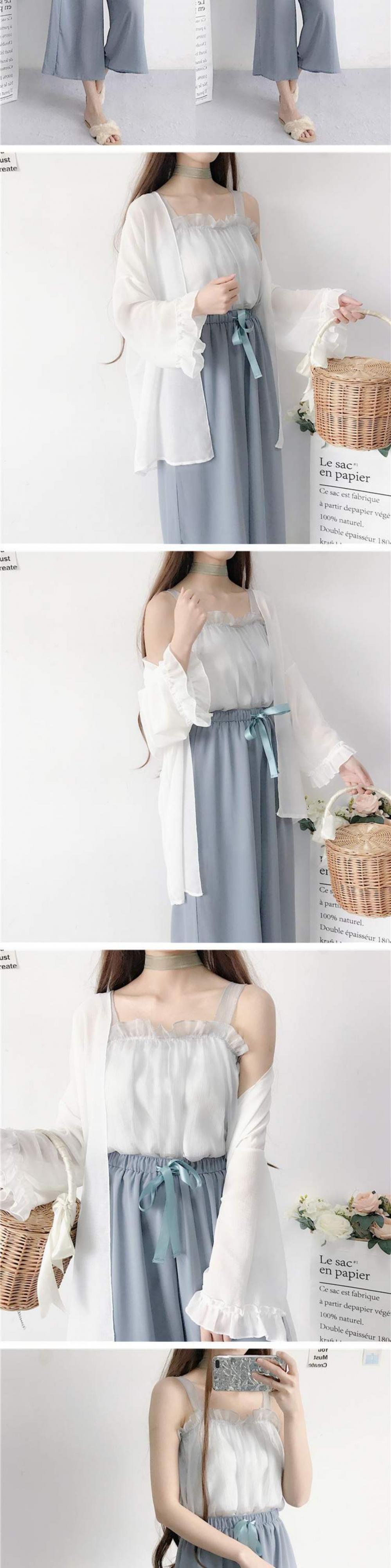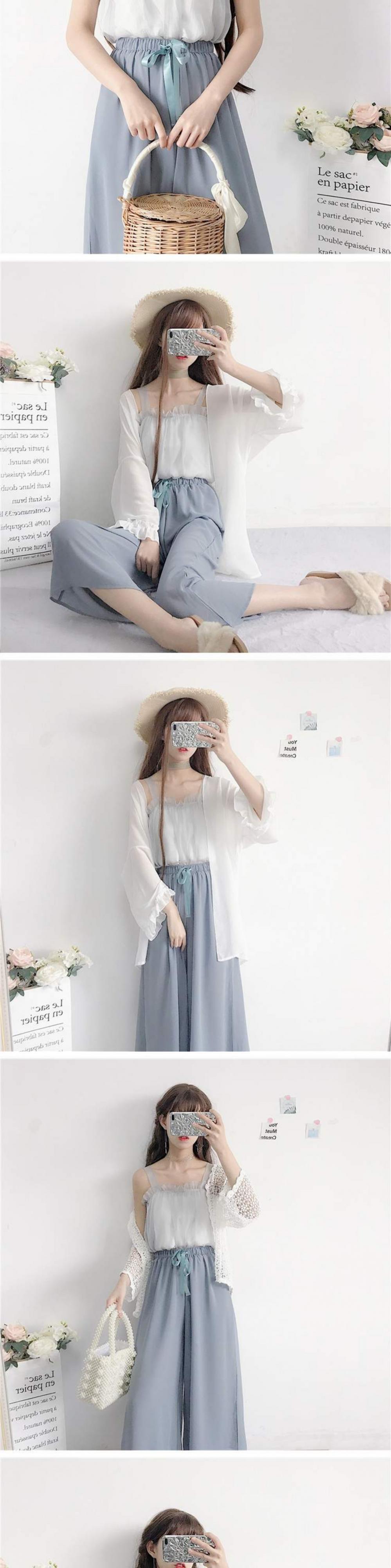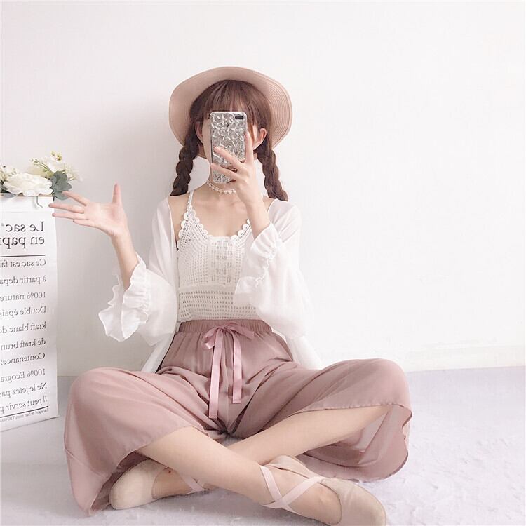 色:グレーシフォンベスト[シングルピース],アプリコットピンクシフォンベスト[シングルピース],編み物用ハーネス[シングルピース],シフォン日焼け止め服[シングルピース],ニットショール[シングルピース],ブルーパンツ[シングルピース],ピンクパンツ[シングルピース]