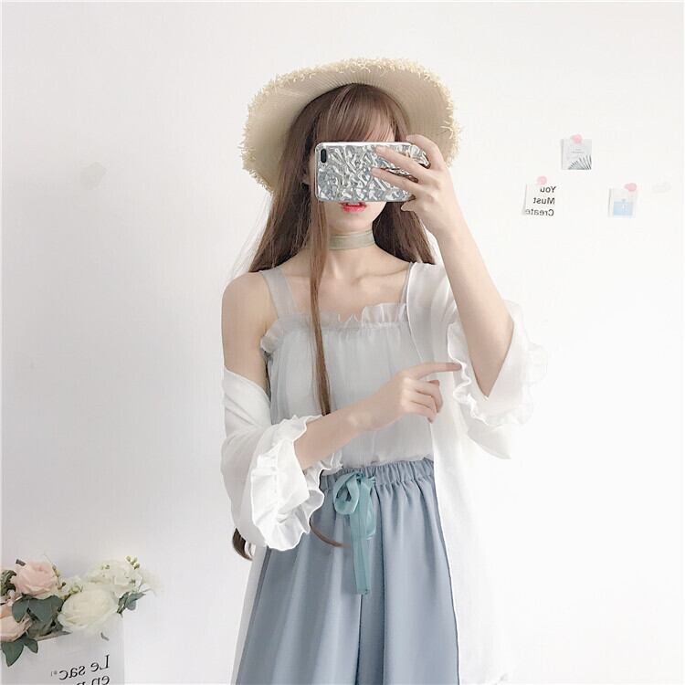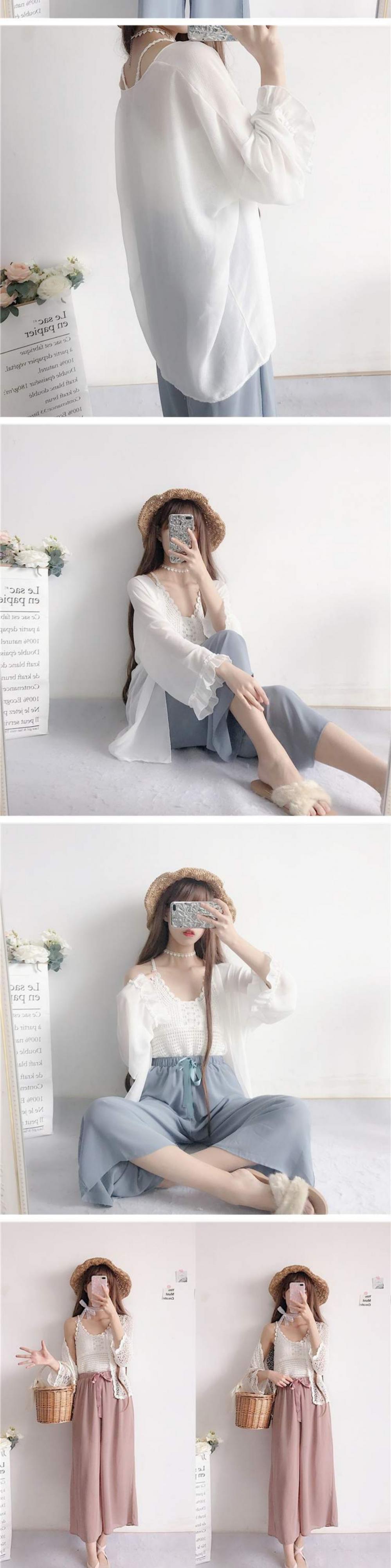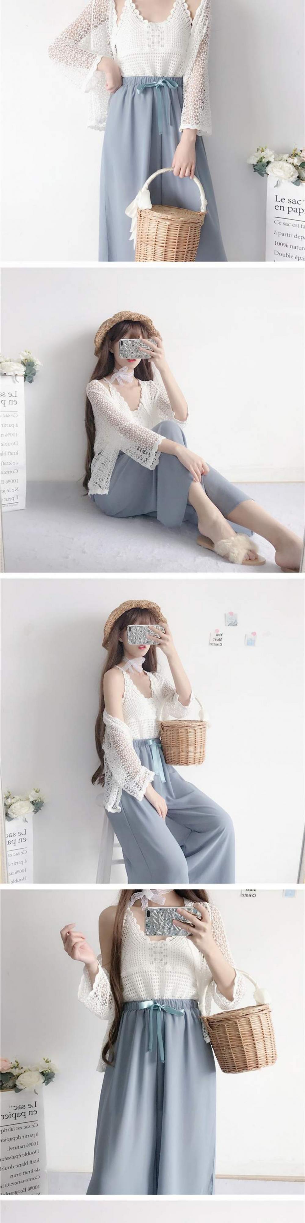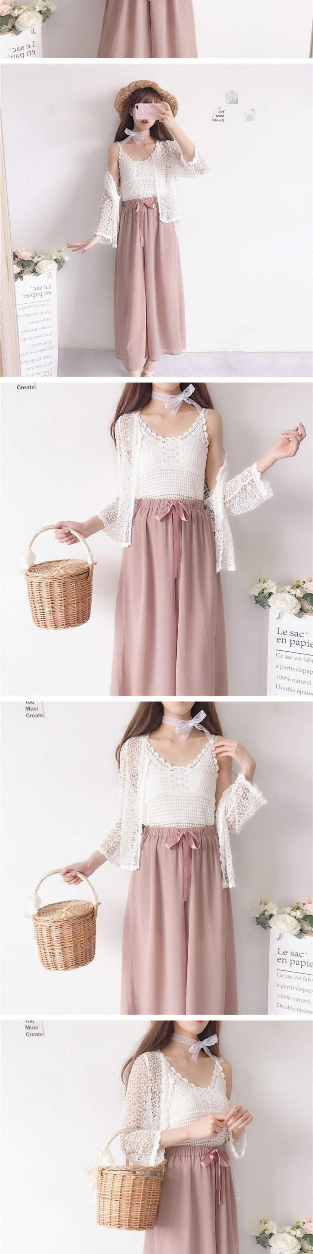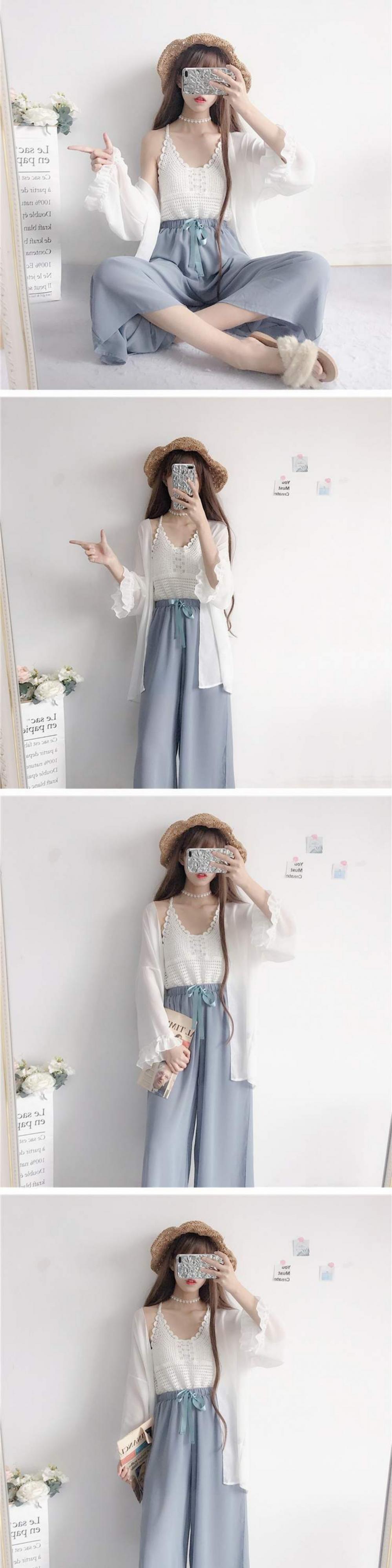 色:グレーシフォンベスト[シングルピース],アプリコットピンクシフォンベスト[シングルピース],編み物用ハーネス[シングルピース],シフォン日焼け止め服[シングルピース],ニットショール[シングルピース],ブルーパンツ[シングルピース],ピンクパンツ[シングルピース]