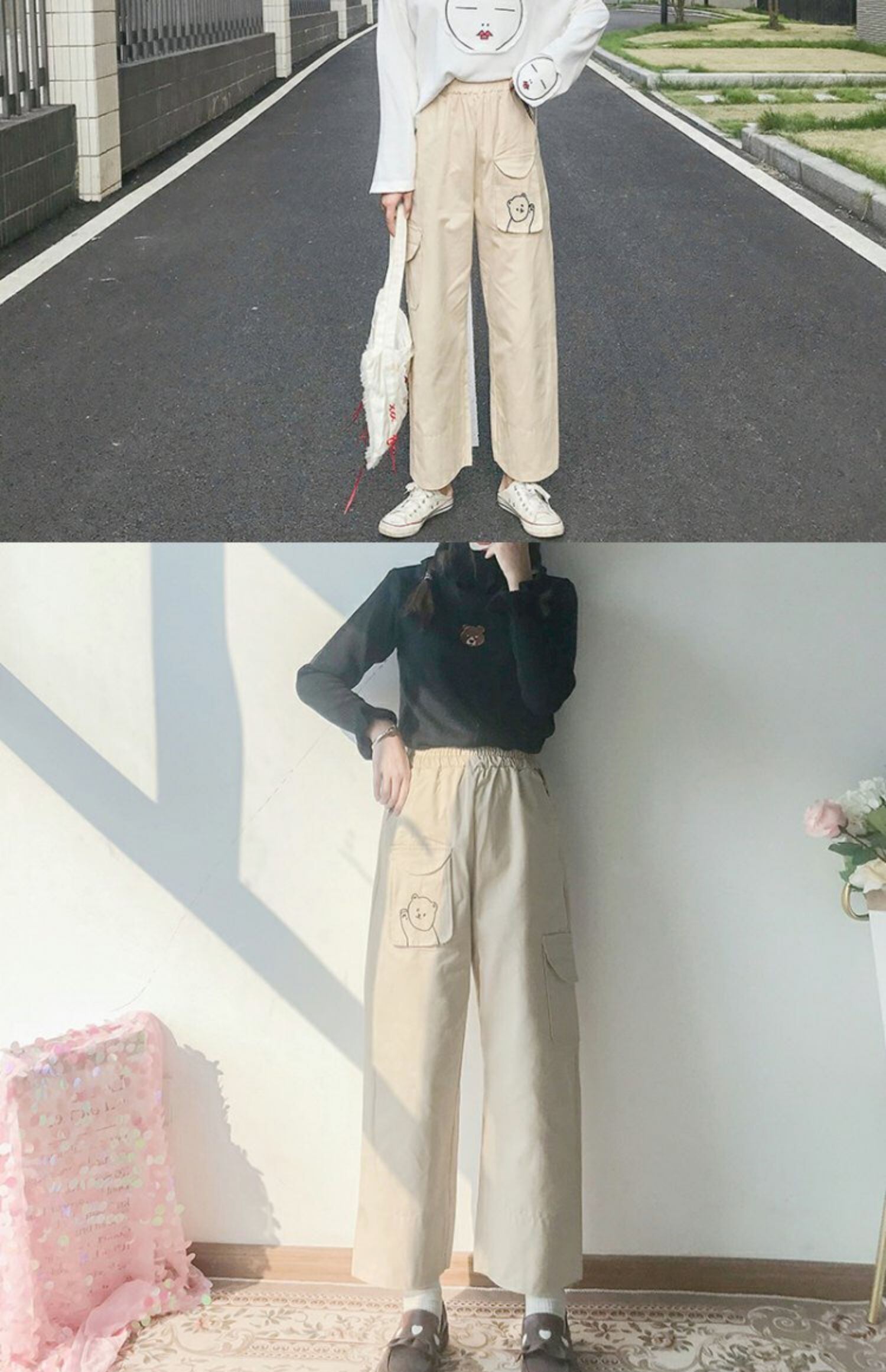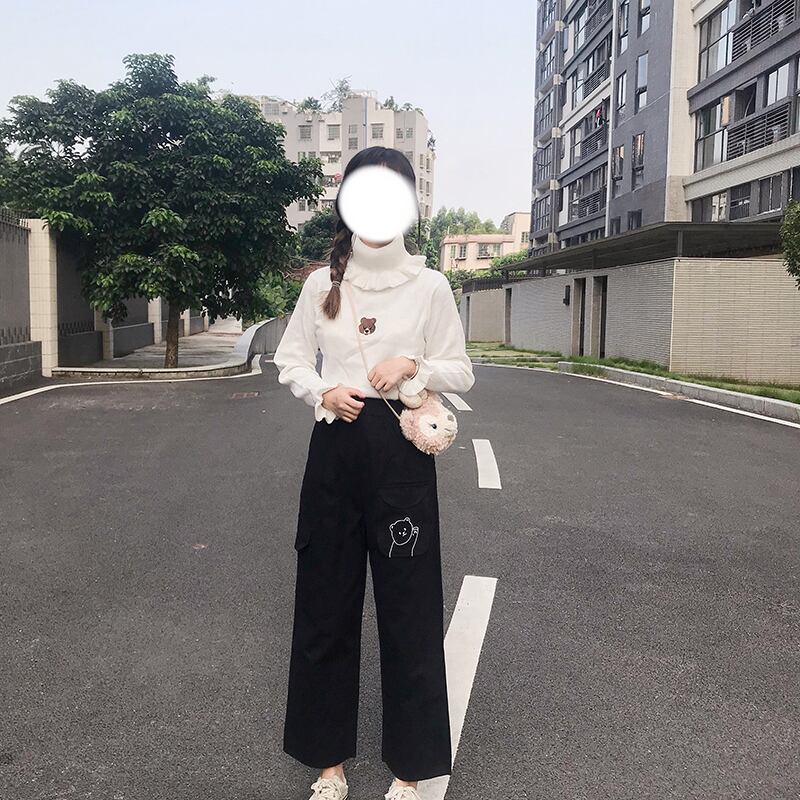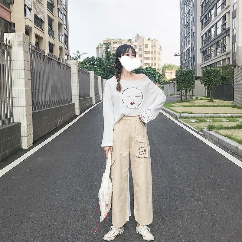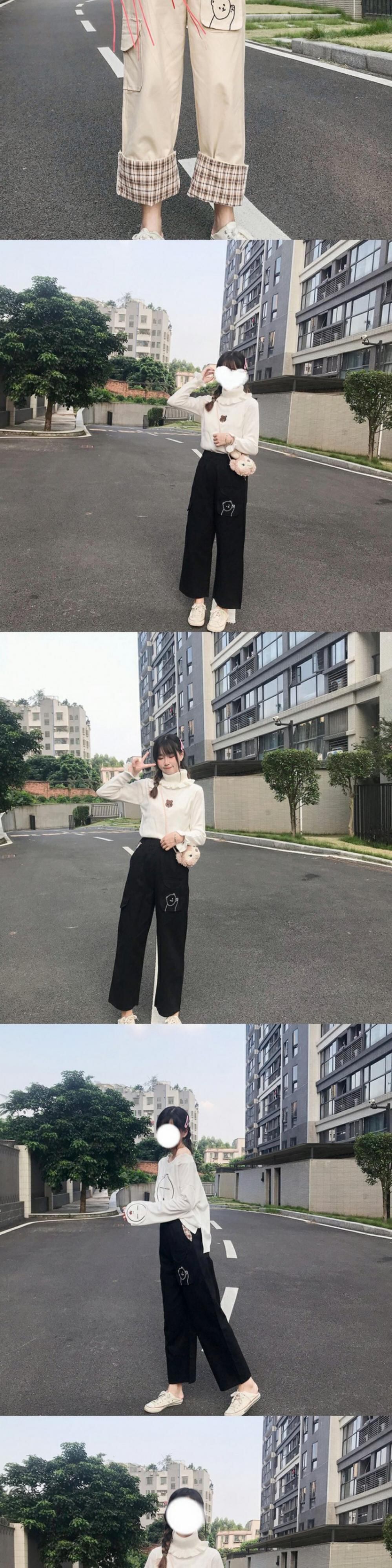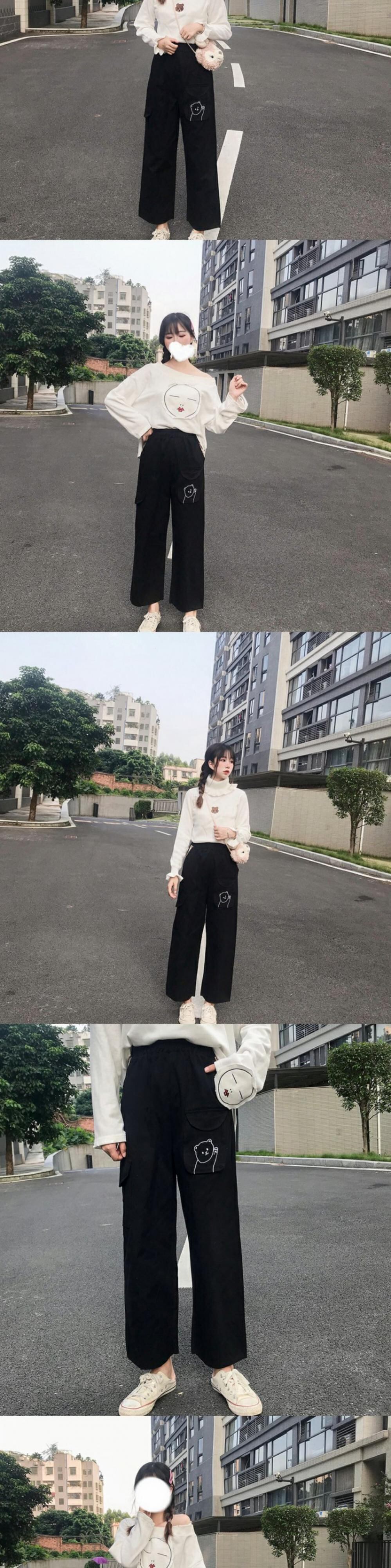 ルーズキュートパンツレディース2020新作オーバーオール漫画初秋スモールカジュアルストレートパンツワイドレッグパンツトレンド 萌量不足20501236707