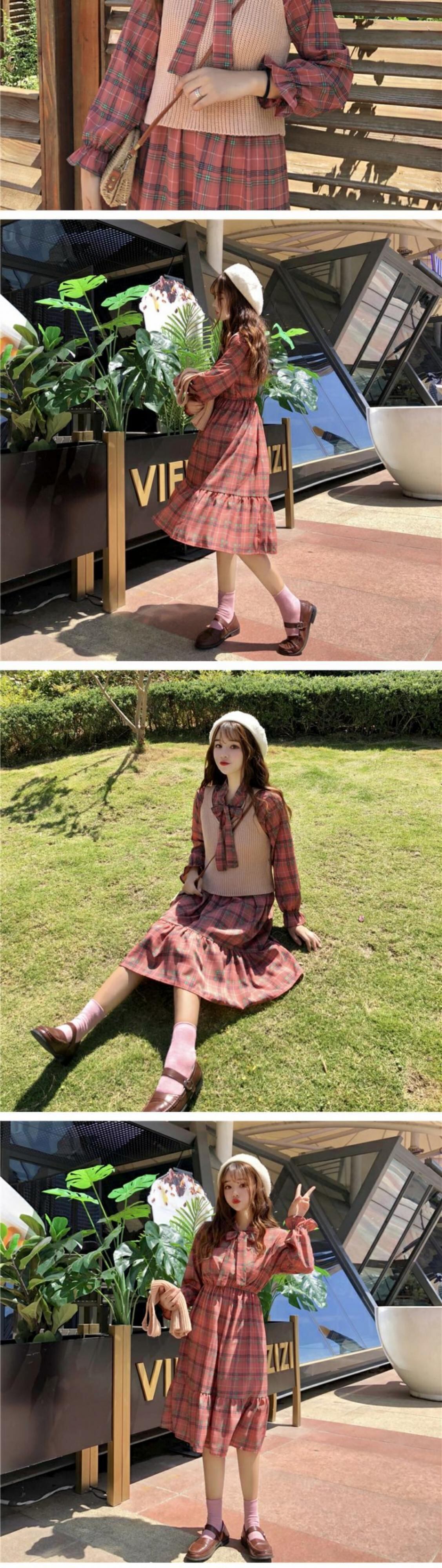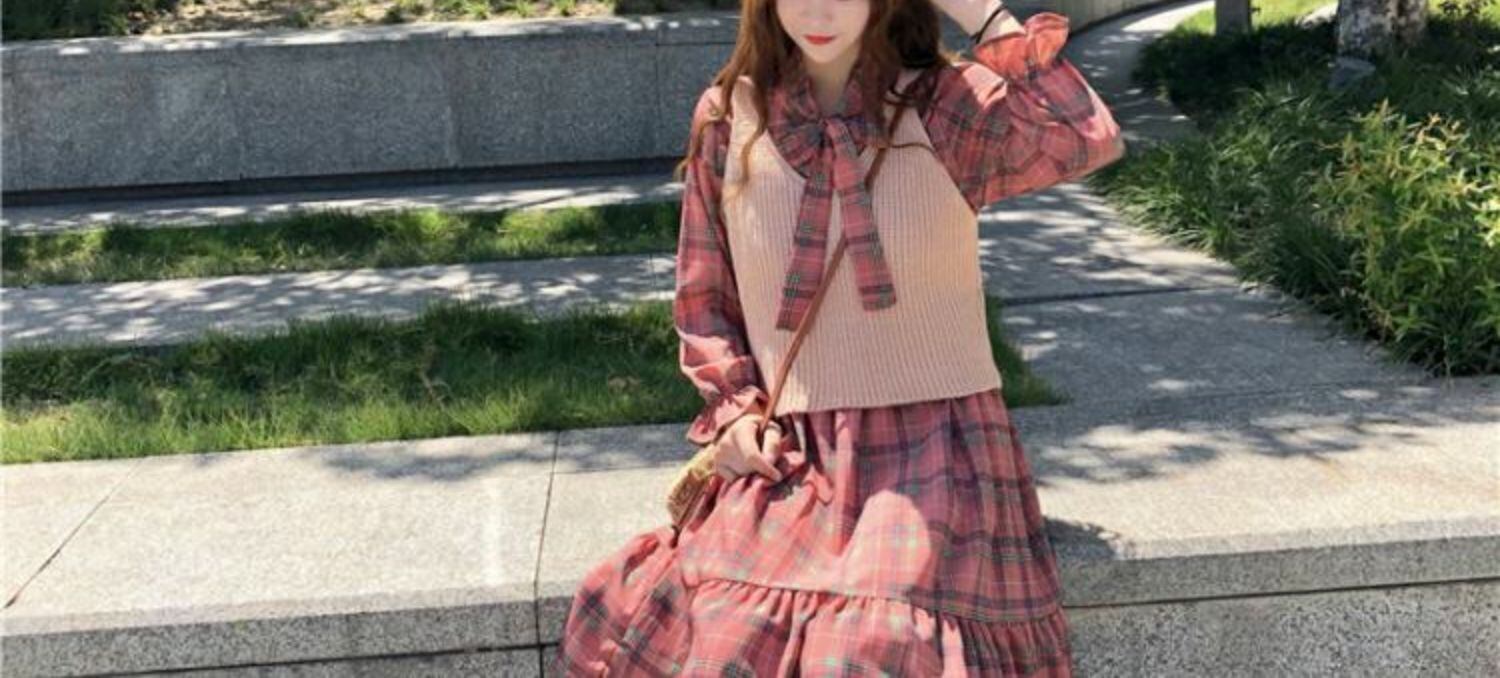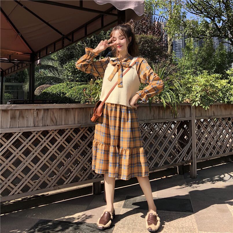 スタイルロングチェック柄ドレス2020新夏スモールフレッシュ&ヤングエイジスリミングスカート女性春秋ベスト 萌量不足11729409416