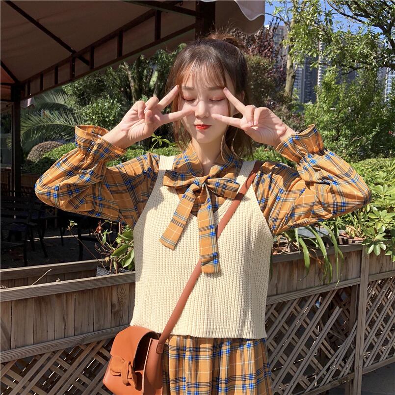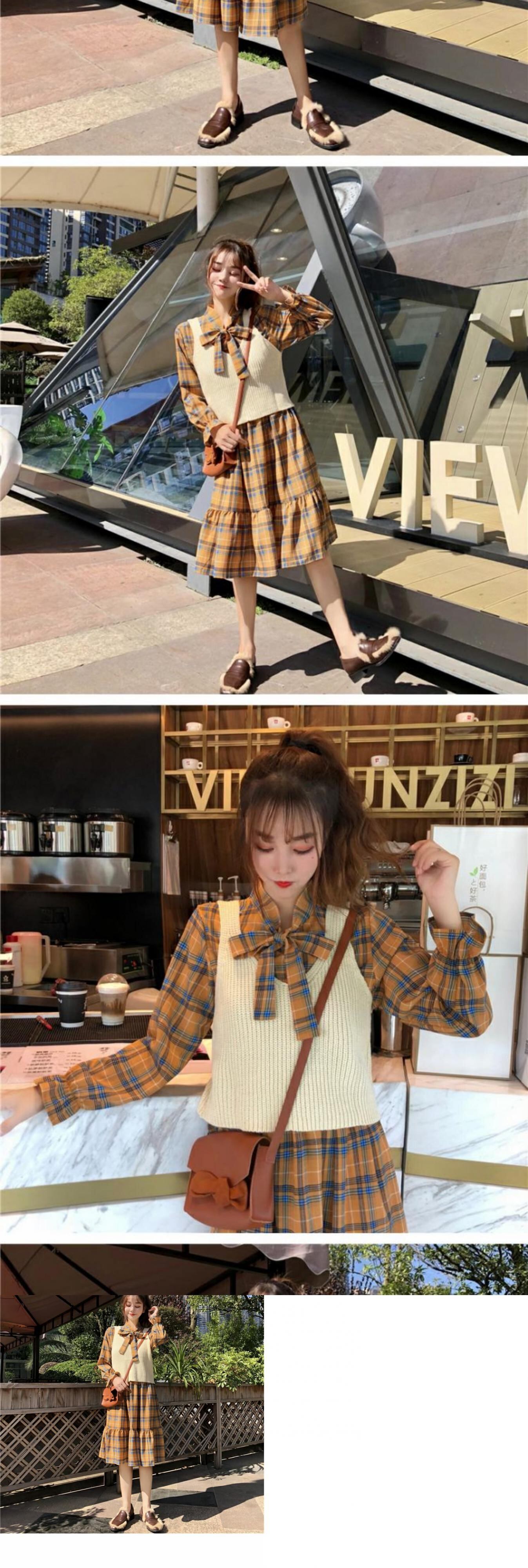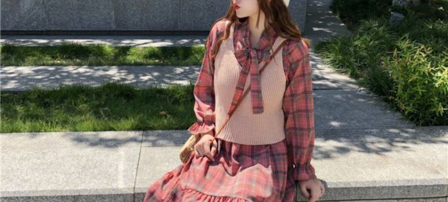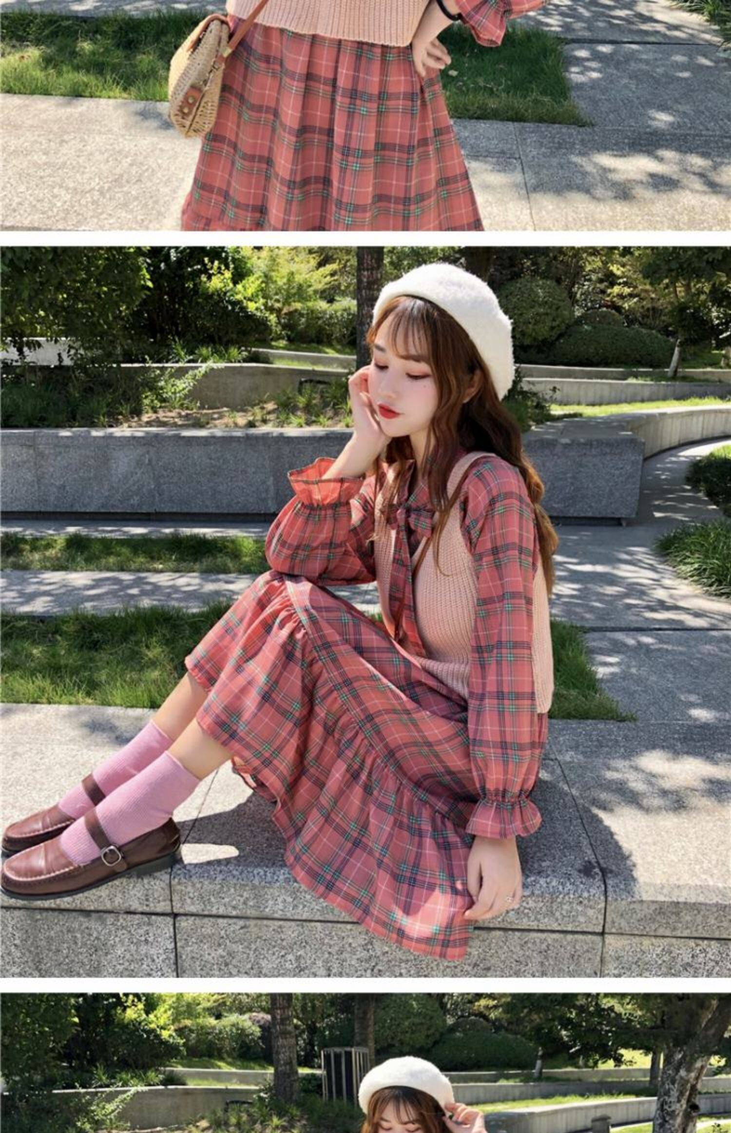 スタイルロングチェック柄ドレス2020新夏スモールフレッシュ&ヤングエイジスリミングスカート女性春秋ベスト 萌量不足11729409416