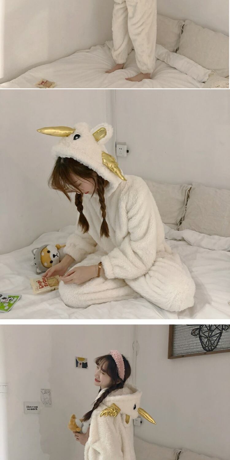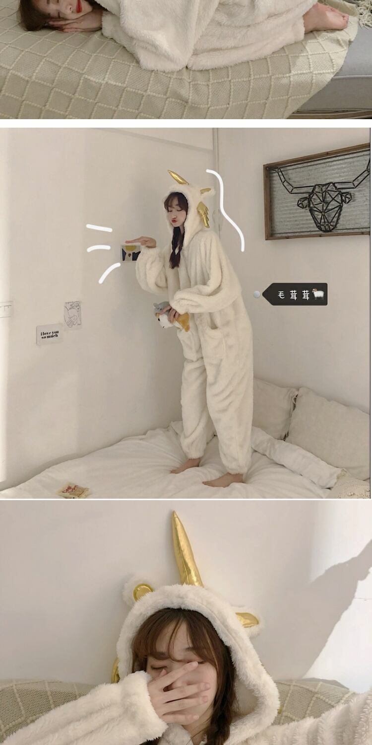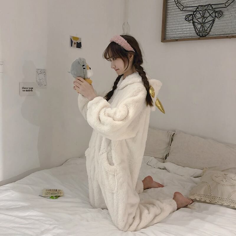 2020年の新しいかわいい漫画アニメパジャマ女性の秋と冬の学生は冬に暖かく保つために甘いワンピースの家庭服を厚くします 萌量不足83504528217