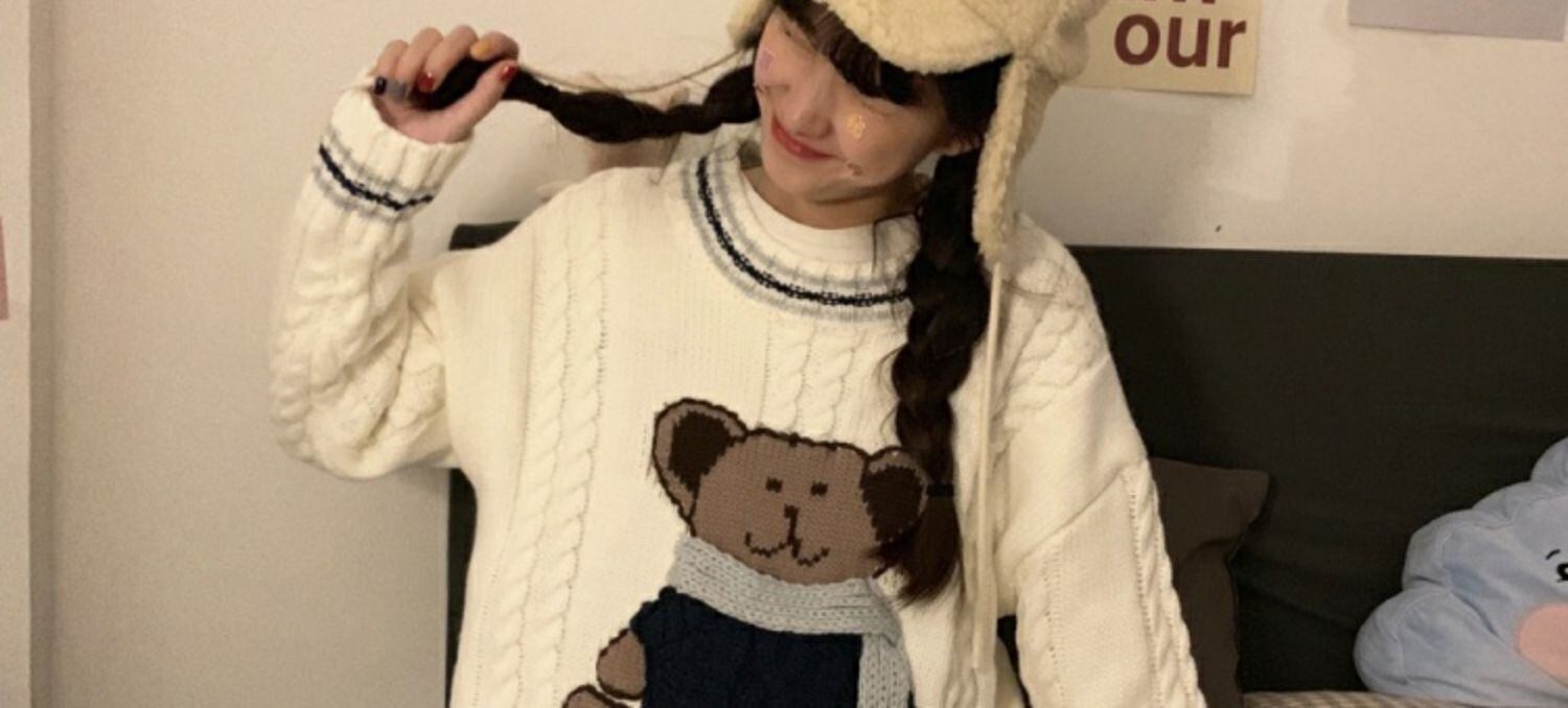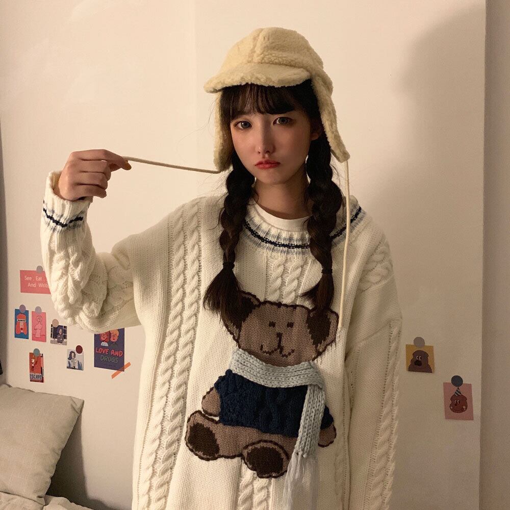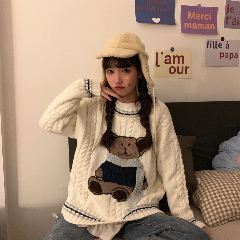 セーターの女性の秋と冬は太い線の甘くて怠惰なウインドベアプルオーバーセーター学生ルーズトップインズタイドを着用 萌量不足4026532010