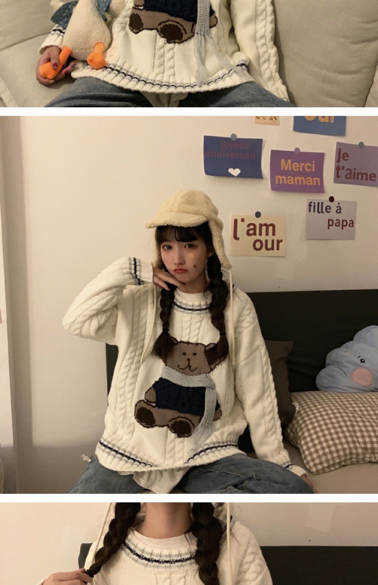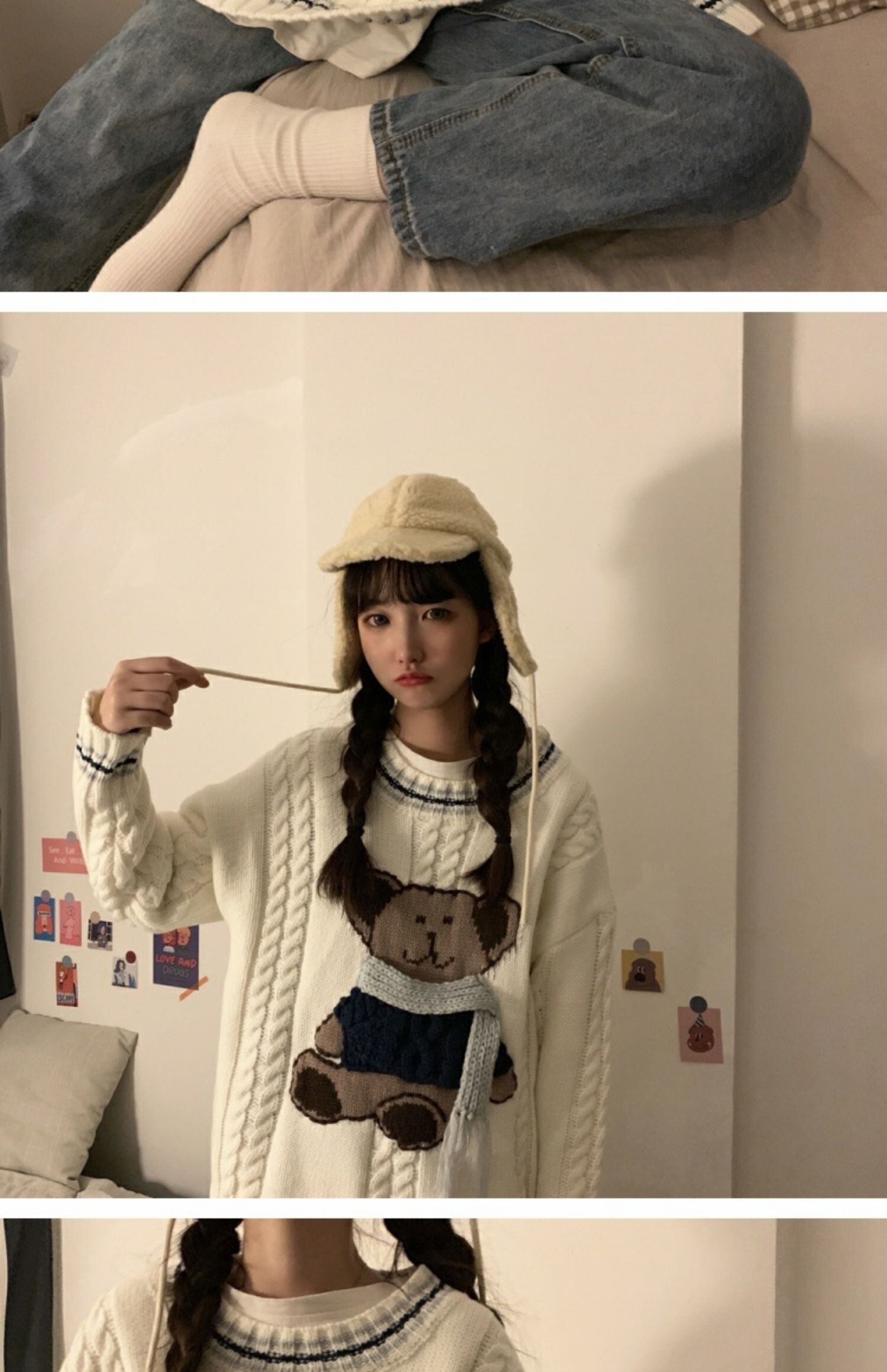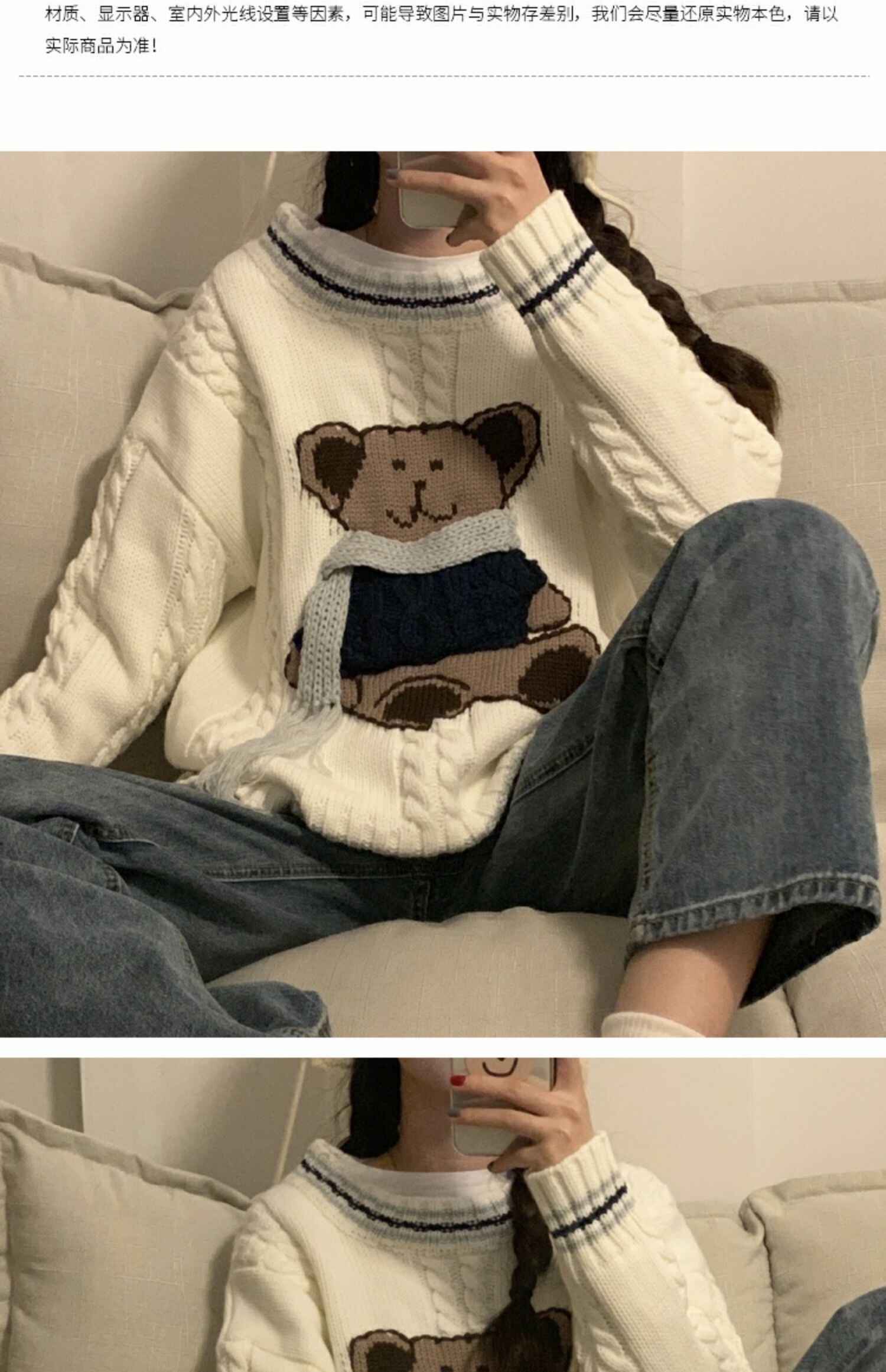 セーターの女性の秋と冬は太い線の甘くて怠惰なウインドベアプルオーバーセーター学生ルーズトップインズタイドを着用 萌量不足4026532010