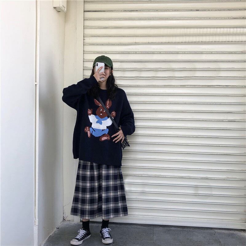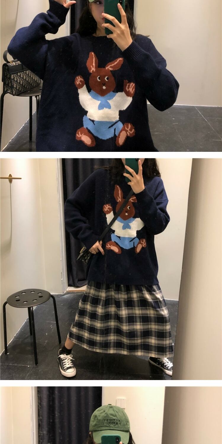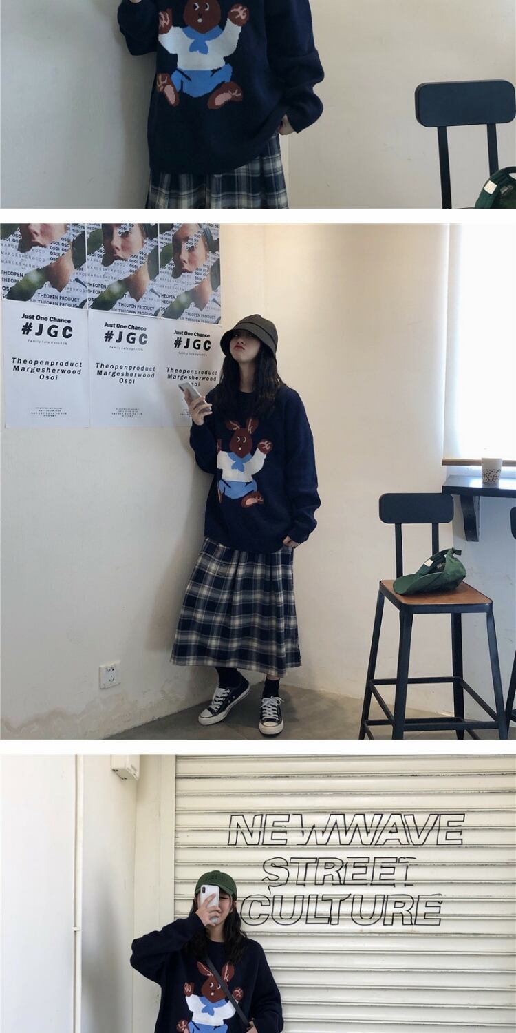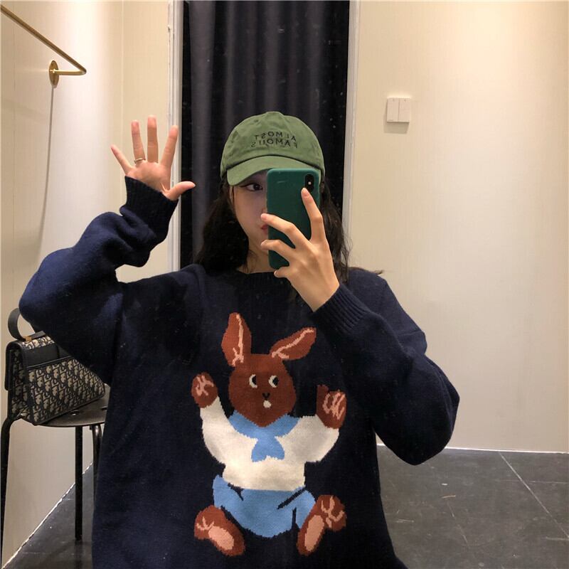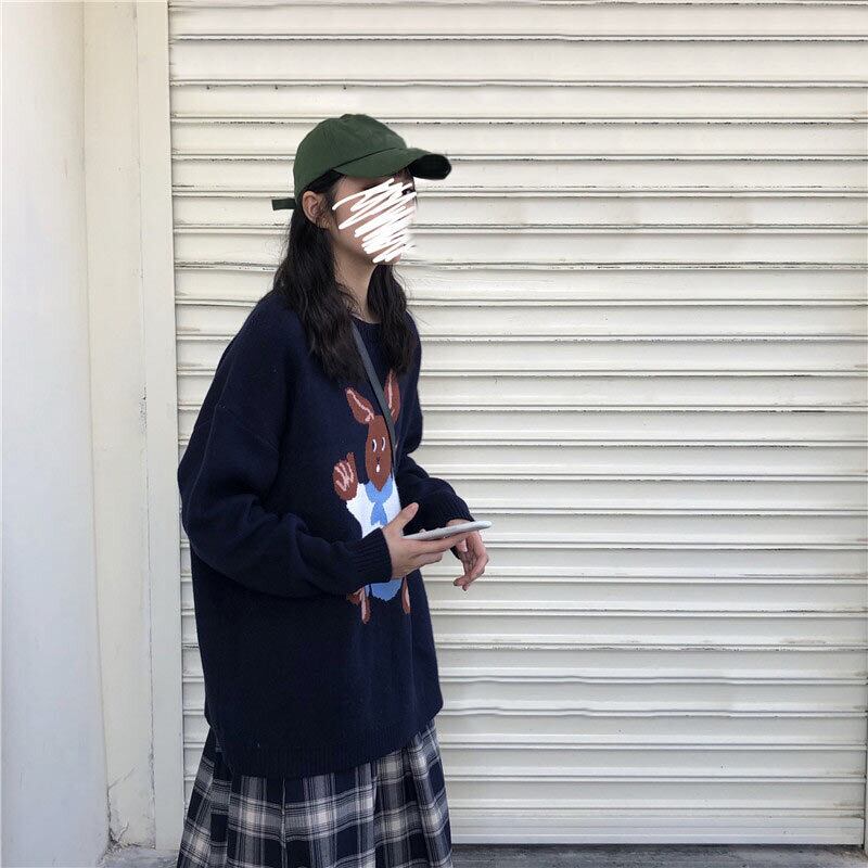 ネットセレブの年齢を減らす子供のようなジャカードセーターの女性は、プルオーバーセータートップで暖かく保つために秋と冬に外でルーズでキュートに着ます 萌量不足42260741703