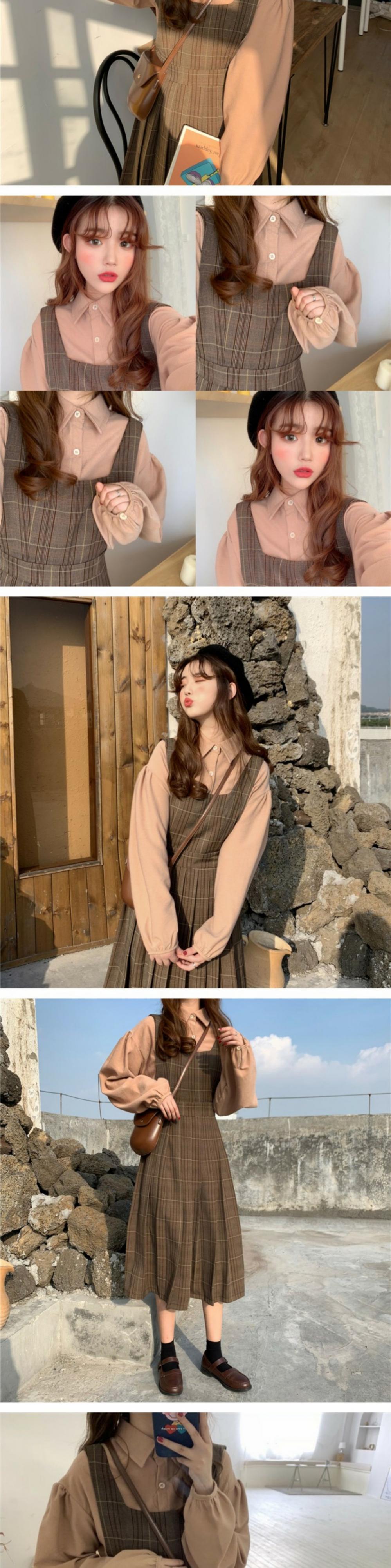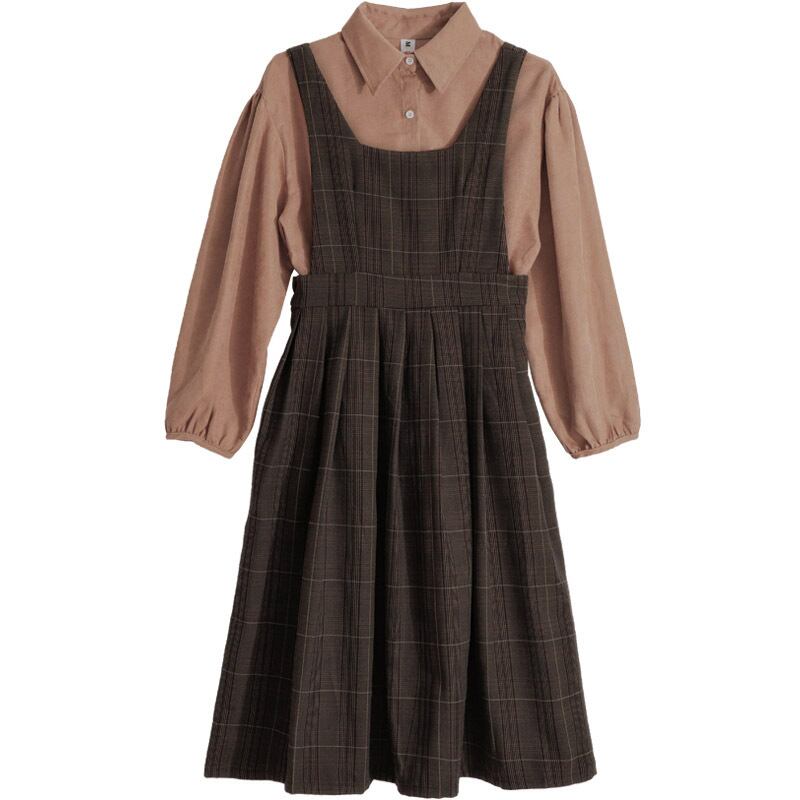 ドレスレディース秋の服2020新しいチェック柄ストラップスカートスカート学生春と秋のツーピースブリティッシュスタイルロングスカート夏 萌量不足14186153651